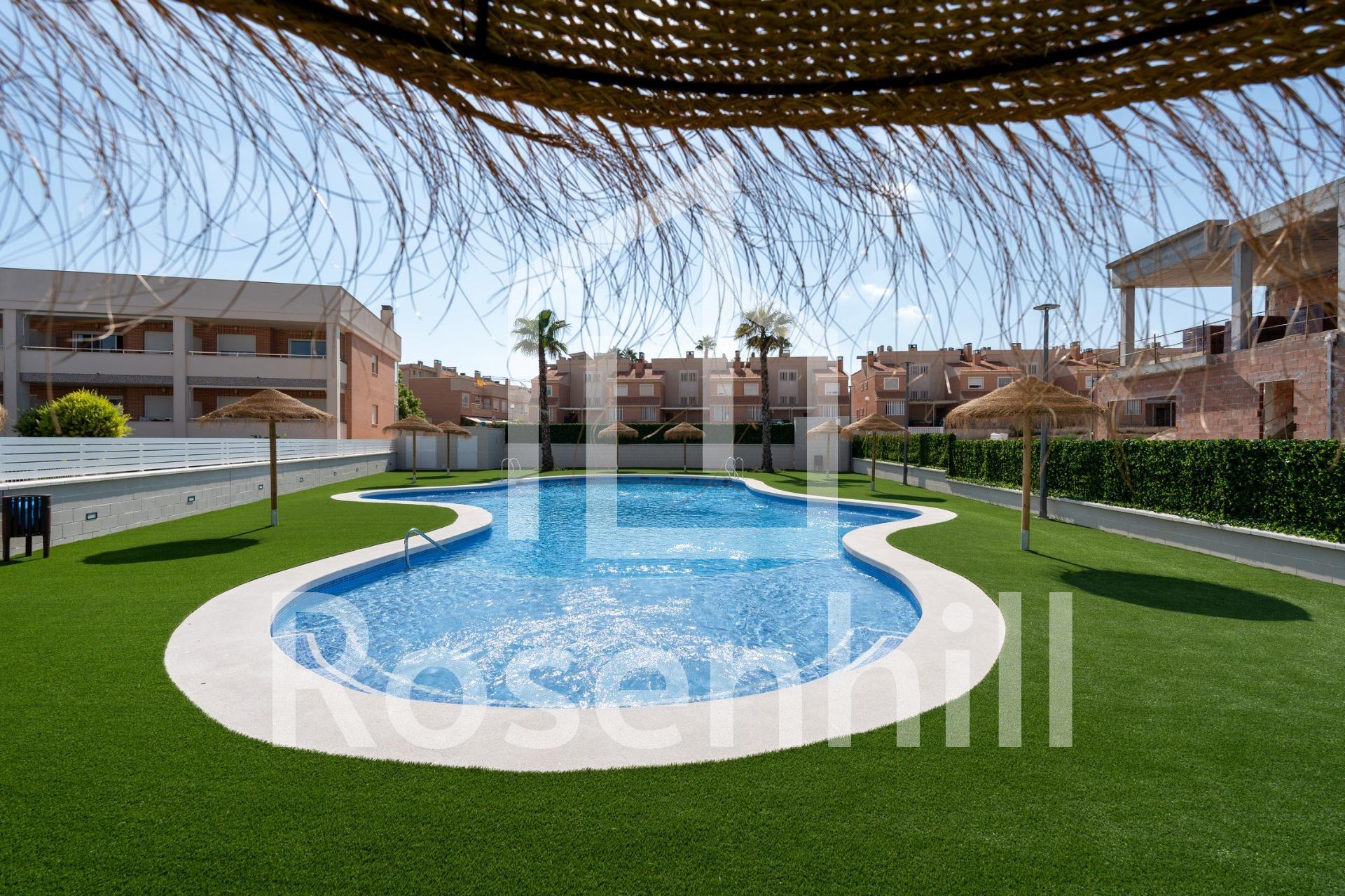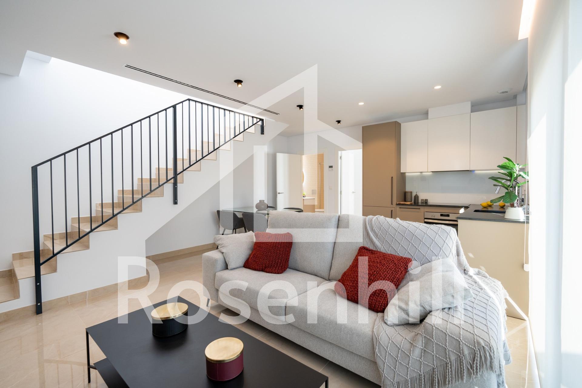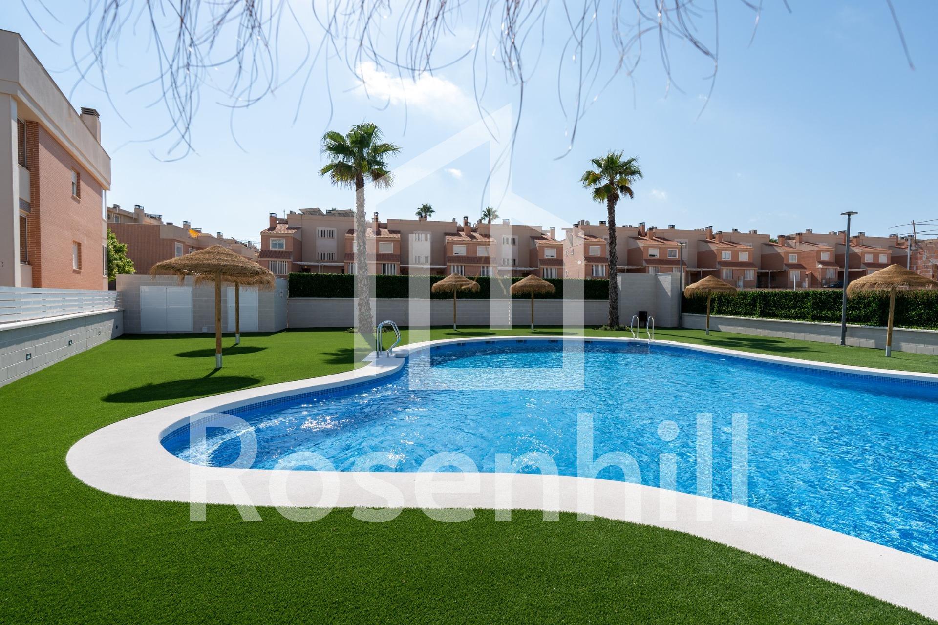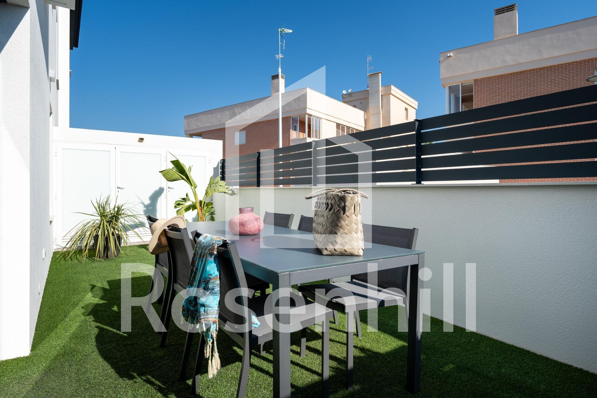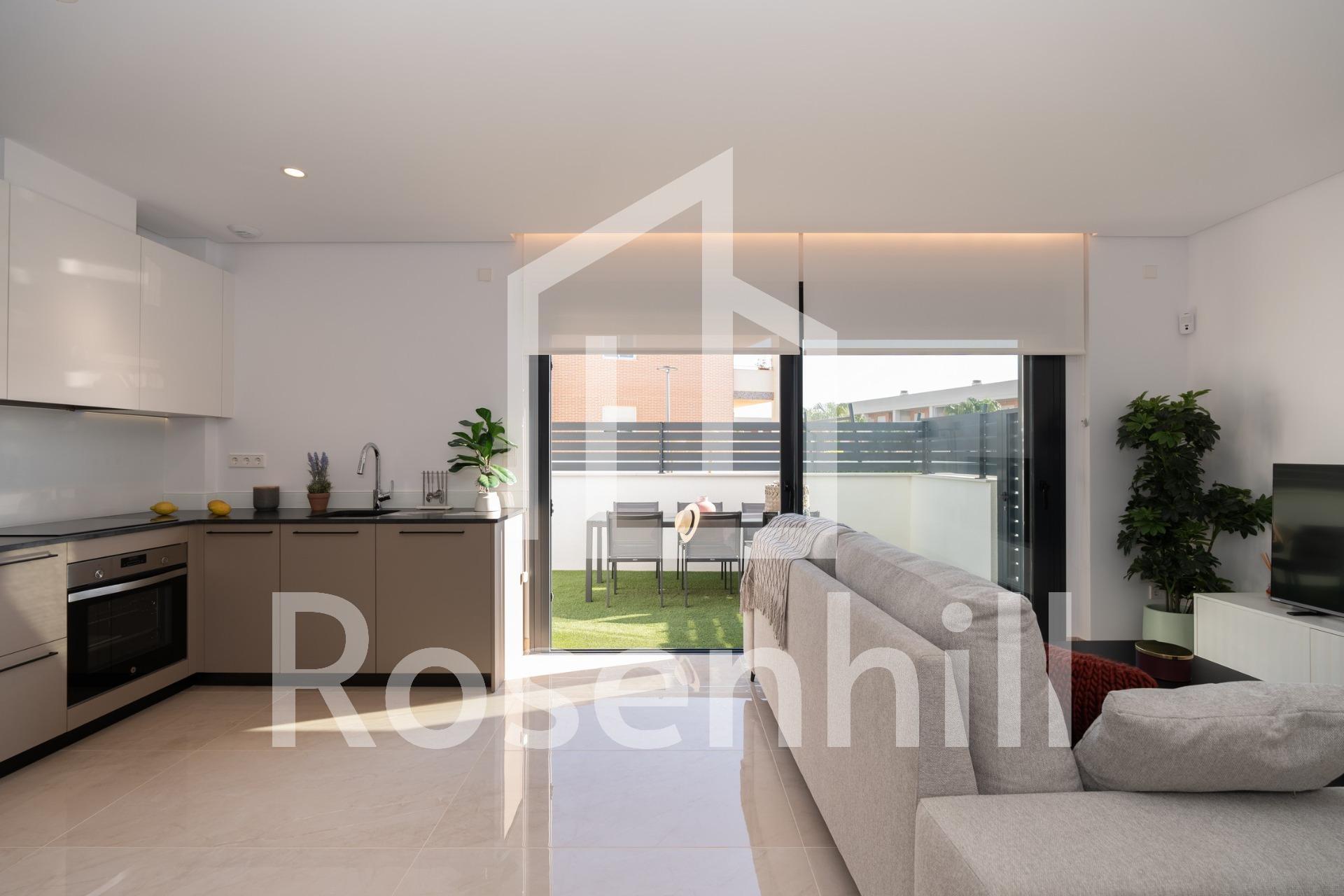 3 BEDROOM BUNGALOWS IN EXCLUSIVE RESIDENTIAL IN GRAN ALACANT! Discover this exclusive residential of bungalows from 86.28m² with a garden from 64m², and with 2 or 3 bedrooms. It is a private urbanization, which has a communal pool, garden areas and children’s play area for the enjoyment of free time. The residential is located in the Cape of Santa Pola, between the mountains and the Carabassà beach. With the provision of all services, highlighting a Shopping Center a few meters away, with fashion, a wide area of ​​leisure, services and restaurants, gas station, bus stop, etc … It borders the main road, on the one hand, and the Mediterranean Sea on its east side, with fine sandy beaches and extensive pine forests. The bungalows are on two floors, with high quality finishes, large parking spaces and terraces to enjoy the sun all year round! It is delivered with the installation of two air conditioners, a kitchen with an oven, an induction ceramic hob and an extraction hood. -12 km from Alicante-Elche International Airport -6 km from Santa Pola -23 km from Alicante Enjoy the comfort of the spaces in a privileged area!