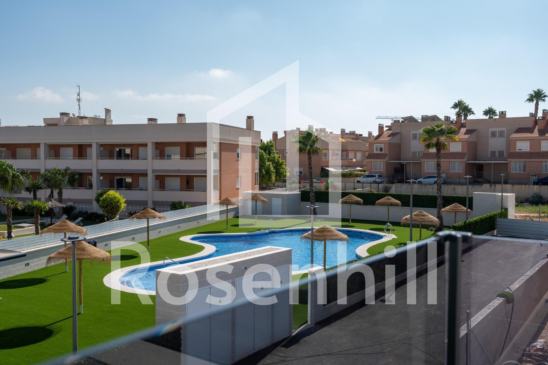 3 BEDROOM BUNGALOWS IN EXCLUSIVE RESIDENTIAL IN GRAN ALACANT! Discover this exclusive residential of bungalows from 86.28m² with a garden from 64m², and with 2 or 3 bedrooms. It is a private urbanization, which has a communal pool, garden areas and children’s play area for the enjoyment of free time. The residential is located in the Cape of Santa Pola, between the mountains and the Carabassà beach. With the provision of all services, highlighting a Shopping Center a few meters away, with fashion, a wide area of ​​leisure, services and restaurants, gas station, bus stop, etc … It borders the main road, on the one hand, and the Mediterranean Sea on its east side, with fine sandy beaches and extensive pine forests. The bungalows are on two floors, with high quality finishes, large parking spaces and terraces to enjoy the sun all year round! It is delivered with the installation of two air conditioners, a kitchen with an oven, an induction ceramic hob and an extraction hood. -12 km from Alicante-Elche International Airport -6 km from Santa Pola -23 km from Alicante Enjoy the comfort of the spaces in a privileged area!