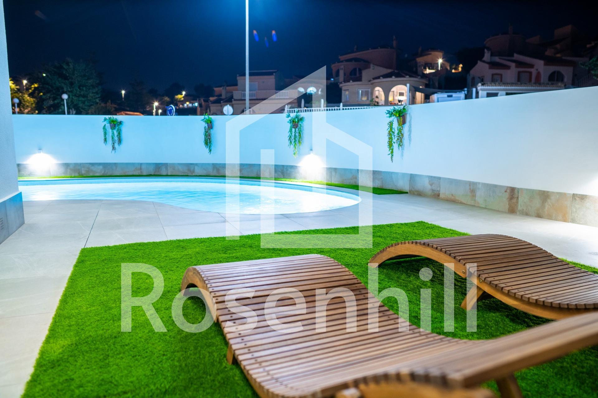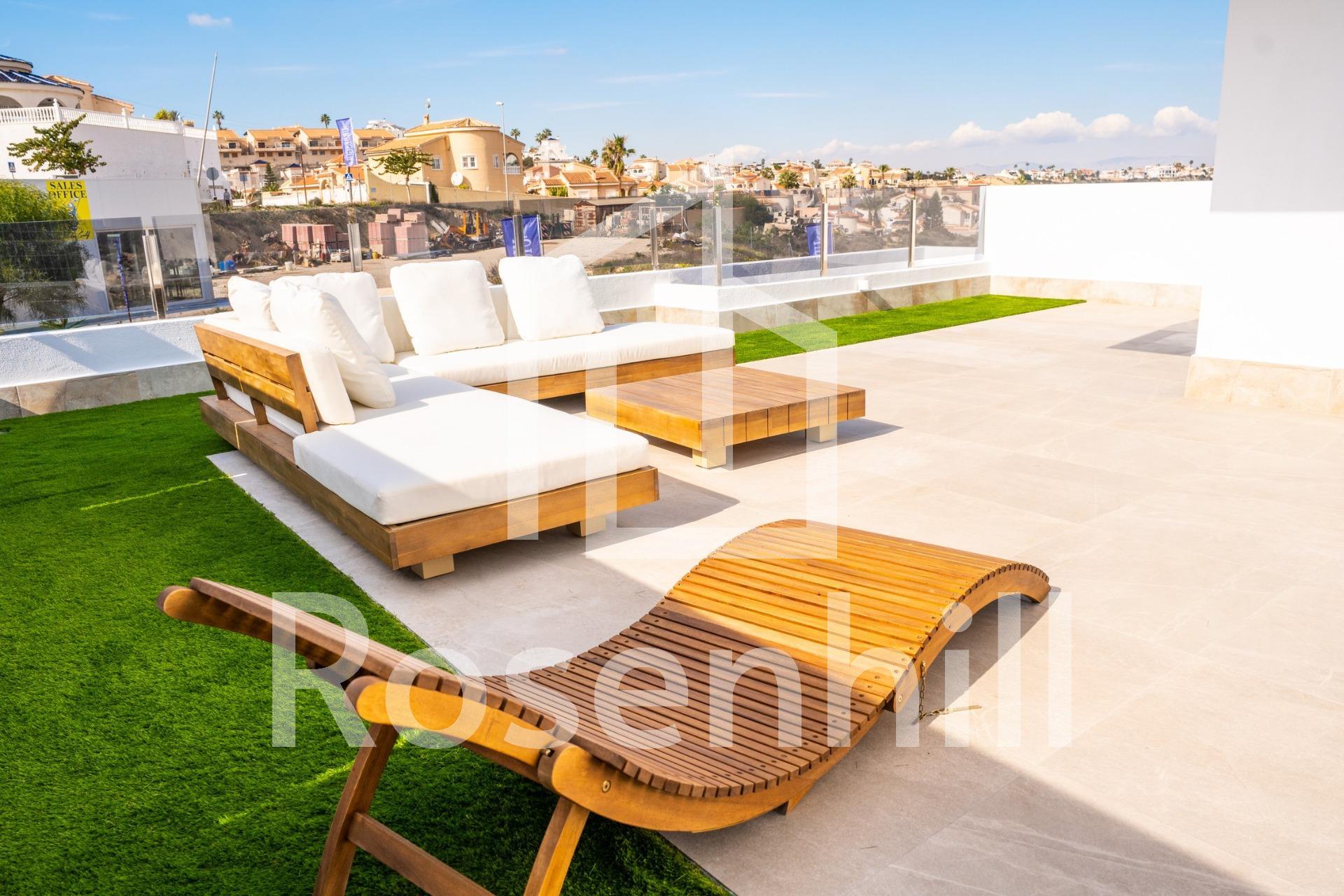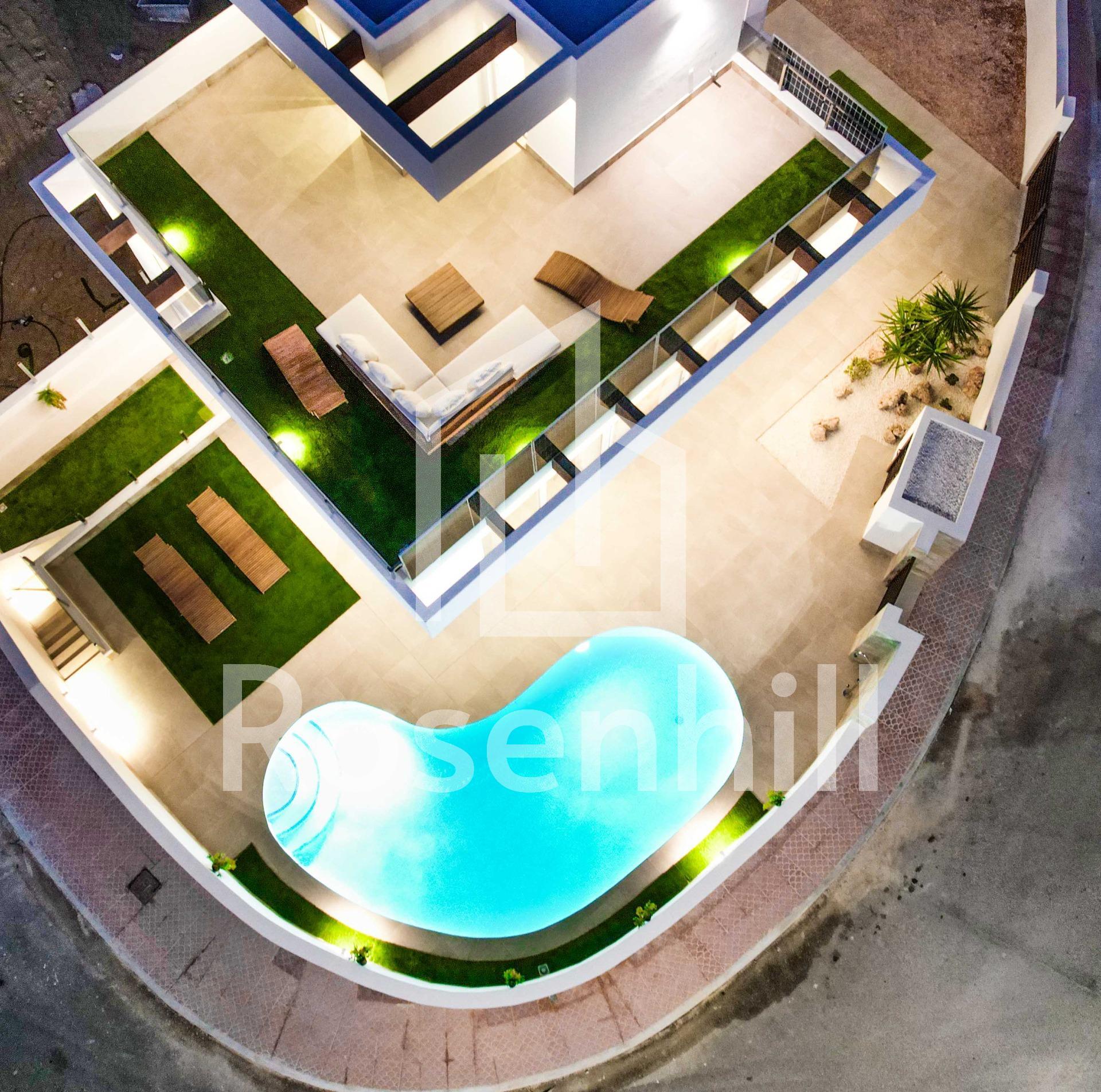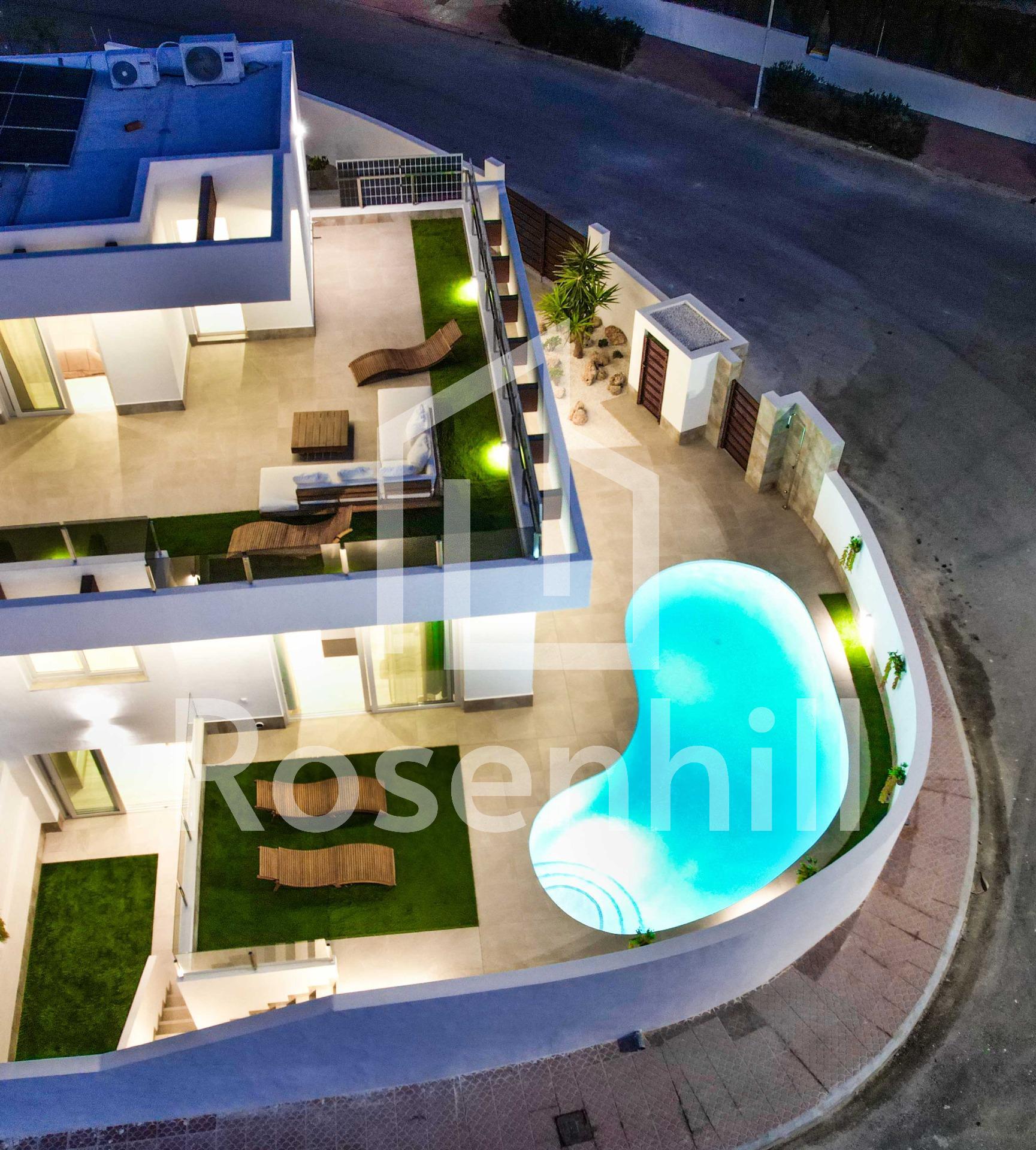 BEAUTIFUL BIG VILLA WITH VIEWS TO THE GOLF COURSE “LA MARQUESA”! This beautiful villa, located 50 meters from the La Marquesa golf course, apart from having clear and beautiful views and offering the tranquility of being in a quiet environment, is a few meters from the commercial center with shops, supermarket, bars and international restaurants . Just 5 minutes from the town of Rojales with all services and 15 minutes from the spectacular blue flag beaches of Guardamar del Segura. Alicante-Elche airport is 35 minutes away. The villa has 335 m2 of plot area, 433 m2 of built area, distributed in 3 floors, one of them being a semi-basement diaphanous of 126 m2. The villa has 3 bedrooms and 2 bathrooms. The 3×6 m pool and the large terraces in the garden and pool area will allow you to enjoy the sun and the Costa Blanca climate throughout the year. In addition, the villa has a solarium and a large parking area. Live in a large modern villa, enjoying golf, beach, climate and Mediterranean lifestyle!