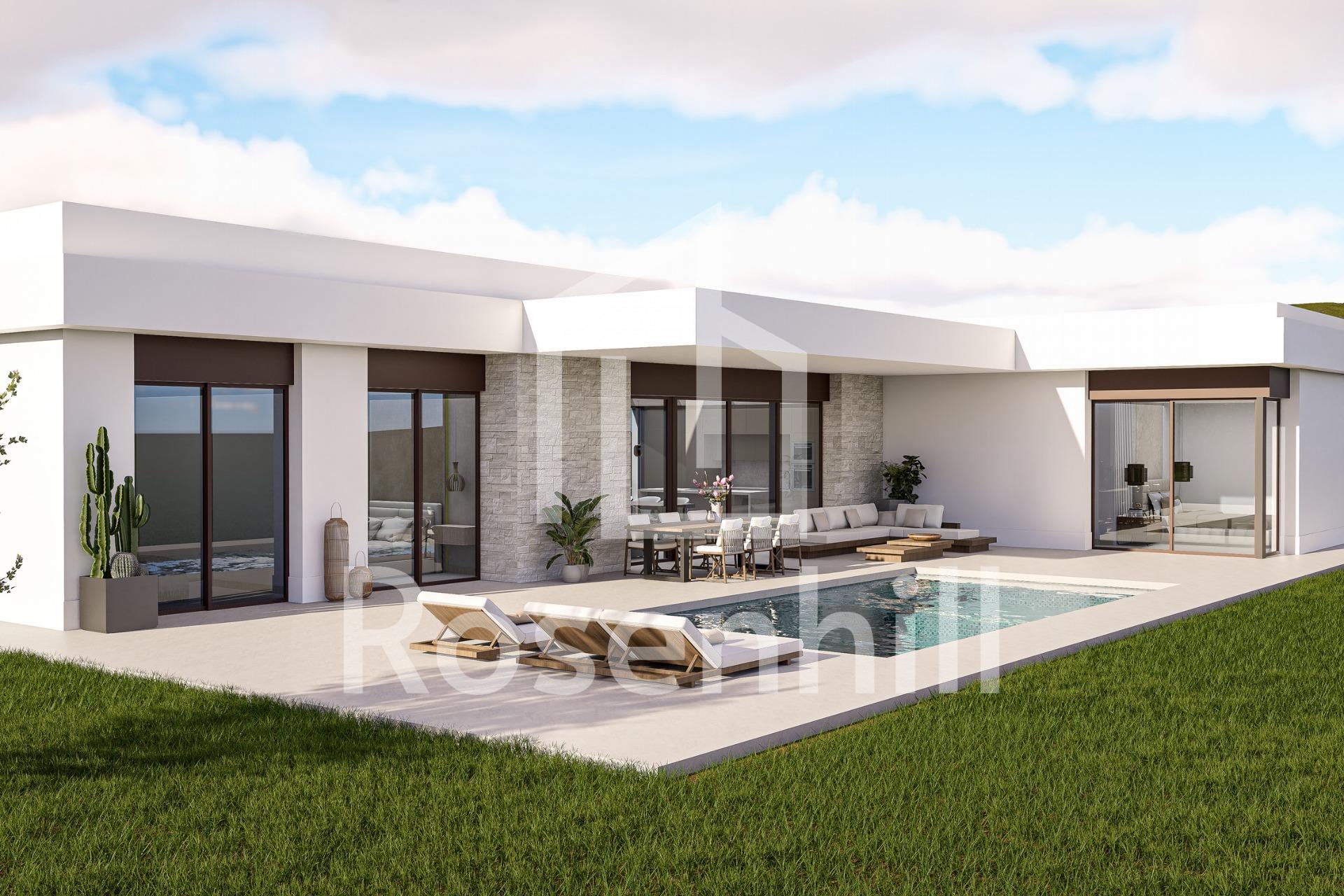 Custom Built New Villas in Pinoso (Alicante): Spacious Homes in Natural Surroundings New Build Villas Tailored to Your Lifestyle in Pinoso Discover a unique opportunity to build your dream home in the peaceful surroundings of Pinoso, located in the inland area of Alicante on the Costa Blanca. These modern independent villas are designed under a self build concept, allowing buyers to choose from different models, layouts and plots to create a fully personalized home. Pinoso is a charming Spanish town known for its vineyards, traditional culture and relaxed lifestyle. The area offers a perfect balance between nature and everyday convenience, with local shops, restaurants and services available nearby. It is an ideal destination for those seeking tranquility while remaining connected to larger towns and the coast. Flexible Villa Designs with Modern Architecture Buyers can choose between a variety of villa models offering 2 or 3 bedrooms and 2 or 3 bathrooms, with options for single or two storey layouts. Built areas range from approximately 100 m2 to 260 m2, adapting to different lifestyle needs. Each villa is set on spacious plots, particularly in rustic locations where plots start from 10.000 m2, providing privacy and open views of the surrounding countryside. High Quality Features and Energy Efficient Living All villas are built with high quality materials and include a private 8 by 4 meter swimming pool, fully equipped kitchen with appliances and complete air conditioning system with airzone technology. The homes also feature aerothermal systems for hot water, fully fitted bathrooms with mirrors and shower screens, and an A energy rating for maximum efficiency. For rustic plots, the properties include 24 photovoltaic solar panels, water purification systems where necessary and sustainable wastewater solutions. Urban plots benefit from connection to mains water and sewage systems. Outdoor areas are carefully finished with paved terraces, pool areas and a perimeter walkway, while plots include 3.000 m2 fencing, motorized vehicle access and landscaped surroundings. Custom Plot Selection and Self Build Process Several plots are available in different locations around Pinoso, each with its own price (for this advert, a plot with a cost of 55.000 eur has been considered, if chosen a different plot price, the final price will be recalculated accordingly). The construction is carried out under a self build system, where payments are made in stages as the project progresses. The estimated delivery time is approximately 10 months from the granting of the building license. Excellent Location with Good Connectivity Pinoso offers a strategic inland location with easy access to key destinations. Alicante Airport is approximately 60 km away, while the beaches of the Costa Blanca can be reached in around 65 km. Golf courses are located within a 40 to 50 km radius, and the cities of Elche and Alicante are both within comfortable driving distance. Ideal Investment or Permanent Residence These custom built villas provide an excellent opportunity to create a bespoke home in a peaceful and natural environment, with modern comforts and strong investment potential. Contact us today for more information and start designing your new villa in Pinoso.