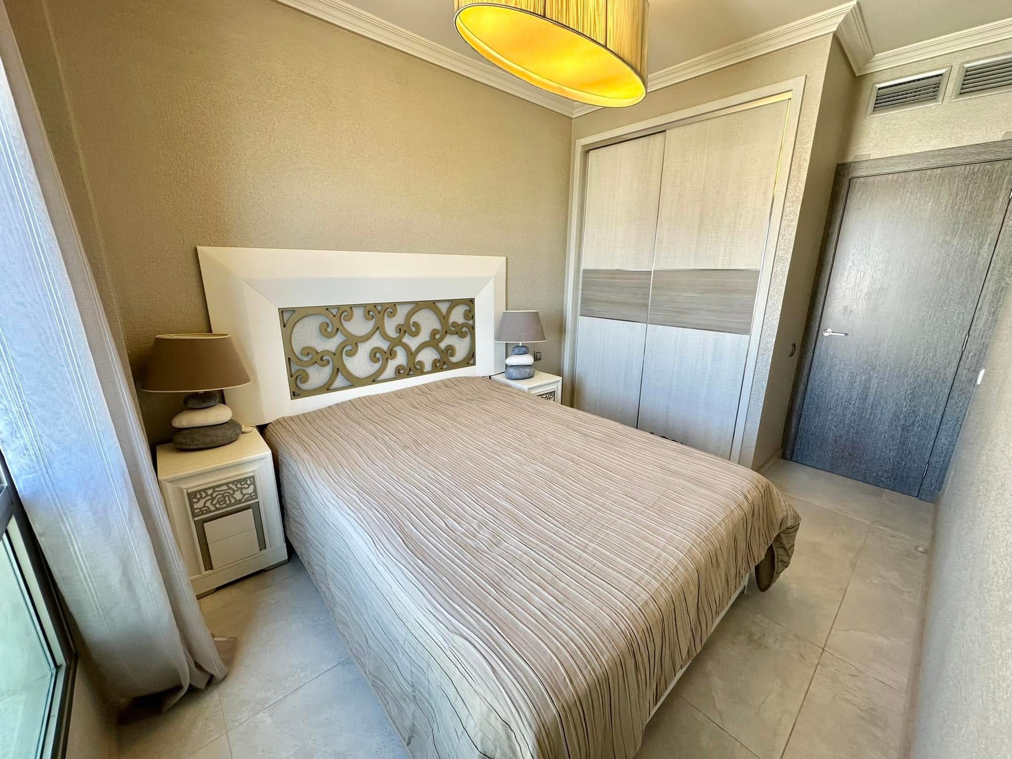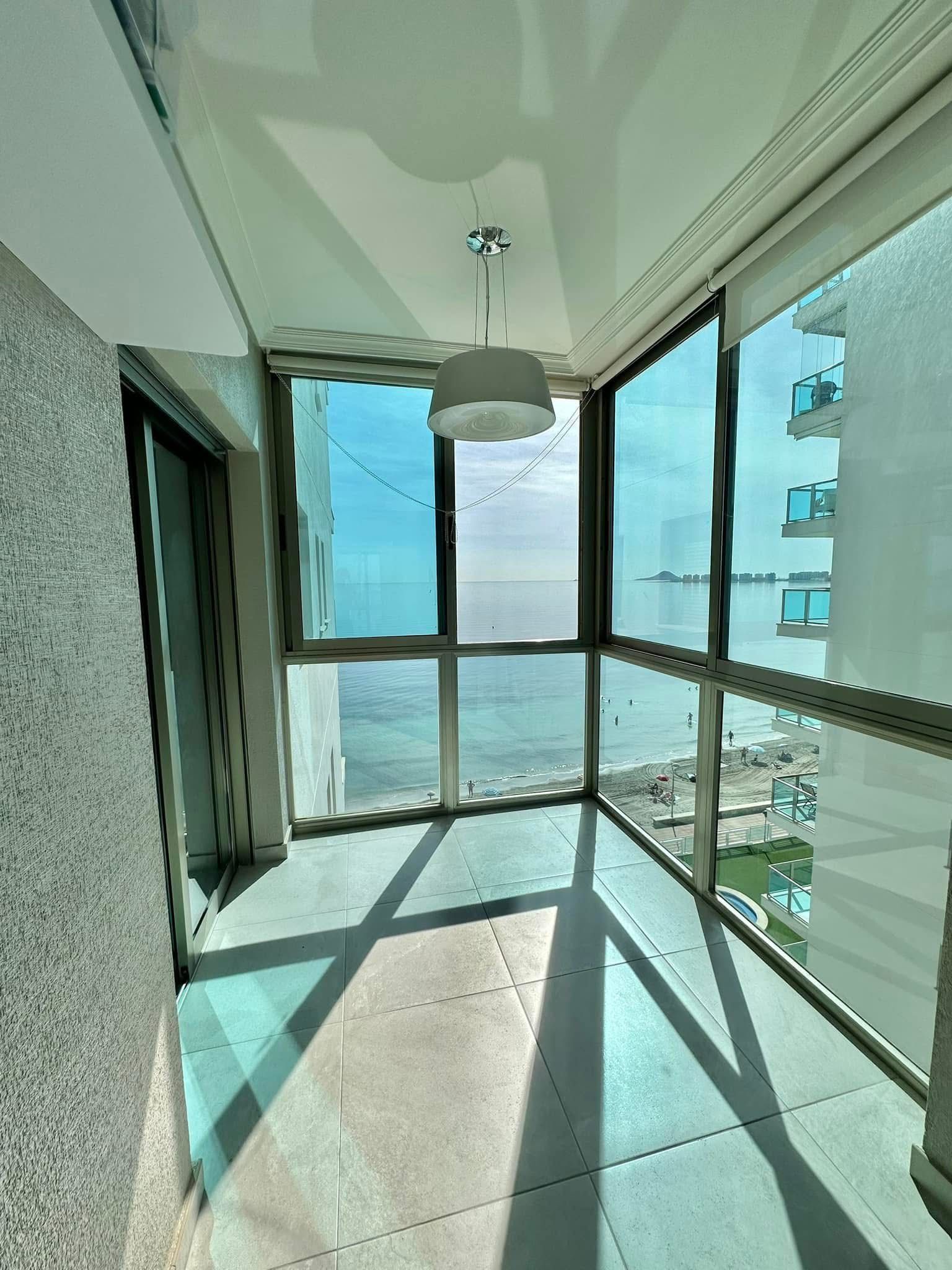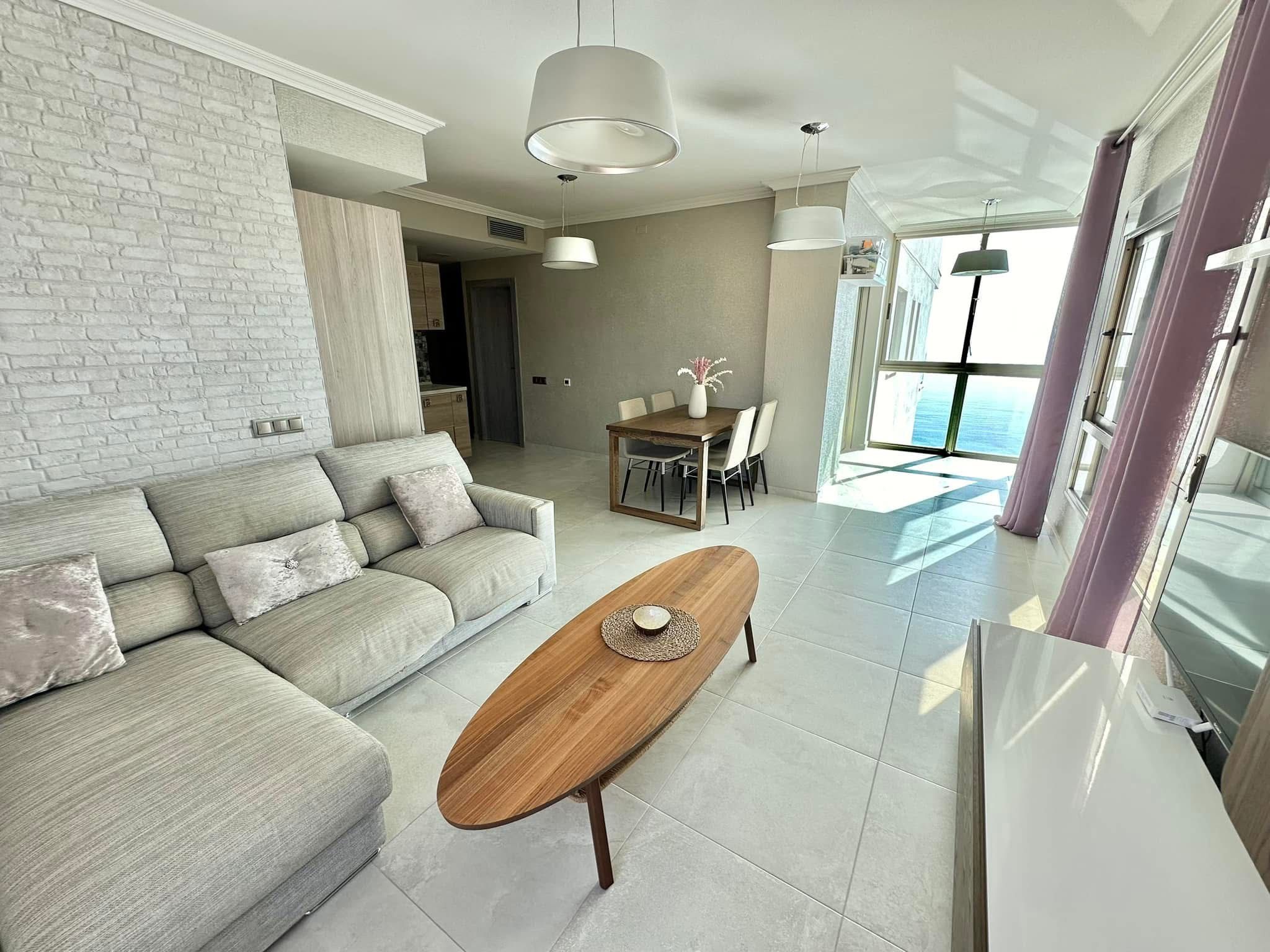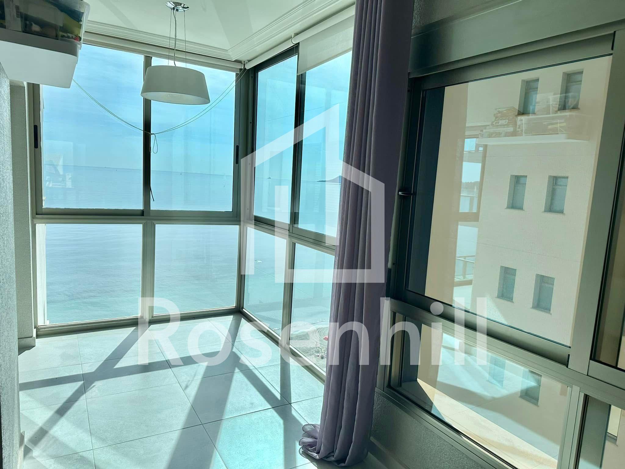 Spacious living room counts with floor to celeling windows which ensure exceptional luminosity during the day. The apartment complex is located in the first sea line which provides direct access to the beach.