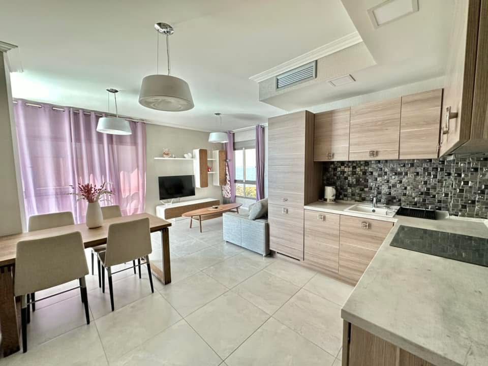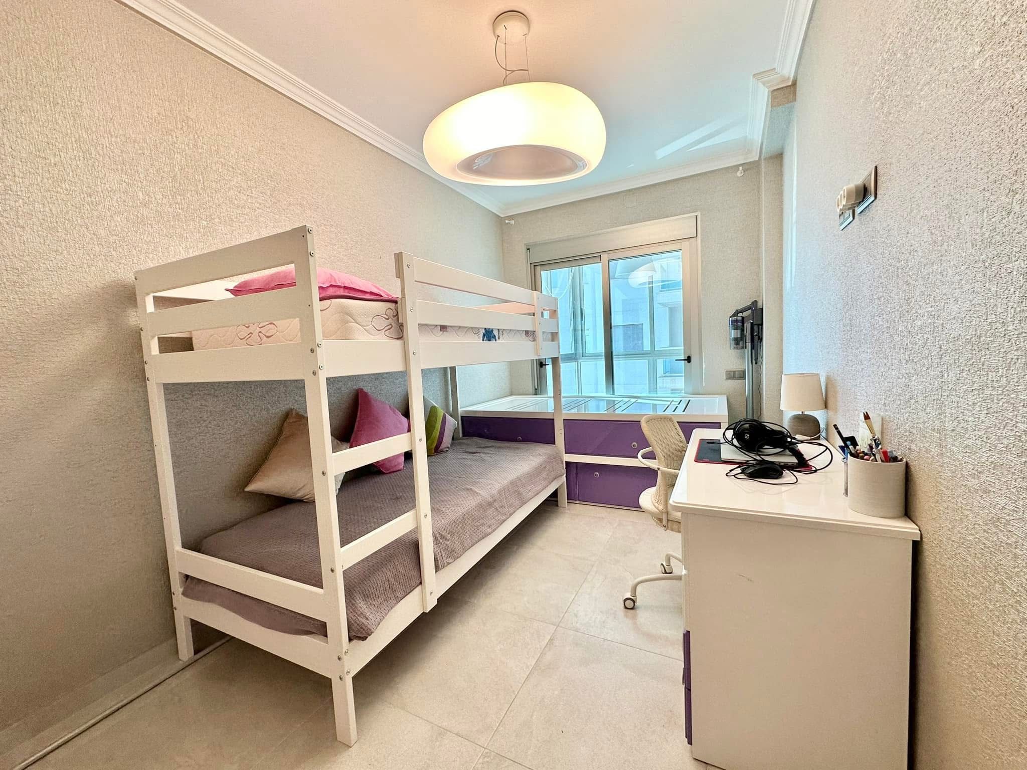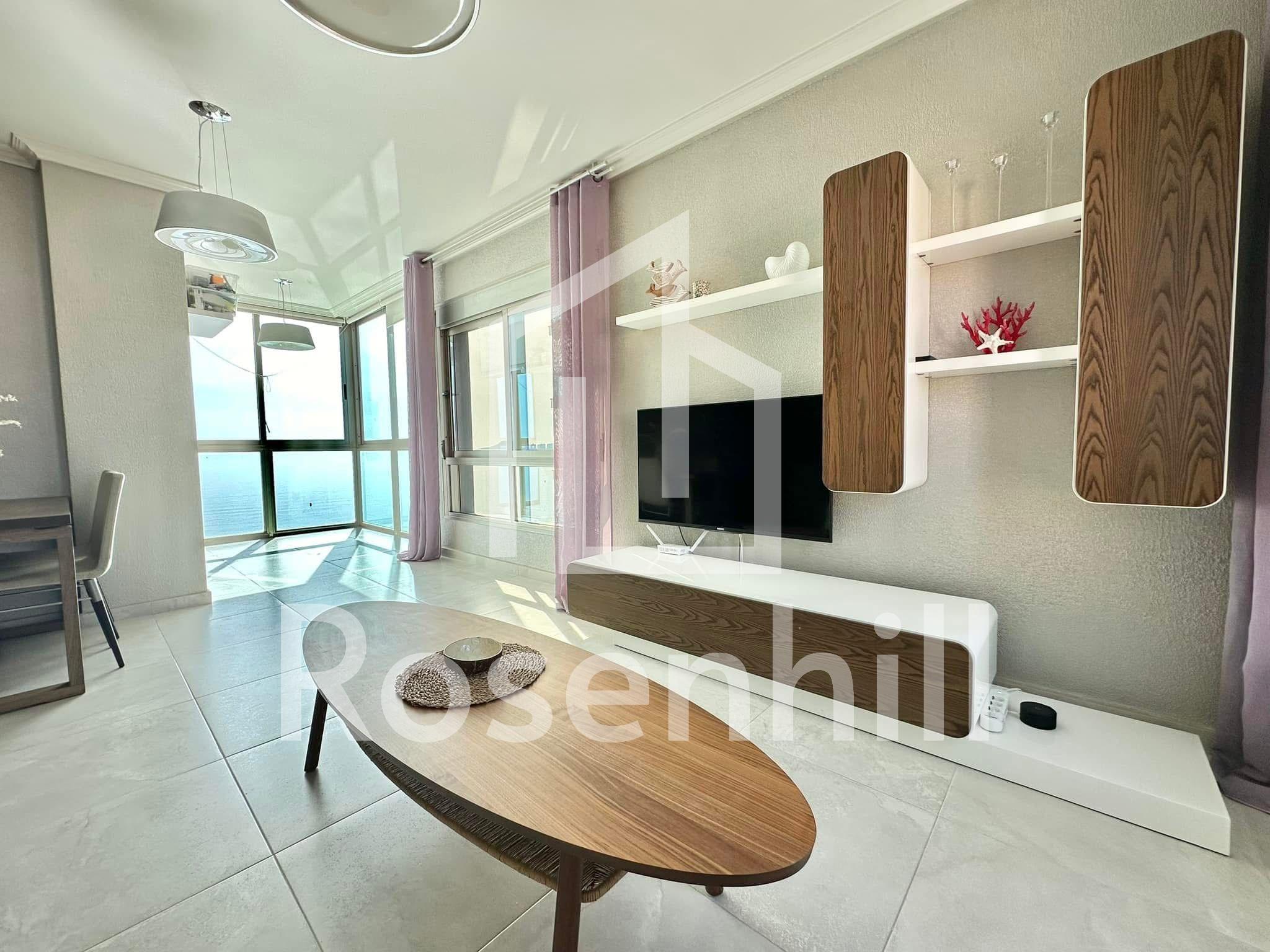 Spacious living room counts with floor to celeling windows which ensure exceptional luminosity during the day. The apartment complex is located in the first sea line which provides direct access to the beach.