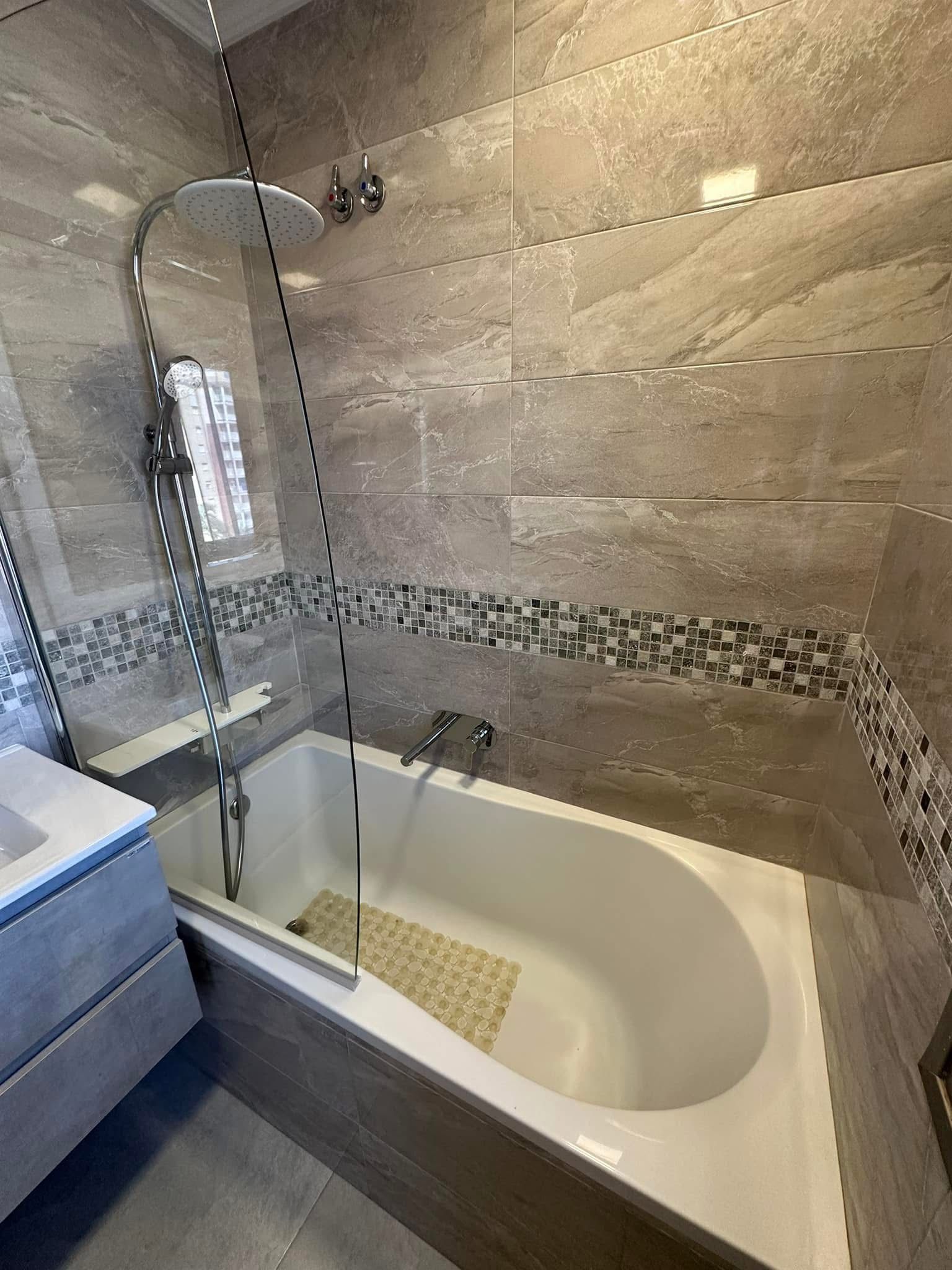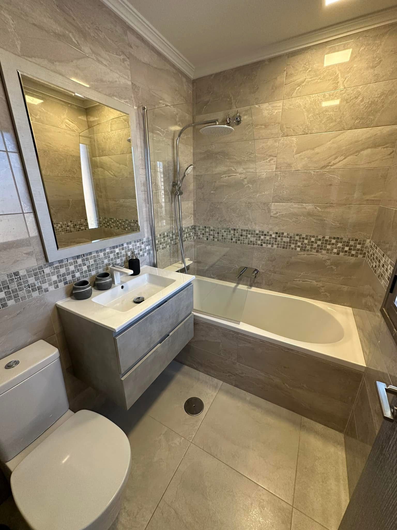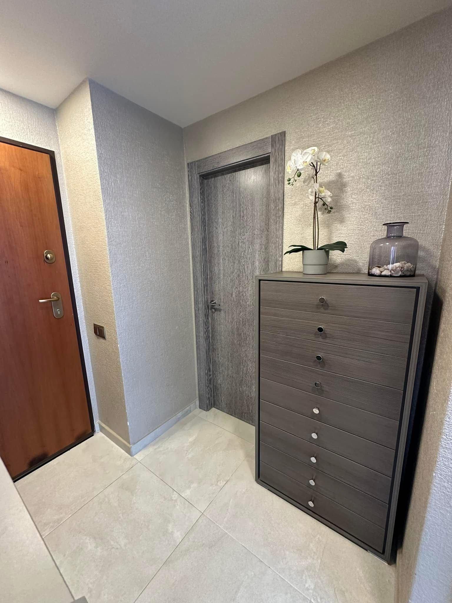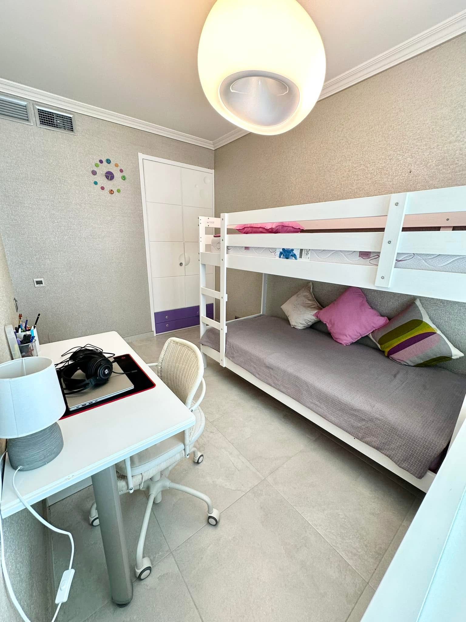 Spacious living room counts with floor to celeling windows which ensure exceptional luminosity during the day. The apartment complex is located in the first sea line which provides direct access to the beach.