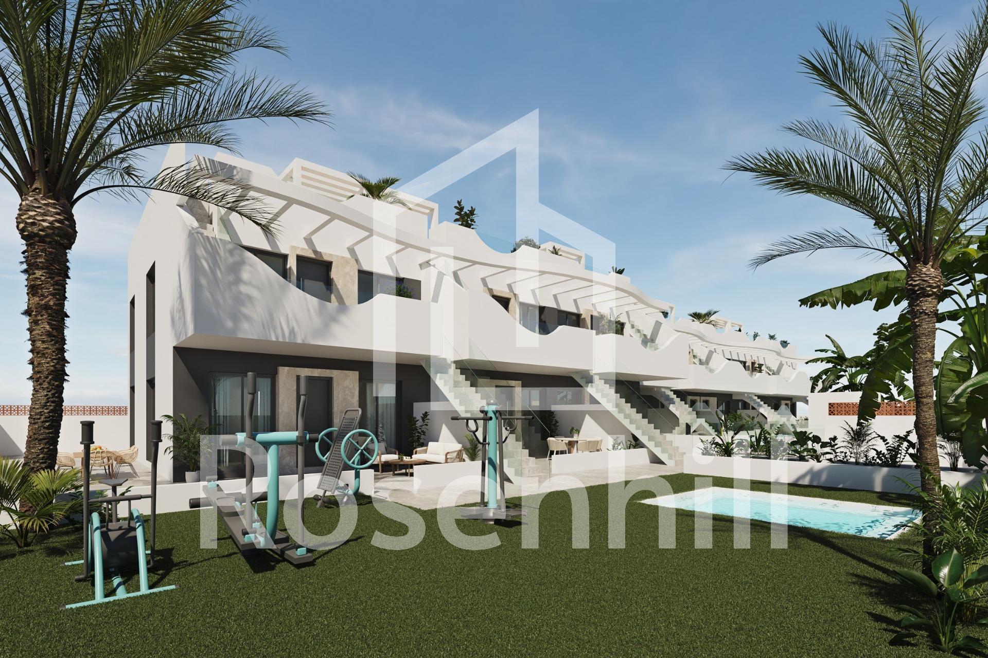Exclusive New Build Bungalows in Pilar de la Horadada – Unique Style and Privileged Location A Unique Style that Defines your New Home This new development of 2 and 3 bedroom bungalows in Pilar de la Horadada stands out for its modern design and undulating structure, which gives each home a unique personality. You will be able to choose between: Ground floors with front garden and back patio. Top floors with private solarium. The residential complex has a communal swimming pool and spacious communal areas designed for the relaxation and enjoyment of the whole family. In addition, the development offers an outdoor gym, communal jacuzzi and parking area for bicycles, as well as a parking space assigned to each property with the option of charging electric vehicles, designed to offer you maximum comfort and quality of life. Bright and high quality interiors Each home has been designed to offer an experience of comfort and functionality. Open-plan spaces maximise the feeling of spaciousness and light, while neutral tones and wood finishes create an elegant and welcoming ambience. Spacious and bright bedrooms, with the master bedroom offering access to a private terrace. Open concept kitchen, integrated into the living room for convenience. Modern bathrooms with top quality materials. Pilar de la Horadada – Quality of Life on the Costa Blanca Located in the province of Alicante, Pilar de la Horadada is a coastal town that combines tradition with a relaxed atmosphere. It is known for its beautiful beaches, such as Playa de las Higuericas, with golden sand crystal clear Mediterranean waters. In addition to its coastline, the town has a vibrant main street lined with shops, supermarkets, restaurants and picturesque squares. Its excellent infrastructure includes cycle paths, hiking trails and a wide variety of sporting activities. Proximity to Major Points of Interest This residential development offers convenient access to the most important destinations in the area: Torre de la Horadada beach – 3 km (5 min drive). Lo Romero Golf Course – 5 km (10 min drive). La Zenia Boulevard Shopping Centre – 15 km (15 min drive). Corvera Airport (Murcia) – 40 km (40 min drive). Alicante Airport – 55 km (55 min drive). Secure your Costa Blanca Property Today Don’t miss out on the opportunity to purchase a brand new property in an exceptional location. Contact us today for more information and to arrange a viewing.