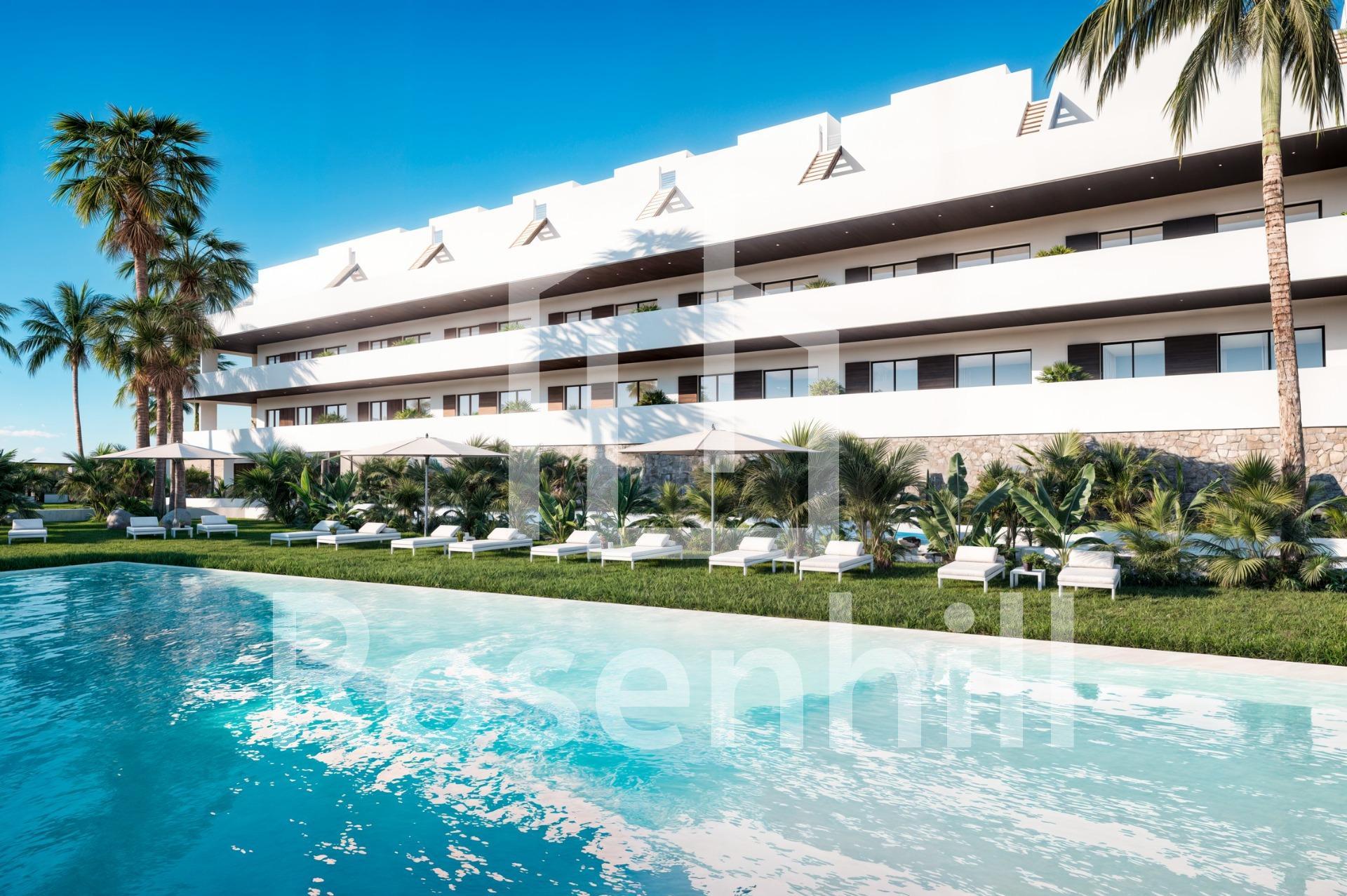 Exclusive New Build Residences with Sea Views in Finestrat, Alicante Prime Location with Panoramic Views of Benidorm and the Mediterranean Discover a unique and luxurious new development in Finestrat, Alicante, offering an exclusive lifestyle on the Costa Blanca. This gated residential complex features 99 modern apartments with 2 bedrooms and 2 bathrooms, just 2.3 km from the beaches of Benidorm, with breathtaking views of the Mediterranean Sea and the city skyline. Set in an elevated position, the development enjoys a peaceful natural environment while remaining close to the lively urban centre of Benidorm. Finestrat is a highly sought-after area that combines tranquility, nature, and proximity to all essential services. Premium Amenities for a Mediterranean Lifestyle Designed with comfort and leisure in mind, the residential complex includes: Three communal swimming pools for relaxation and enjoyment Indoor and outdoor gyms for fitness enthusiasts Children’s playground and padel court for family fun Landscaped green areas and walking paths for peaceful strolls All apartments are built with top-quality materials and finishes, such as: Aluminium windows with thermal break and double glazing for energy efficiency and noise insulation LED lighting throughout the home Furnished bathrooms with backlit mirrors Armoured entrance door for maximum security Outstanding Connectivity and Services The development offers excellent connections to key points of interest: Alicante International Airport – only 55 km (around 40 minutes by car) La Marina Shopping Centre – just 3 km away, featuring shops, restaurants, and entertainment options Levante and Poniente beaches – under 10 minutes by car Puig Campana Natural Park – ideal for hiking, cycling, and outdoor activities Renowned theme parks such as Terra Mítica and Aqualandia – within 5 km Close to leading medical centres and public and private schools Modern Design and Natural Light Each home is designed to make the most of natural light through expansive windows that frame stunning views of Benidorm and the sea. The interiors offer open-plan layouts, functional spaces, and superior insulation for year-round comfort. Whether you are seeking a permanent home, a vacation property, or a sound investment, this new development in Finestrat delivers a blend of serenity, luxury, and proximity to the vibrant city of Benidorm. Secure Your Dream Property on the Costa Blanca Don’t miss this opportunity to own a beautiful new apartment in one of the most desirable areas of Alicante. Contact us today to request more information, schedule a visit, or reserve your new home in Finestrat.