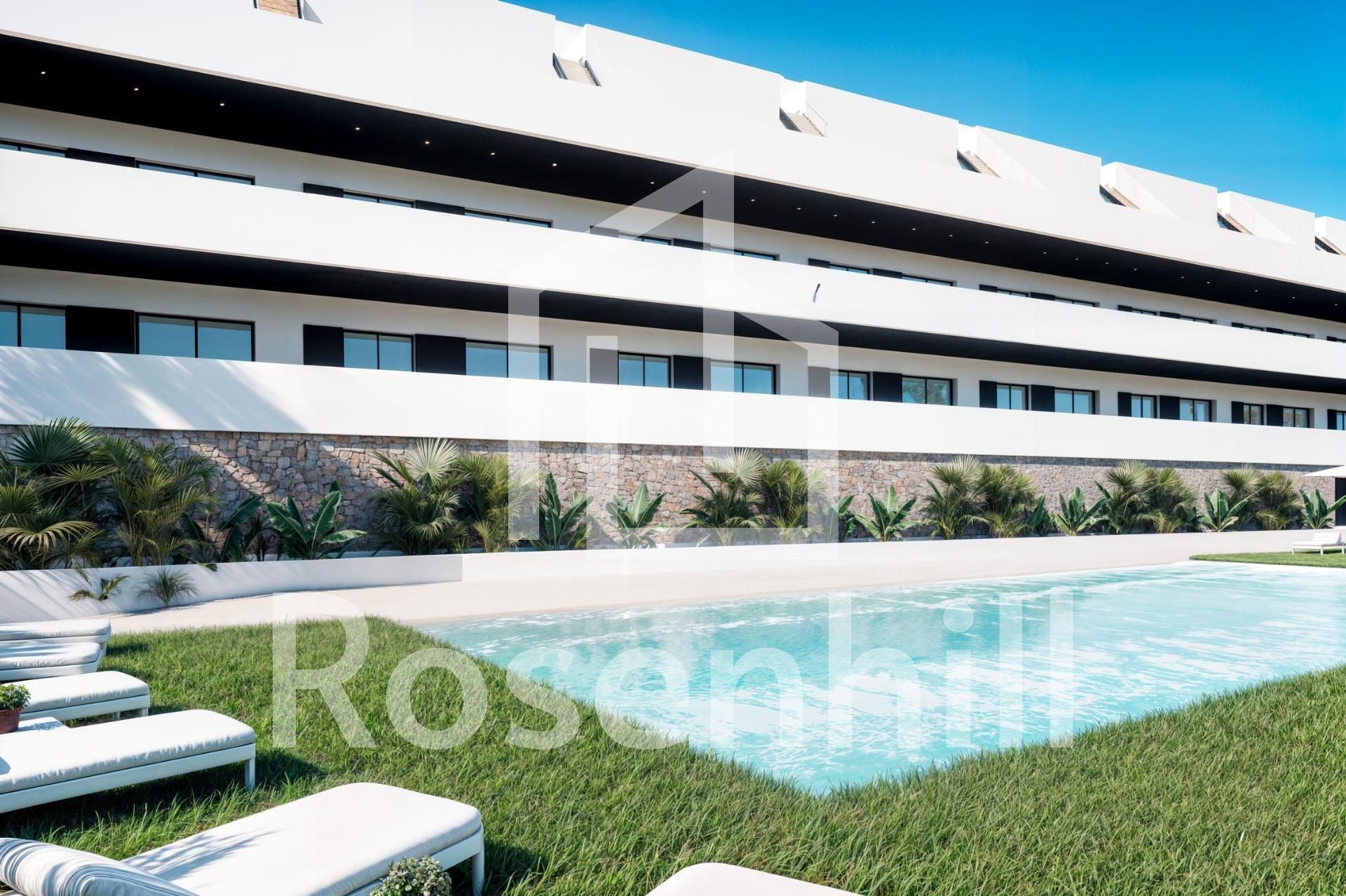 Exclusive New Build Residences with Sea Views in Finestrat, Alicante Prime Location with Panoramic Views of Benidorm and the Mediterranean Discover a unique and luxurious new development in Finestrat, Alicante, offering an exclusive lifestyle on the Costa Blanca. This gated residential complex features 99 modern apartments with 2 bedrooms and 2 bathrooms, just 2.3 km from the beaches of Benidorm, with breathtaking views of the Mediterranean Sea and the city skyline. Set in an elevated position, the development enjoys a peaceful natural environment while remaining close to the lively urban centre of Benidorm. Finestrat is a highly sought-after area that combines tranquility, nature, and proximity to all essential services. Premium Amenities for a Mediterranean Lifestyle Designed with comfort and leisure in mind, the residential complex includes: Three communal swimming pools for relaxation and enjoyment Indoor and outdoor gyms for fitness enthusiasts Children’s playground and padel court for family fun Landscaped green areas and walking paths for peaceful strolls All apartments are built with top-quality materials and finishes, such as: Aluminium windows with thermal break and double glazing for energy efficiency and noise insulation LED lighting throughout the home Furnished bathrooms with backlit mirrors Armoured entrance door for maximum security Outstanding Connectivity and Services The development offers excellent connections to key points of interest: Alicante International Airport – only 55 km (around 40 minutes by car) La Marina Shopping Centre – just 3 km away, featuring shops, restaurants, and entertainment options Levante and Poniente beaches – under 10 minutes by car Puig Campana Natural Park – ideal for hiking, cycling, and outdoor activities Renowned theme parks such as Terra Mítica and Aqualandia – within 5 km Close to leading medical centres and public and private schools Modern Design and Natural Light Each home is designed to make the most of natural light through expansive windows that frame stunning views of Benidorm and the sea. The interiors offer open-plan layouts, functional spaces, and superior insulation for year-round comfort. Whether you are seeking a permanent home, a vacation property, or a sound investment, this new development in Finestrat delivers a blend of serenity, luxury, and proximity to the vibrant city of Benidorm. Secure Your Dream Property on the Costa Blanca Don’t miss this opportunity to own a beautiful new apartment in one of the most desirable areas of Alicante. Contact us today to request more information, schedule a visit, or reserve your new home in Finestrat.