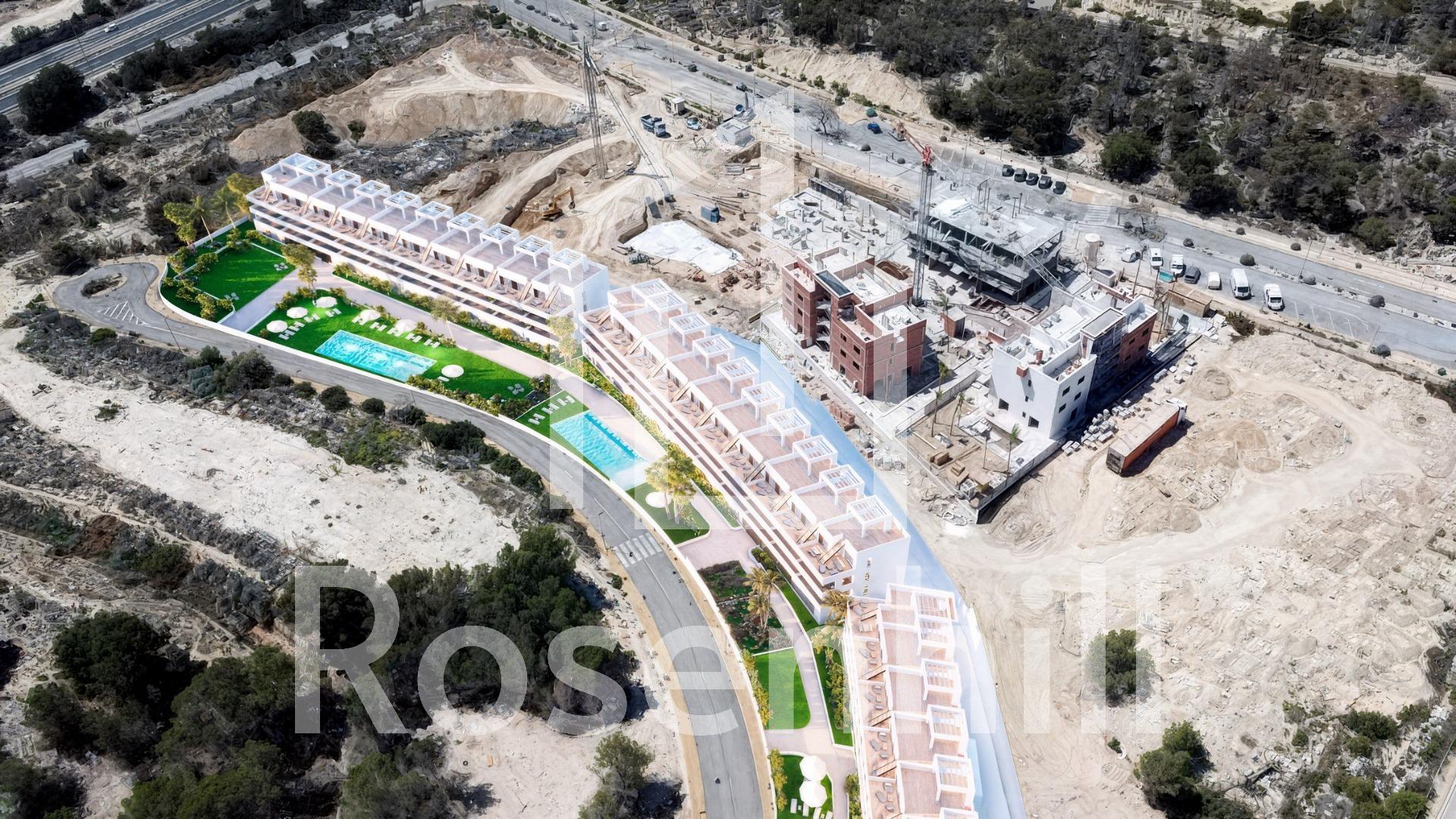 Exclusive New Build Residences with Sea Views in Finestrat, Alicante Prime Location with Panoramic Views of Benidorm and the Mediterranean Discover a unique and luxurious new development in Finestrat, Alicante, offering an exclusive lifestyle on the Costa Blanca. This gated residential complex features 99 modern apartments with 2 bedrooms and 2 bathrooms, just 2.3 km from the beaches of Benidorm, with breathtaking views of the Mediterranean Sea and the city skyline. Set in an elevated position, the development enjoys a peaceful natural environment while remaining close to the lively urban centre of Benidorm. Finestrat is a highly sought-after area that combines tranquility, nature, and proximity to all essential services. Premium Amenities for a Mediterranean Lifestyle Designed with comfort and leisure in mind, the residential complex includes: Three communal swimming pools for relaxation and enjoyment Indoor and outdoor gyms for fitness enthusiasts Children’s playground and padel court for family fun Landscaped green areas and walking paths for peaceful strolls All apartments are built with top-quality materials and finishes, such as: Aluminium windows with thermal break and double glazing for energy efficiency and noise insulation LED lighting throughout the home Furnished bathrooms with backlit mirrors Armoured entrance door for maximum security Outstanding Connectivity and Services The development offers excellent connections to key points of interest: Alicante International Airport – only 55 km (around 40 minutes by car) La Marina Shopping Centre – just 3 km away, featuring shops, restaurants, and entertainment options Levante and Poniente beaches – under 10 minutes by car Puig Campana Natural Park – ideal for hiking, cycling, and outdoor activities Renowned theme parks such as Terra Mítica and Aqualandia – within 5 km Close to leading medical centres and public and private schools Modern Design and Natural Light Each home is designed to make the most of natural light through expansive windows that frame stunning views of Benidorm and the sea. The interiors offer open-plan layouts, functional spaces, and superior insulation for year-round comfort. Whether you are seeking a permanent home, a vacation property, or a sound investment, this new development in Finestrat delivers a blend of serenity, luxury, and proximity to the vibrant city of Benidorm. Secure Your Dream Property on the Costa Blanca Don’t miss this opportunity to own a beautiful new apartment in one of the most desirable areas of Alicante. Contact us today to request more information, schedule a visit, or reserve your new home in Finestrat.