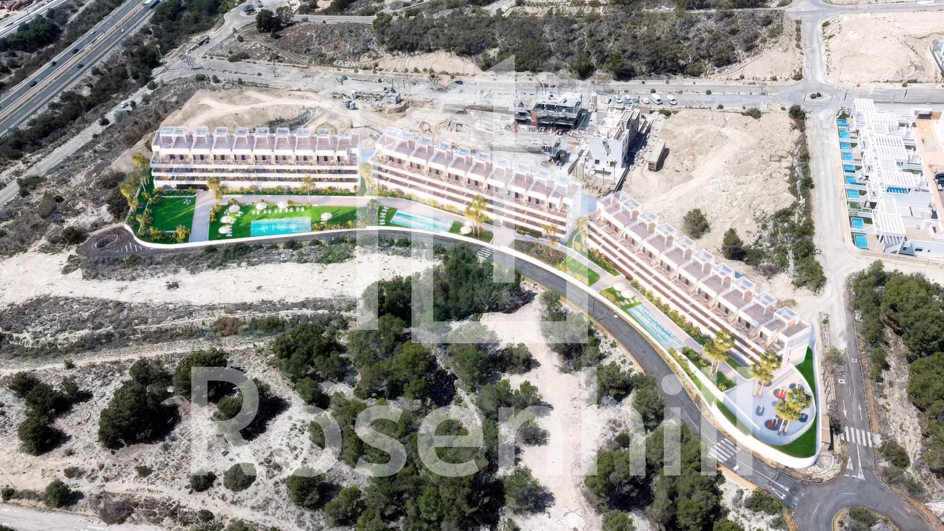 Exclusive New Build Residences with Sea Views in Finestrat, Alicante Prime Location with Panoramic Views of Benidorm and the Mediterranean Discover a unique and luxurious new development in Finestrat, Alicante, offering an exclusive lifestyle on the Costa Blanca. This gated residential complex features 99 modern apartments with 2 bedrooms and 2 bathrooms, just 2.3 km from the beaches of Benidorm, with breathtaking views of the Mediterranean Sea and the city skyline. Set in an elevated position, the development enjoys a peaceful natural environment while remaining close to the lively urban centre of Benidorm. Finestrat is a highly sought-after area that combines tranquility, nature, and proximity to all essential services. Premium Amenities for a Mediterranean Lifestyle Designed with comfort and leisure in mind, the residential complex includes: Three communal swimming pools for relaxation and enjoyment Indoor and outdoor gyms for fitness enthusiasts Children’s playground and padel court for family fun Landscaped green areas and walking paths for peaceful strolls All apartments are built with top-quality materials and finishes, such as: Aluminium windows with thermal break and double glazing for energy efficiency and noise insulation LED lighting throughout the home Furnished bathrooms with backlit mirrors Armoured entrance door for maximum security Outstanding Connectivity and Services The development offers excellent connections to key points of interest: Alicante International Airport – only 55 km (around 40 minutes by car) La Marina Shopping Centre – just 3 km away, featuring shops, restaurants, and entertainment options Levante and Poniente beaches – under 10 minutes by car Puig Campana Natural Park – ideal for hiking, cycling, and outdoor activities Renowned theme parks such as Terra Mítica and Aqualandia – within 5 km Close to leading medical centres and public and private schools Modern Design and Natural Light Each home is designed to make the most of natural light through expansive windows that frame stunning views of Benidorm and the sea. The interiors offer open-plan layouts, functional spaces, and superior insulation for year-round comfort. Whether you are seeking a permanent home, a vacation property, or a sound investment, this new development in Finestrat delivers a blend of serenity, luxury, and proximity to the vibrant city of Benidorm. Secure Your Dream Property on the Costa Blanca Don’t miss this opportunity to own a beautiful new apartment in one of the most desirable areas of Alicante. Contact us today to request more information, schedule a visit, or reserve your new home in Finestrat.