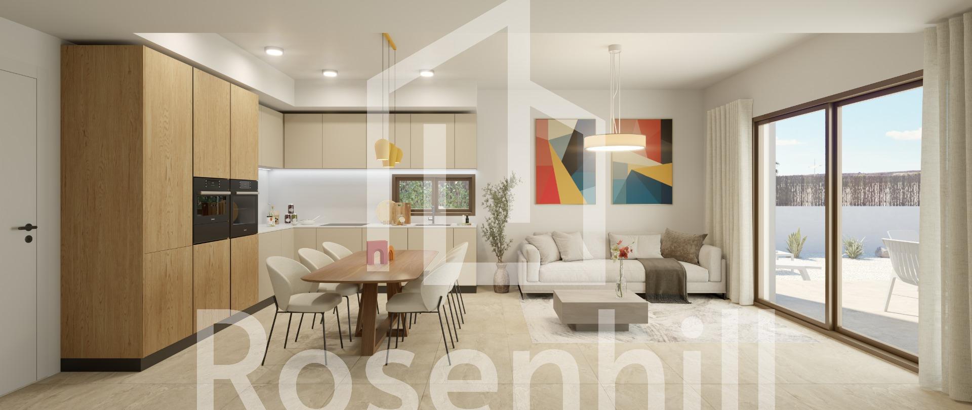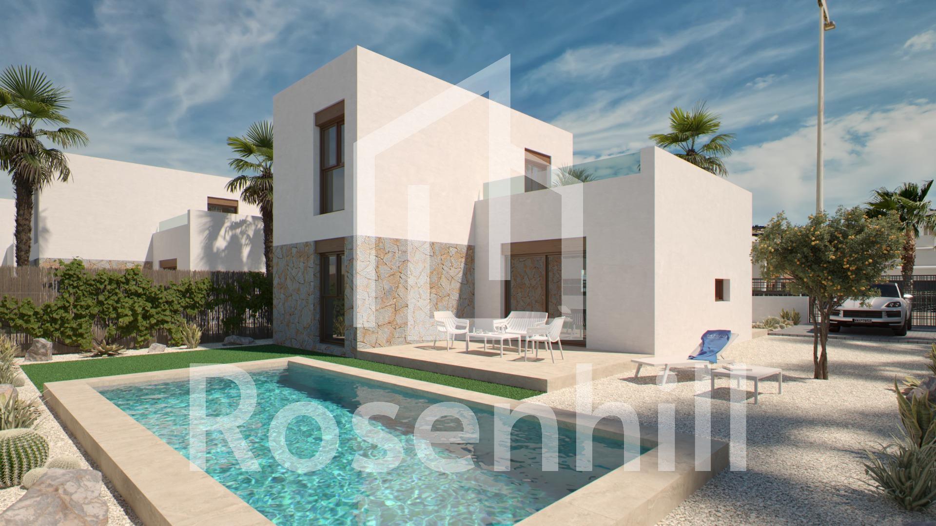 Exclusive New-Build Villas in Algorfa Golf Course Area Discover these stunning new-build villas in Algorfa, nestled in the serene surroundings of one of Spain’s most prestigious golf resorts, La Finca Golf & Spa Resort. Located in the southern part of Alicante Province, this exclusive development combines luxurious living with the benefits of resort-style amenities, creating the ideal home for golf enthusiasts and those seeking a relaxed Mediterranean lifestyle. Elegant 3-Bedroom Villas with Private Pool and Modern Design Each villa is thoughtfully designed over two spacious floors, featuring 3 bedrooms and 2 bathrooms. The open-plan kitchen flows seamlessly into the living area, where large windows and sliding glass doors provide abundant natural light and direct access to the terrace and private pool. A convenient private parking space is included on the plot, enhancing the ease and exclusivity of these homes. Premium Features and Smart Home Technology These villas come with a range of high-end features to provide maximum comfort and security. Enjoy the convenience of private indoor parking, electric shutters, ducted air-conditioning, and a sophisticated home automation system. Additionally, a fully fitted alarm system ensures peace of mind. The south/southwest orientation allows for optimal natural lighting year-round, reducing energy consumption by providing warmth and brightness from sunrise to sunset. Bright, Open-Concept Living Spaces with Traditional Touches Designed with an open concept, these homes use large windows and sliding doors to promote cross-ventilation, keeping the interiors fresh and filled with natural light. The architectural design combines modern aesthetics with traditional elements, like stone accents on the façade and wooden details, creating a warm, inviting atmosphere. With an EPC A rating, these villas offer energy efficiency and sustainability, making them an eco-friendly choice for homeowners. Prime Location with Access to Beaches and Key Attractions Set in the well-established town of Algorfa, these villas are just a short drive from the pristine beaches of Guardamar and Torrevieja, where you can enjoy over 300 days of sunshine each year. Nearby, you’ll find shopping centers, fine dining restaurants, and vibrant entertainment venues. Excellent infrastructure and proximity to major roads, including the AP-7 motorway, ensure easy connections to popular destinations like Orihuela, Elche, Murcia, and Alicante. Alicante Airport is only 40 km away, while Murcia Airport is 55 km, making travel convenient. Your Mediterranean Dream Home Awaits – Contact Us Today Don’t miss this opportunity to own a luxurious villa in Algorfa’s most prestigious golf resort area. Experience the perfect blend of modern comfort, traditional charm, and Mediterranean lifestyle. Contact us now to arrange a viewing and discover your dream home.
