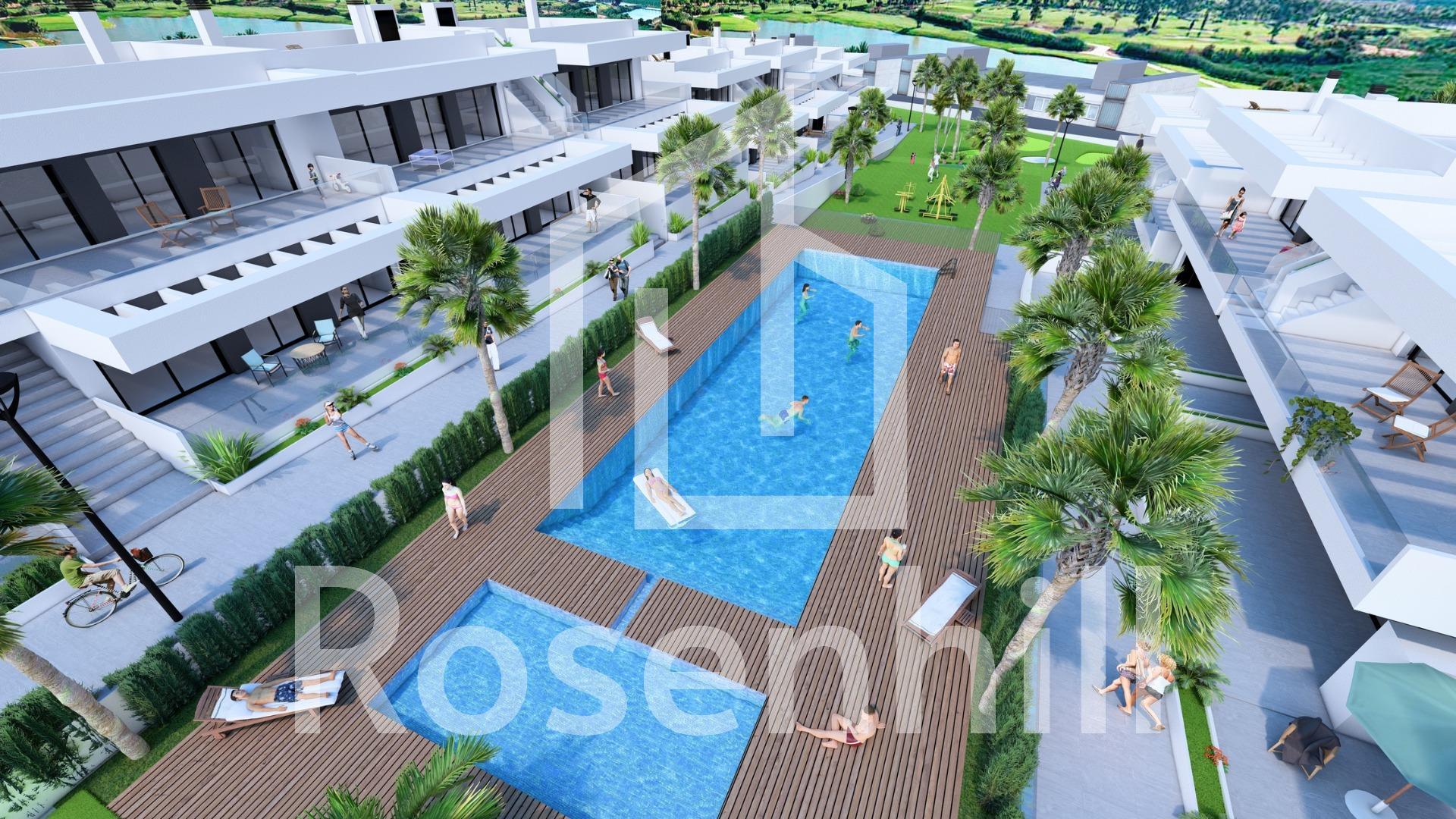 Exclusive New Construction Bungalows in La Finca Golf, Algorfa Discover Your New Home in La Finca Golf Welcome to a luxurious new residential development in the heart of La Finca Golf, located in the picturesque town of Algorfa on Spain’s Costa Blanca. This exclusive complex of 40 modern bungalows is designed for those seeking a blend of elegance, comfort, and natural beauty. Choose from spacious 2 or 3-bedroom layouts, with options for ground-floor homes featuring private gardens or upper-floor residences with private solariums—perfect for relaxing and taking in the breathtaking views of the golf course. Prime Location in La Finca Golf, Algorfa Situated within the renowned La Finca Golf resort, this community offers a peaceful, scenic environment while being close to local amenities. La Finca Golf’s ideal location places it just 4 km from Algorfa’s town center, 15 km from the vibrant coastal town of Torrevieja, and 45 km from Alicante International Airport, making it convenient for both locals and international residents. Major points of interest nearby include La Zenia Boulevard Shopping Center (20 km), Playa Flamenca Beach (19 km), and Villamartín Golf Course (18 km). Additionally, the Mediterranean port of Alicante is only 40 minutes by car, providing a gateway to coastal adventures. Luxury Living with Exceptional Amenities Designed to create a resort-like experience, the community offers an array of exceptional amenities. Residents can enjoy a stunning community pool with designated areas for children and adults, perfect for relaxation or social gatherings. Other amenities include an outdoor gym, petanque courts, and a mini-golf course, offering activities for all ages. The lush green areas and ample play zones for children make this an ideal setting for family living. Every detail has been carefully crafted to ensure comfort and luxury, with high-end finishes throughout the homes and common areas. High-Quality, Fully Equipped Homes Each bungalow in this development comes fully furnished, allowing you to move in effortlessly and start enjoying your new lifestyle immediately. The homes are equipped with premium appliances, air conditioning through ducts, and aluminum windows with thermal insulation. Bathrooms include shower screens, mirrors, and custom cabinetry. Each unit is fully illuminated with a high-quality lighting package, adding elegance and functionality to every space. Experience Costa Blanca Living at its Finest Don’t miss the chance to own a property in this exclusive community, blending luxury and convenience in one of the most sought-after areas of the Costa Blanca. Whether you’re looking for a primary residence or a vacation home, this is an investment in quality living. Schedule your visit today and take the first step toward owning your dream home in La Finca Golf, Algorfa.