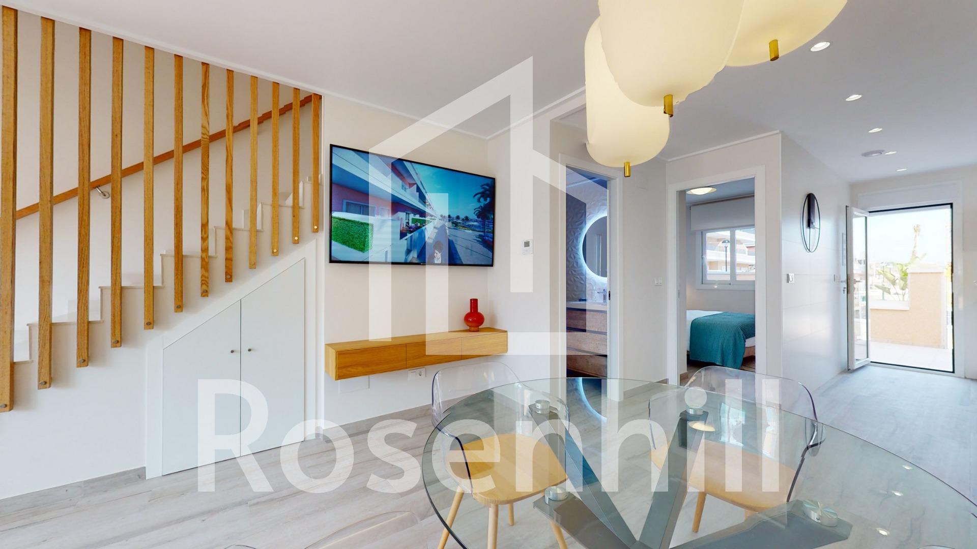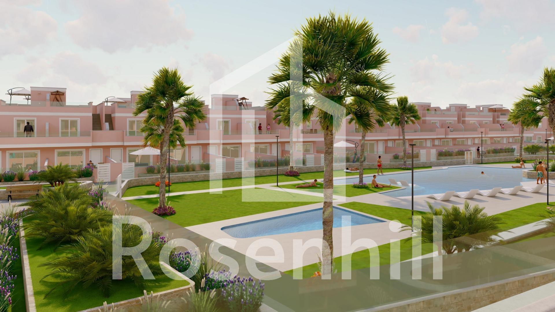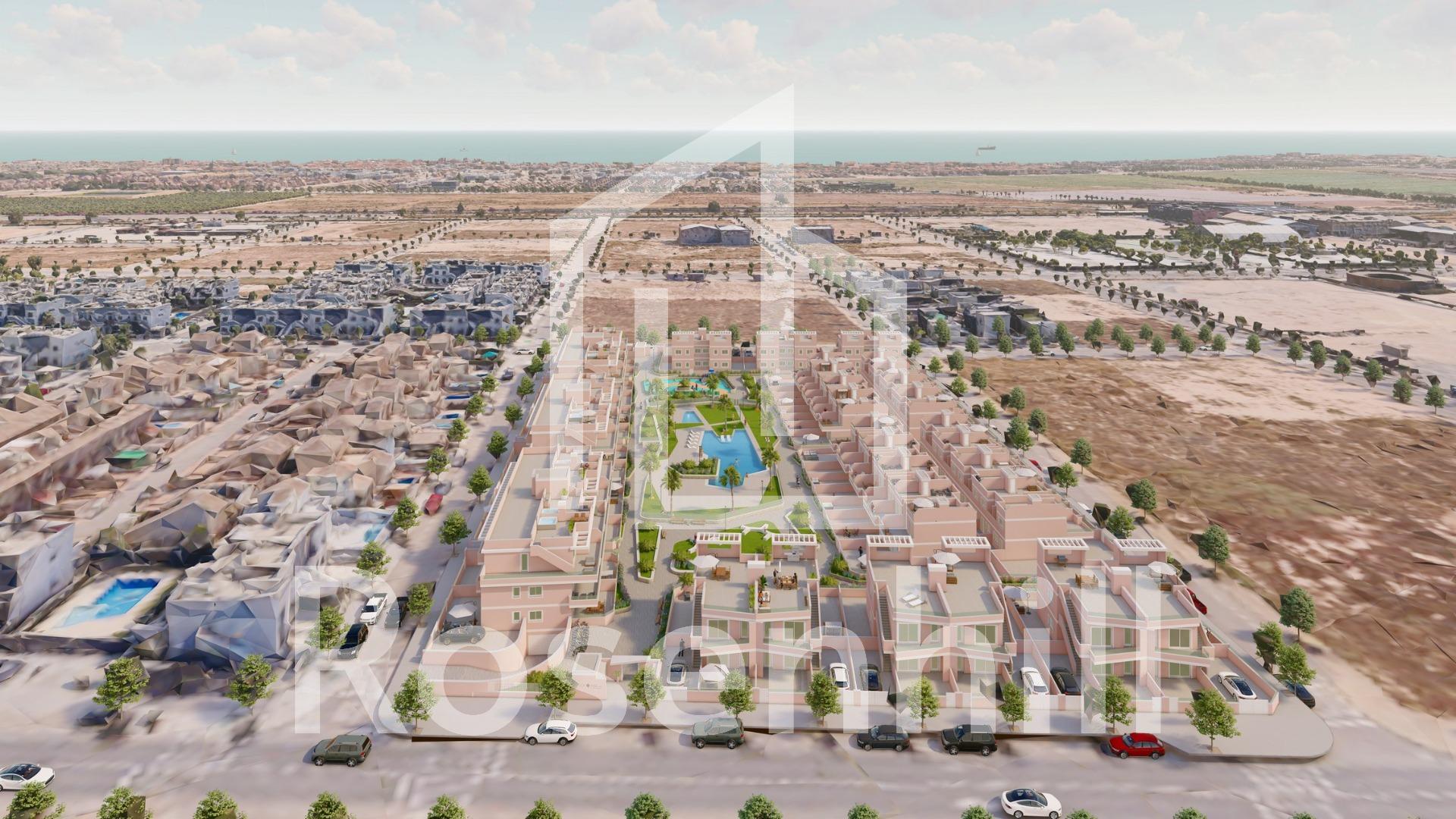 Exclusive New Development in Pilar de la Horadada, Costa Blanca, Spain Modern Homes Close to the Sea Discover this new residential complex in Pilar de la Horadada, a privileged location on the Costa Blanca. Only 2 km from the beach, this project offers a wide variety of 3 bedroom, 2 bathroom properties, with private parking included in the price. The development has spacious communal areas, including a communal swimming pool, landscaped gardens and a children’s play area, ideal for the whole family to enjoy. Different Typologies to suit your Lifestyle This development offers various housing options: Ground floor apartments with private gardens. Middle floor flats with large terraces. Penthouses with private solarium. Ground floor bungalows with private garden. Top floor bungalows with private garden and solarium. Townhouses and semi-detached houses with garden and solarium. All homes have been designed in a modern and functional style, using high quality materials and contemporary finishes. Equipment and Qualities The properties are equipped with: Pre-installation of ducted air conditioning. Exterior aluminium carpentry with thermal break and double glazing. Reinforced access door for greater security. Aerothermal system for efficient hot water production. Built-in wardrobes with LED lighting. Bathroom furniture and screens included. Pilar de la Horadada: A Privileged Place to Live in Pilar de la Horadada is a coastal town at the southern end of the Costa Blanca, with an exceptional climate and an excellent quality of life. Its lively main street offers a wide variety of shops, supermarkets, restaurants and essential services. Just a 5 minute drive away, you will find the stunning beaches of Torre de la Horadada and Mil Palmeras, with golden sand a lovely promenade. In addition, the area has cycle paths, hiking trails and multiple sporting activities. Distances to Key Points Lo Romero Golf Course – 5 km (10 minutes drive). Corvera Airport (Murcia) – 40 km (40 minutes by car). Alicante Airport – 55 km (55 minutes by car). Zenia Boulevard Shopping Centre – 15 km (15 minutes by car). Torre de la Horadada Marina – 3 km (5 minutes by car). Request More Information Today Don’t miss this opportunity to purchase a brand new property in one of the best areas of the Costa Blanca. Contact us now for more details and to arrange a viewing.