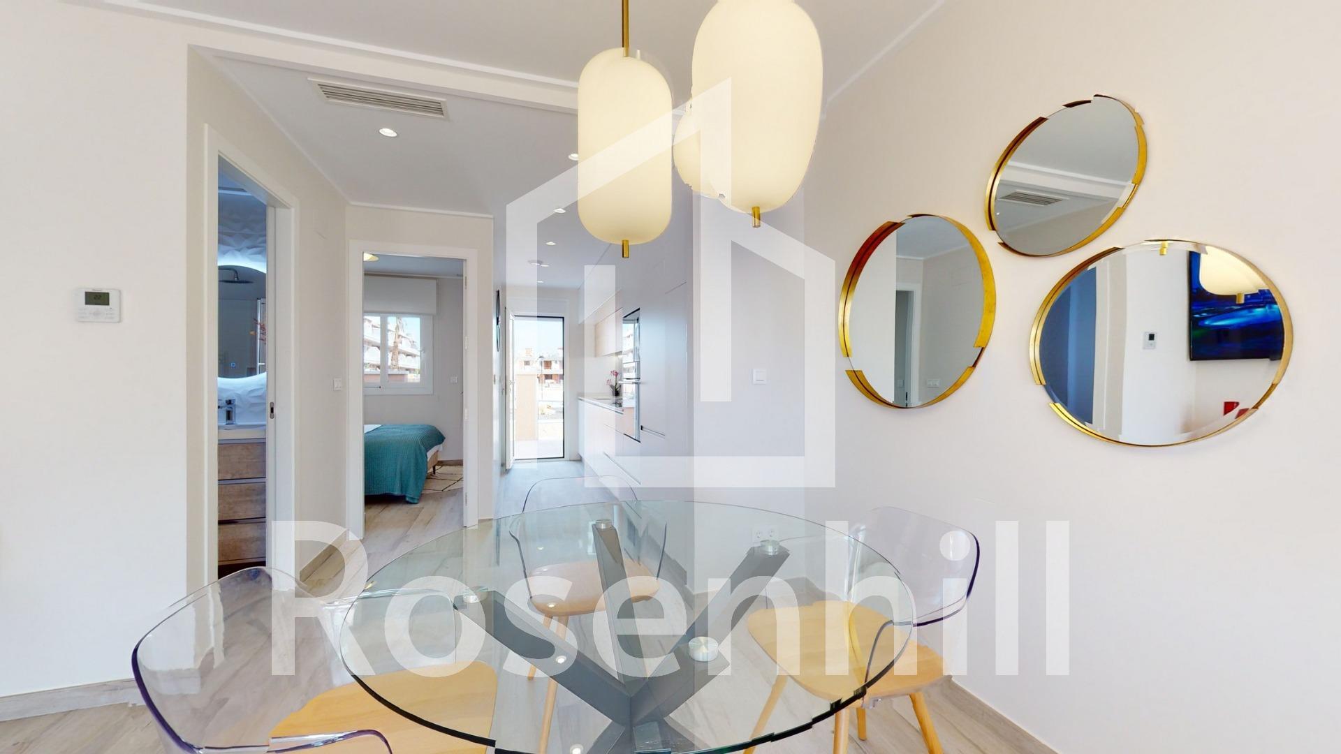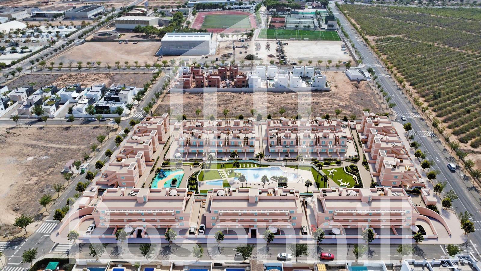 Exclusive New Development in Pilar de la Horadada, Costa Blanca, Spain Modern Homes Close to the Sea Discover this new residential complex in Pilar de la Horadada, a privileged location on the Costa Blanca. Only 2 km from the beach, this project offers a wide variety of 3 bedroom, 2 bathroom properties, with private parking included in the price. The development has spacious communal areas, including a communal swimming pool, landscaped gardens and a children’s play area, ideal for the whole family to enjoy. Different Typologies to suit your Lifestyle This development offers various housing options: Ground floor apartments with private gardens. Middle floor flats with large terraces. Penthouses with private solarium. Ground floor bungalows with private garden. Top floor bungalows with private garden and solarium. Townhouses and semi-detached houses with garden and solarium. All homes have been designed in a modern and functional style, using high quality materials and contemporary finishes. Equipment and Qualities The properties are equipped with: Pre-installation of ducted air conditioning. Exterior aluminium carpentry with thermal break and double glazing. Reinforced access door for greater security. Aerothermal system for efficient hot water production. Built-in wardrobes with LED lighting. Bathroom furniture and screens included. Pilar de la Horadada: A Privileged Place to Live in Pilar de la Horadada is a coastal town at the southern end of the Costa Blanca, with an exceptional climate and an excellent quality of life. Its lively main street offers a wide variety of shops, supermarkets, restaurants and essential services. Just a 5 minute drive away, you will find the stunning beaches of Torre de la Horadada and Mil Palmeras, with golden sand a lovely promenade. In addition, the area has cycle paths, hiking trails and multiple sporting activities. Distances to Key Points Lo Romero Golf Course – 5 km (10 minutes drive). Corvera Airport (Murcia) – 40 km (40 minutes by car). Alicante Airport – 55 km (55 minutes by car). Zenia Boulevard Shopping Centre – 15 km (15 minutes by car). Torre de la Horadada Marina – 3 km (5 minutes by car). Request More Information Today Don’t miss this opportunity to purchase a brand new property in one of the best areas of the Costa Blanca. Contact us now for more details and to arrange a viewing.