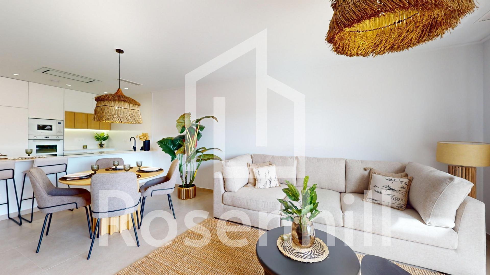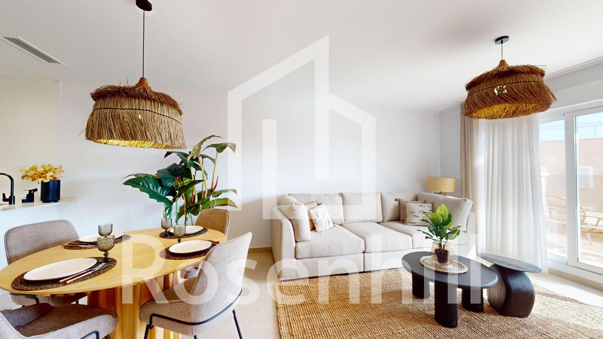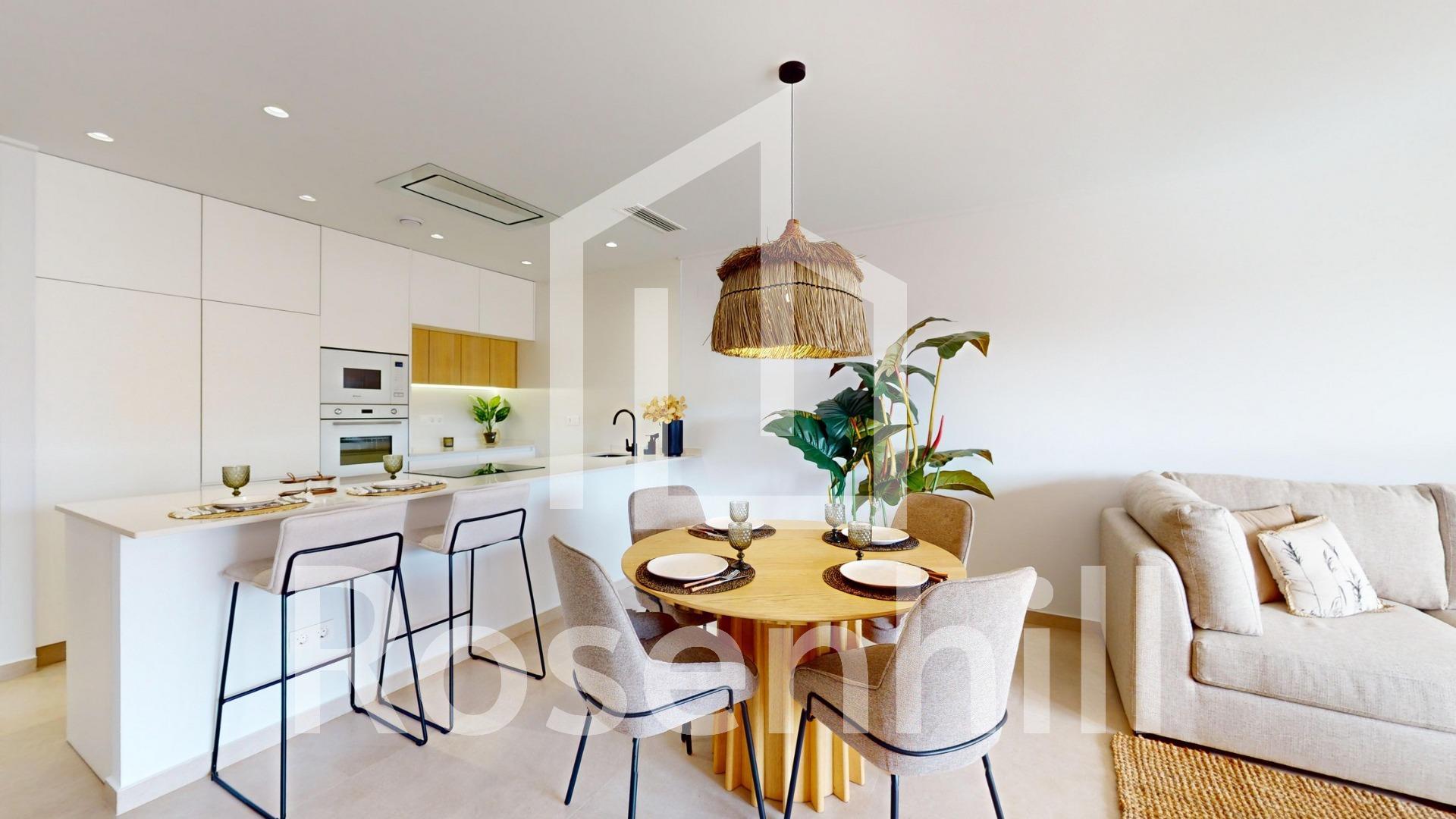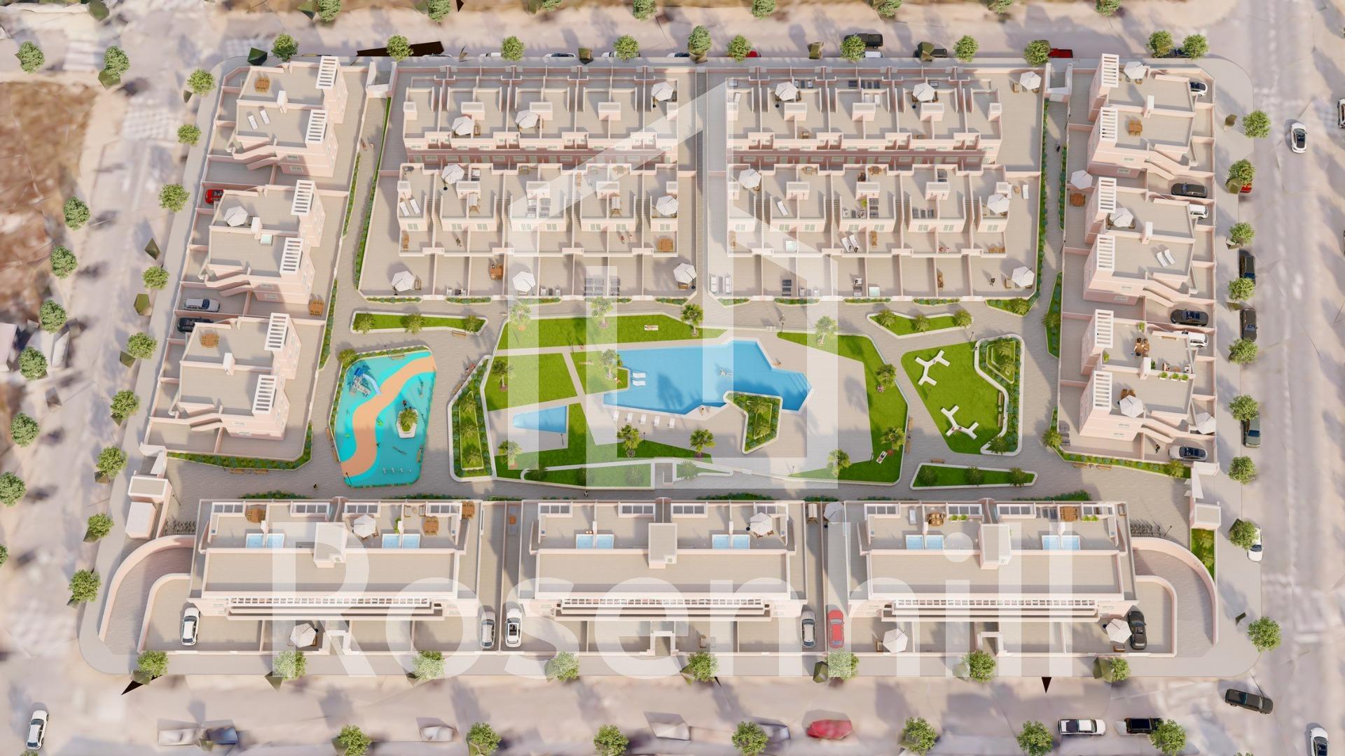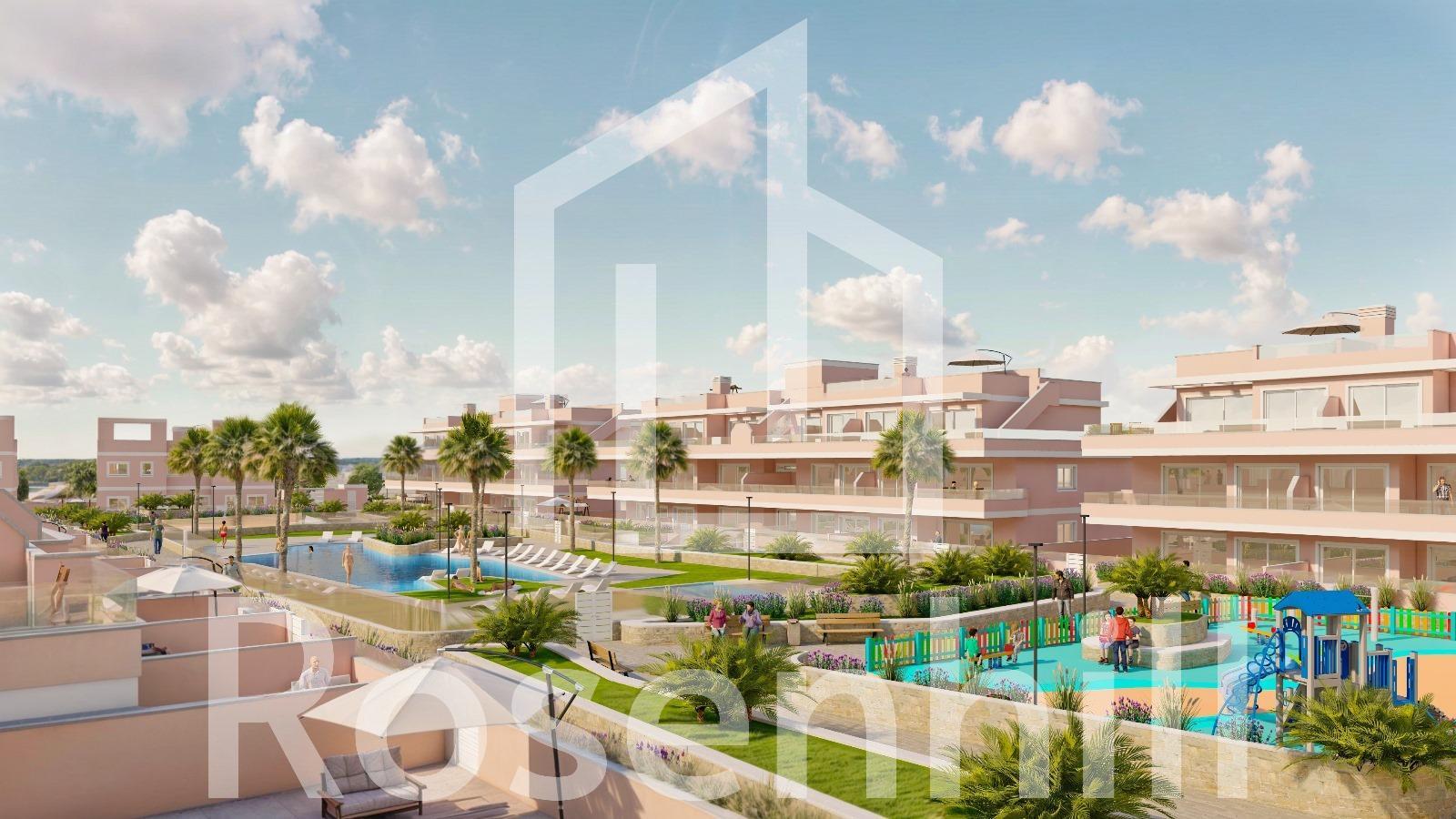 Exclusive New Development in Pilar de la Horadada, Costa Blanca, Spain Modern Homes Close to the Sea Discover this new residential complex in Pilar de la Horadada, a privileged location on the Costa Blanca. Only 2 km from the beach, this project offers a wide variety of 3 bedroom, 2 bathroom properties, with private parking included in the price. The development has spacious communal areas, including a communal swimming pool, landscaped gardens and a children’s play area, ideal for the whole family to enjoy. Different Typologies to suit your Lifestyle This development offers various housing options: Ground floor apartments with private gardens. Middle floor flats with large terraces. Penthouses with private solarium. Ground floor bungalows with private garden. Top floor bungalows with private garden and solarium. Townhouses and semi-detached houses with garden and solarium. All homes have been designed in a modern and functional style, using high quality materials and contemporary finishes. Equipment and Qualities The properties are equipped with: Pre-installation of ducted air conditioning. Exterior aluminium carpentry with thermal break and double glazing. Reinforced access door for greater security. Aerothermal system for efficient hot water production. Built-in wardrobes with LED lighting. Bathroom furniture and screens included. Pilar de la Horadada: A Privileged Place to Live in Pilar de la Horadada is a coastal town at the southern end of the Costa Blanca, with an exceptional climate and an excellent quality of life. Its lively main street offers a wide variety of shops, supermarkets, restaurants and essential services. Just a 5 minute drive away, you will find the stunning beaches of Torre de la Horadada and Mil Palmeras, with golden sand a lovely promenade. In addition, the area has cycle paths, hiking trails and multiple sporting activities. Distances to Key Points Lo Romero Golf Course – 5 km (10 minutes drive). Corvera Airport (Murcia) – 40 km (40 minutes by car). Alicante Airport – 55 km (55 minutes by car). Zenia Boulevard Shopping Centre – 15 km (15 minutes by car). Torre de la Horadada Marina – 3 km (5 minutes by car). Request More Information Today Don’t miss this opportunity to purchase a brand new property in one of the best areas of the Costa Blanca. Contact us now for more details and to arrange a viewing.