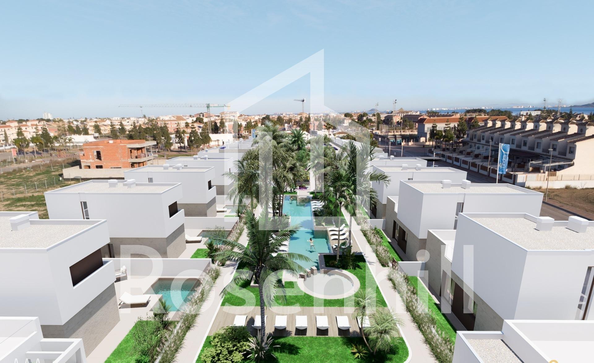 Exclusive Villas and Bungalows on the Costa Cálida – Design, Comfort and Privileged Location A Project that Fuses Privacy and Community Living Discover a new residential concept on the Costa Cálida, designed for those seeking the perfect combination of privacy, comfort and social life. This exclusive complex offers detached villas and bungalows, with access to spacious communal areas and a communal swimming pool, providing the best of both worlds: the tranquillity of a private home and the comfort of shared spaces to enjoy with friends, family and neighbours. All homes include a parking space and storage room in the basement, guaranteeing security and convenience for residents. Modern Design and Personalisation Options This development offers a wide range of homes to suit different needs and lifestyles: Ground floor bungalows with private gardens up to 122 m². Top floor bungalows with large terraces and private solarium. One or two-storey detached villas, with plots ranging from 201 to 356 m² and different layout and finishing options. Each home is designed to maximise natural light, creating spacious and welcoming spaces. The master suite has been carefully conceived to guarantee privacy and comfort, completely separating the sleeping area from the bathroom, avoiding interruptions of light or noise during the night. Quality and Sustainability in Every Detail These homes have been built with high quality materials and equipped with sustainable technologies, such as solar panels and aerothermics, to improve energy efficiency. Outstanding features: Motorised blinds in bedrooms. Armoured front door for greater security. Pre-installation of ducted air conditioning. Modern bathrooms with tempered glass partitions and suspended furniture with LED mirror. Strategic Location in Los Alcázares Situated just a few metres from the prestigious Serena Golf course and 1 km from the beaches of the Mar Menor, this complex enjoys a privileged location in Los Alcázares, one of the most promising areas of the Costa Cálida. In addition, its easy access to the AP-7 motorway allows quick connection to other destinations in the region and facilitates access to essential services such as supermarkets, sports centres, schools and pharmacies. Distances to Points of Interest La Serena Golf – 1 km (2 minutes by car). Mar Menor Beach – 1 km (2 minutes by car or 10 minutes walk). Murcia Airport – 35 km (30 minutes by car). Cartagena Port – 22 km (20 minutes by car). Local shopping centre – 3 km (5 minutes by car). A Mediterranean Lifestyle with High Profitability This project not only represents an excellent option to enjoy the Mediterranean lifestyle, but it is also a safe investment in a growing area. Don’t miss out on this unique opportunity. Contact us today for more information and to reserve your ideal home on the Costa Cálida.