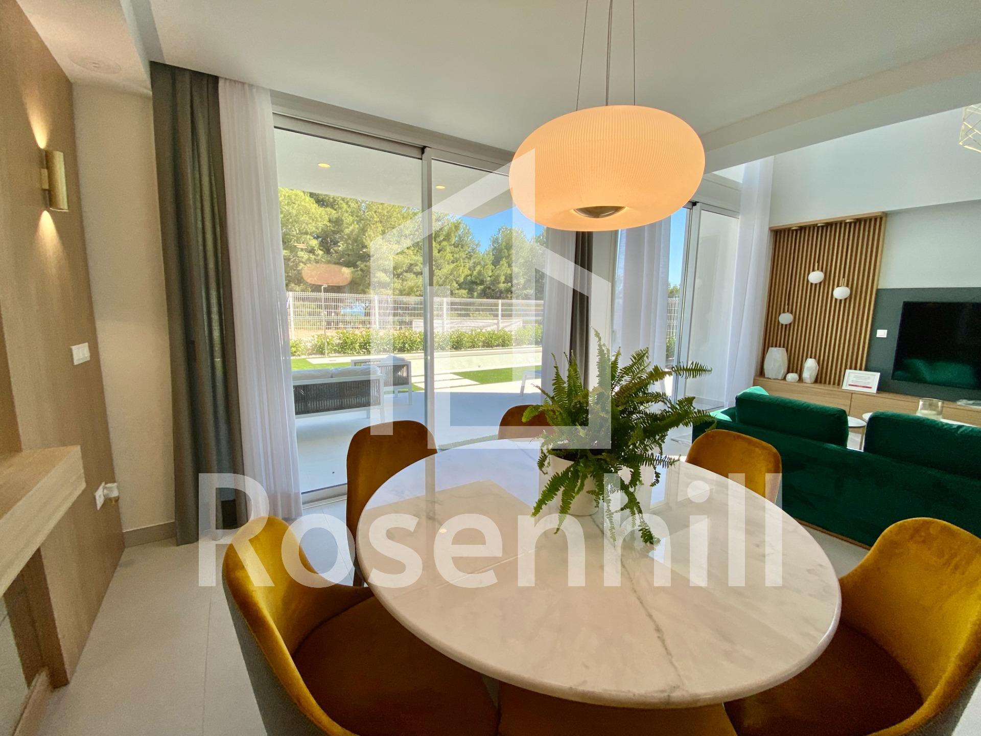 EXCLUSIVITY IN A NATURAL ENVIRONMENT NEXT TO THE MEDITERRANEAN SEA !!! Minimalist design villas in a natural space, combining elegance and comfort in an exclusive natural environment that respects the perfect balance between sea and nature. Promotion of independent villas located in the privileged environment of Sierra Cortina in Finestrat next to Benidorm. This set of single-family villas located on private plots allows you to enjoy life abroad with privacy. The integrated living room and kitchen together with the 3 bedrooms and 3 bathrooms offer feelings of spaciousness. The outdoor area with a plot of more than 400 meters includes large terraces and a private pool, to live the Mediterranean lifestyle to the fullest while enjoying the sun, light and nature. Altea, Calpe, Villajoyosa, Moraira and Benidorm are just some of the most emblematic and visited towns on the Mediterranean Costa Blanca that are very close to Finestrat, the location of this development of villas. Benidorm’s famous beaches are less than 3 km away. The province of Alicante has modern communications that connect with the main highways, highways, the high-speed train and the tram. In addition, the Alicante-Elche International Airport connects with more than 110 destinations. The location of these villas with direct access to the main communication routes and 5 minutes from the Finestrat Shopping Center next to Benidorm make it a perfect place to enjoy all the services when you need them without giving up tranquility.