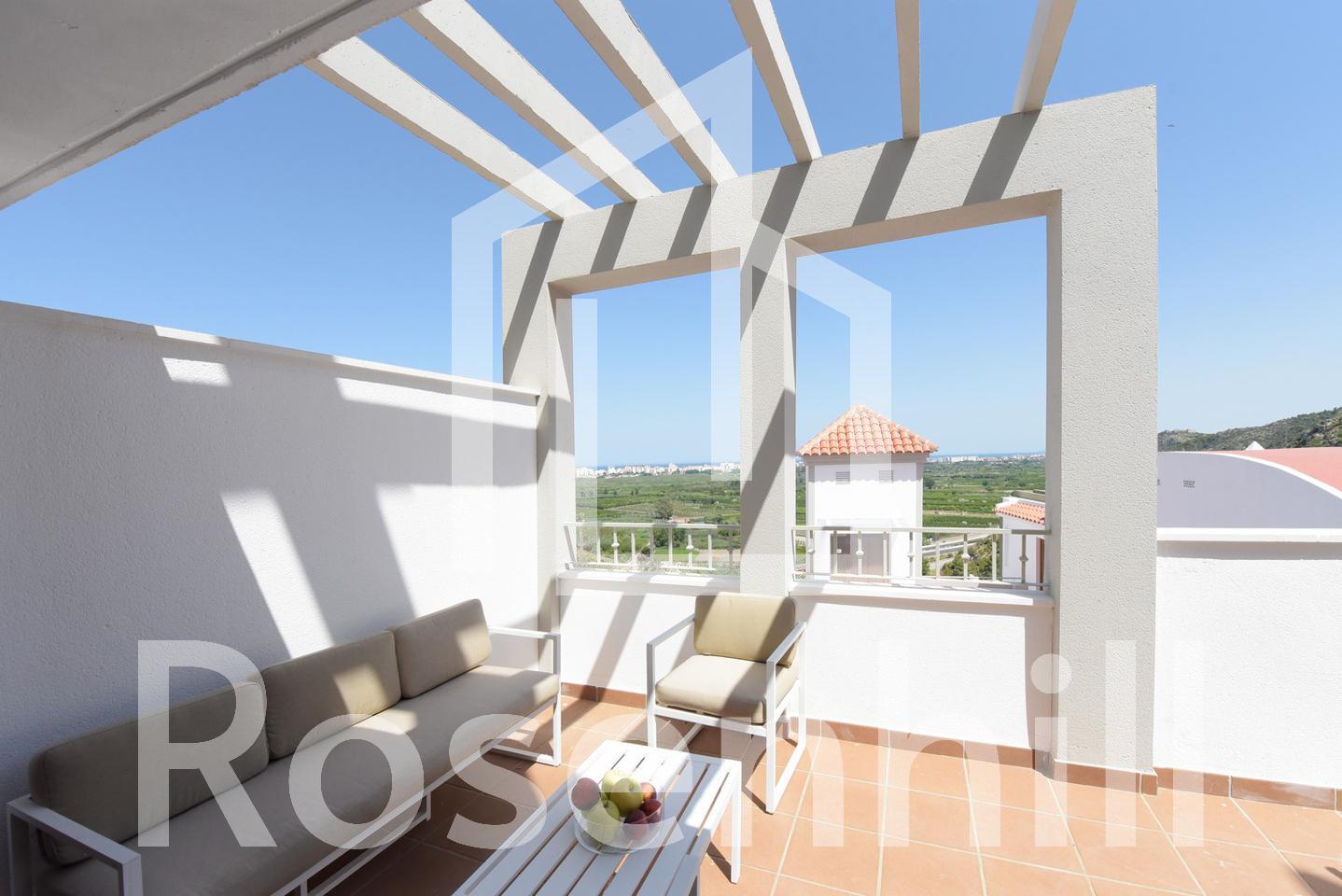 FLAT WITH BEAUTIFUL VIEWS 1 bedroom flat, with garage and lift to the flat, storage room and white goods included (equipped with electric hob, electric oven, extractor hood, sink and electric boiler) in the price. Large terraces from where you can enjoy views of the natural park, orange groves, mountains and the sea. The residential has a social club, communal swimming pool, gymnasium, paddle tennis courts, sports facilities and outdoor fitness.