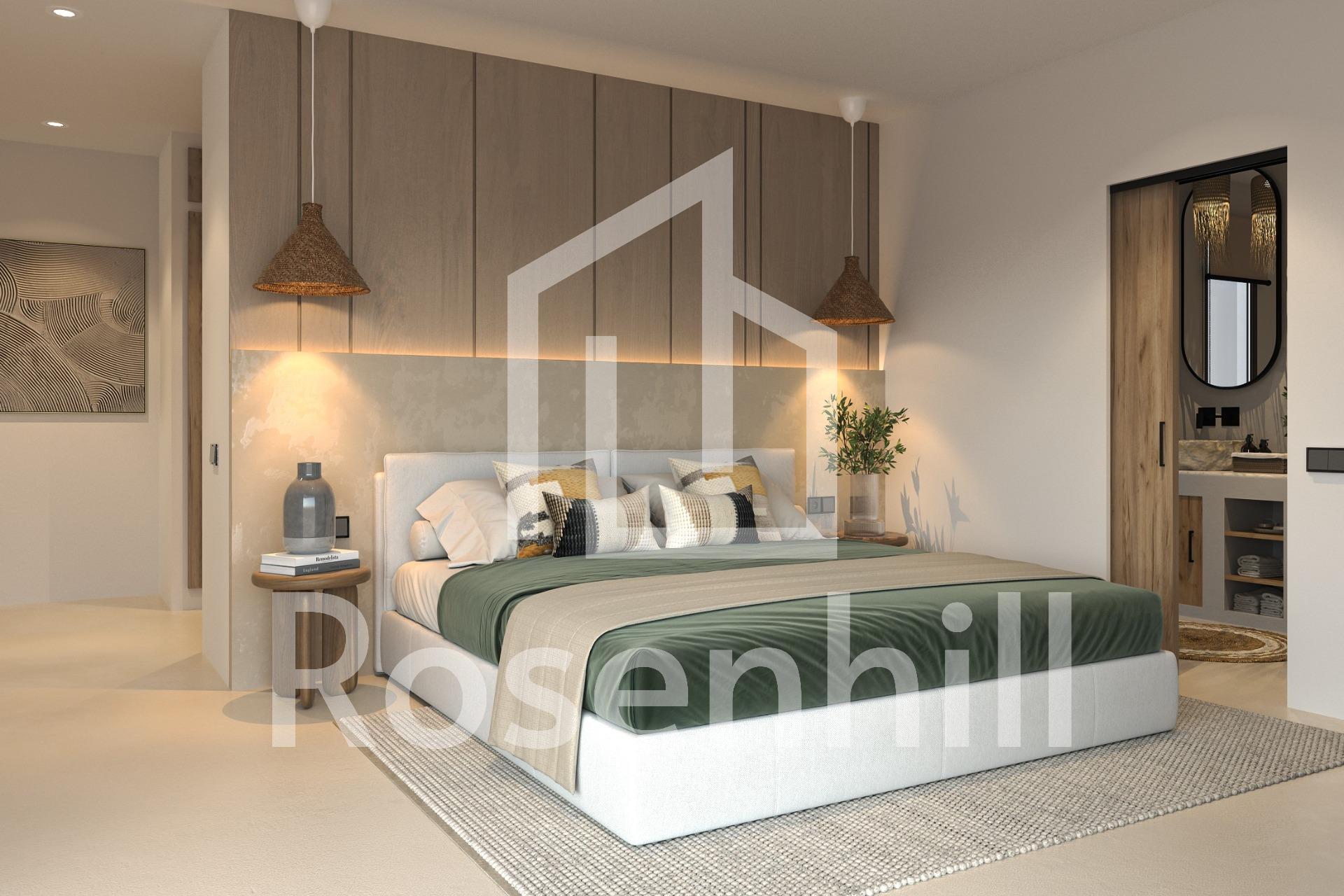 Ibiza Style New Build Villa under construction in Javea Contemporary Mediterranean Living Near El Arenal Beach This Ibiza style new build villa in Javea is currently under construction with a short delivery time. Located just 3 km from El Arenal Beach, one of the most popular and vibrant areas of the Costa Blanca North, this property blends Mediterranean charm with modern elegance. Javea is renowned for its crystal clear coves, natural parks, marinas, traditional gastronomy and relaxed coastal lifestyle, making it an exceptional place to live or invest. Elegant Architecture Inspired by Ibiza and the Mediterranean The villa stands out with its white façade, rounded corners and hand carved Montgó stone accents that add warmth and authenticity. High quality finishes such as microcement flooring, double glazed aluminium windows in rust colours and black taps in the bathrooms contribute to a refined and contemporary atmosphere. All bedrooms are equipped with electric exterior blinds to ensure comfort and privacy. Spacious Interiors Designed for Comfort Inside, the villa offers a bright and spacious living dining area with direct access to the outdoor terraces and south facing swimming pool, allowing you to enjoy sunlight throughout the day. The modern open plan kitchen comes fully equipped and is complemented by an adjoining laundry room and a guest toilet. The sleeping area includes three double bedrooms, each with its own en suite bathroom. The master suite features a dressing room for added convenience and style. Additional Independent Apartment and Outdoor Living On the lower floor, the villa includes a separate 37 m² apartment with a bedroom and a bathroom, ideal for guests or extended family. The outdoor areas are designed for year round living, featuring large sunny terraces, mountain views and two covered parking spaces under a stylish pergola. The villa is equipped with underfloor heating and ducted air conditioning, ensuring maximum comfort in all seasons. From the property you can admire the surrounding green mountains and the iconic Montgó Mountain, one of Javea’s most recognisable landmarks. Prime Location in Javea Key distances from the villa: El Arenal Beach 3 km Javea Port and Marina 7 km Javea Golf Club 3 km Alicante Airport 100 km Valencia Airport 125 km Your Mediterranean Home Awaits This villa is the perfect choice for those seeking a luxury residence, a holiday home or a secure investment on the Costa Blanca. Contact us today to arrange a visit and discover this exceptional property in Javea.