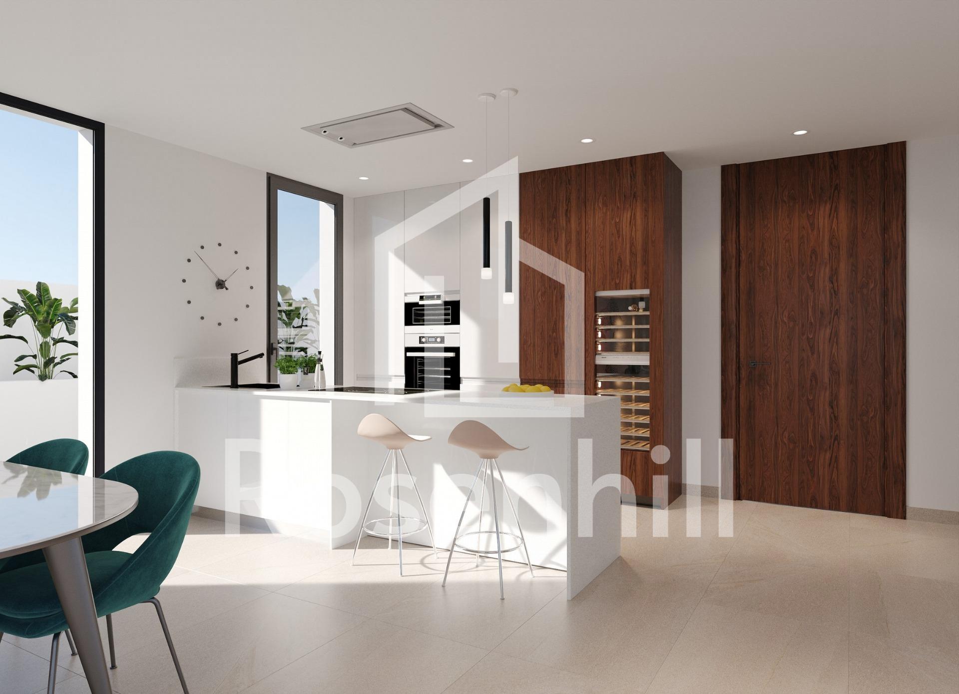 Luxurious New-Build Villas in Sierra Cortina, Finestrat Explore the elegant new development of independent villas in the exclusive neighborhood of Sierra Cortina, Finestrat. Nestled in a picturesque area close to Benidorm, these premium properties offer modern living spaces and top-notch amenities. With easy access to the Mediterranean coast, these villas are ideal for anyone seeking a blend of luxury, comfort, and convenience. Just 5 km from the vibrant city center of Benidorm, this development also places you within a short distance of major points of interest. Spacious and Modern Villas with 3 or 4 Bedrooms Each villa in this new development features 3 or 4 bedrooms and 3 luxurious bathrooms, creating ample space for family and guests alike. The heart of these homes is the open-plan living and dining area, connected to a sleek, integrated kitchen. This versatile space is perfect for family gatherings and entertaining, providing a cozy yet contemporary ambiance. Some units also include a basement area that can be customized into a gym, home cinema, or recreational area, offering endless possibilities for personalization. Advanced Home Automation and Energy-Efficient Design These villas are designed with the latest in smart home technology. Fully automated with a state-of-the-art home automation system, residents can control lighting, blinds, and air conditioning with ease. Safety is also a priority, with integrated flood and fire detection systems, a video intercom, and remote security features. To ensure energy efficiency, the villas make use of natural light, cross ventilation, wind protection, and water conservation features, reducing energy costs while maintaining a comfortable living environment. Private Outdoor Spaces with Pool and Landscaped Gardens Enjoy the Mediterranean climate with a private garden that serves as a personal oasis. Each villa features a private swimming pool, ideal for cooling off on warm days or hosting summer gatherings. The landscaped garden is adorned with natural grass and trees, supported by an automatic irrigation system, and has tasteful exterior lighting to create a relaxing atmosphere after sunset. Prime Location Near Benidorm and Key Attractions These villas in Sierra Cortina offer proximity to key destinations. The lively beaches of Benidorm are just 4 km away, and Alicante-Elche Airport can be reached in approximately 50 km. Golf enthusiasts will find several prestigious courses nearby, such as Villaitana Golf, just 3 km away. For shopping and dining, La Marina Shopping Center is within a 2 km drive, providing access to a variety of retail, dining, and entertainment options. Luxury Living in Sierra Cortina – Reserve Your Dream Home Today Discover a blend of elegance, comfort, and advanced technology in these new-build villas at Sierra Cortina. Don’t miss the chance to own a home in one of the most sought-after locations on the Costa Blanca. Contact us today to arrange a visit and experience the lifestyle that awaits you.