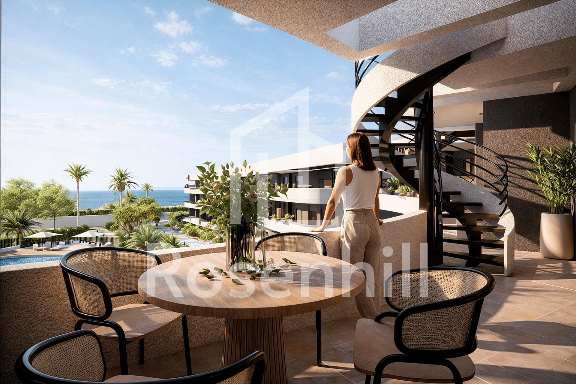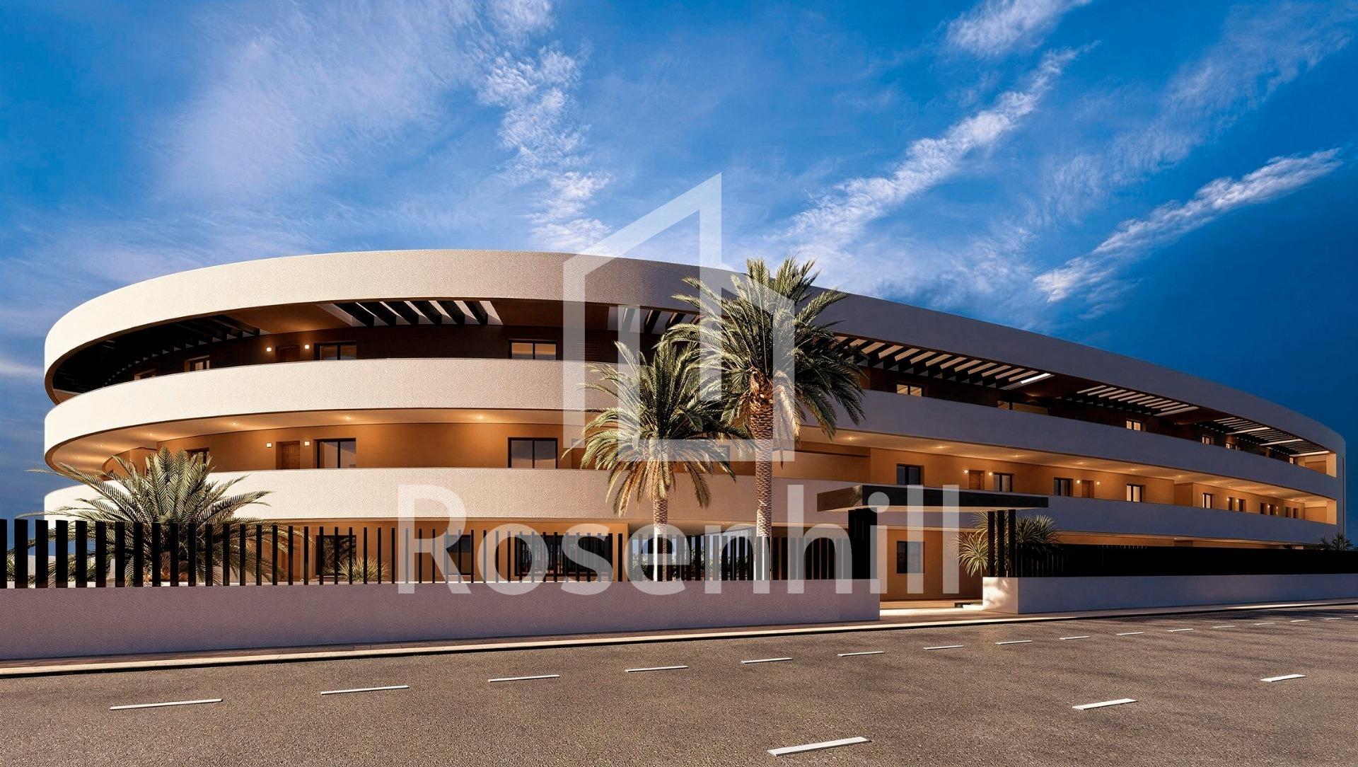 Luxury Golf Front Apartments Near the Sea in Los Alcazares Costa Calida Exclusive New Build Apartments in La Serena Golf Discover this exceptional new residential development located frontline to La Serena Golf in Los Alcazares, just 700 meters from the Mar Menor beaches. This modern complex offers 28 luxury apartments designed to provide maximum comfort, natural light and a high quality Mediterranean lifestyle. The building features a distinctive J shaped design with a curved facade, carefully oriented to enhance sunlight exposure and open views over the golf course and surrounding landscape. Its prime location combines the tranquility of a golf environment with close proximity to the sea and town center. Modern Apartments with Spacious Terraces and Solariums The development offers stylish two and three bedroom apartments, all with two bathrooms including an en suite. Each property has been designed to maximize outdoor living, a key element of life on the Costa Calida. Ground and first floor apartments feature large private terraces, perfect for outdoor dining and relaxation. Top floor properties benefit from generous private solariums, complete with a summer kitchen, offering an ideal space to enjoy the sun all year round. Elegant Interiors and High Quality Finishes Inside, the apartments combine modern design with functional layouts. Open plan living areas connect seamlessly with outdoor spaces, creating bright and comfortable environments. The kitchens come fully equipped with appliances, while bathrooms are delivered complete with vanity units, mirrors and shower screens. Additional features include a reinforced security entrance door, aerothermal system for hot water, LED lighting package and pre installation for ducted air conditioning. Communal Areas Designed for Relaxation Residents can enjoy a large communal swimming pool surrounded by beautifully landscaped gardens, providing a peaceful setting to relax and socialize under the Mediterranean sun. Each apartment also includes a private parking space and storage room in the underground garage, ensuring convenience and security. Prime Location Close to Golf, Beach and Services This development is ideally located just 700 meters from the beach and approximately 1.5 km from the center of Los Alcazares, where you will find a wide range of restaurants, shops, cafes and essential services. Los Alcazares is a popular coastal town known for its relaxed atmosphere, long promenades and warm shallow waters. Key distances include Murcia International Airport 35 km, Alicante Airport 95 km, La Serena Golf at your doorstep, Roda Golf 4 km and Cartagena city 25 km. Ideal Investment or Holiday Home on the Costa Calida These golf front apartments offer an excellent opportunity to own a modern property in a privileged location close to both the sea and golf. Contact us today to receive more information or to arrange a viewing and secure your new home in Los Alcazares.