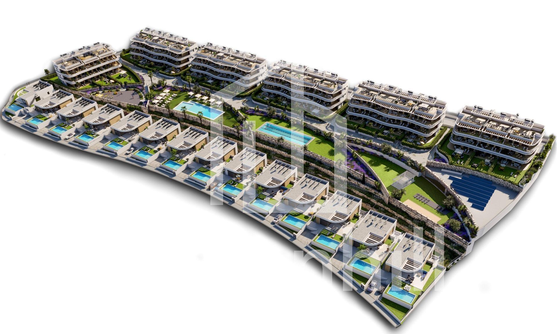 Luxury New Build Apartments and Villas with Panoramic Sea Views in Finestrat Exclusive Mediterranean Living near Benidorm Discover an exceptional new luxury residential development offering apartments, most of them with seaviews, and private villas in the prestigious area of Finestrat, just minutes from the vibrant city of Benidorm and its golden beaches. Nestled between the mountains and the Mediterranean Sea, this privileged location provides a peaceful environment with quick access to fine dining, premium shopping, international schools, golf courses and marina services. Alicante Airport is approximately 55 km away, while the sandy beaches of Benidorm and the charming old town are just 3 km and 4 km away respectively. Modern Architecture and Premium Design Designed for those seeking elegance, modern comfort and a high quality Mediterranean lifestyle, this exclusive resort features innovative architecture and spacious terraces that offer unobstructed sea views and sun exposure throughout the year. Each property is built to the highest standards with generous interiors, floor to ceiling windows and seamless indoor outdoor integration. Choose from 2 and 3 bedroom luxury apartments available in ground floor units with private gardens, middle floors with large sea view terraces, or stunning penthouses with private solariums. Exclusive 3 bedroom villas are also available, featuring single level layouts, private pools and basements, ideal for permanent living or high yield investment. Premium Finishes and Advanced Smart Home Technology Homes include fully fitted and equipped kitchens, ducted air conditioning, furnished bathrooms, shower screens and built in wardrobes. All units come with a smart alarm system, app controlled blinds and lighting, with upgrade options available for additional home automation features. Private parking and storage rooms are included. Resort Style Amenities Enjoy a sophisticated lifestyle with exceptional communal facilities including • Recreational pools and sunbathing areas • 25 meter swimming pool • Fully equipped gym and multipurpose area • Outdoor fitness and pilates space • Petanque court • Childrens play area • Extensive landscaped gardens with native plants • Solar energy system for resort consumption Sustainable and Energy Efficient Living Built with high efficiency materials, this development offers top energy performance with an A energy rating and solar power solutions to reduce environmental impact. Prime Location and Easy Access • Benidorm beaches 3 km • La Marina Shopping Center 1 km • Puig Campana Golf 3 km • Benidorm Old Town and leisure area 4 km • Alicante International Airport 55 km • Direct access to AP7 motorway Your Ideal Investment and Lifestyle Choice Experience luxury, comfort and nature in perfect harmony. Contact us today to schedule a visit or receive more information about this exclusive resort in Finestrat.