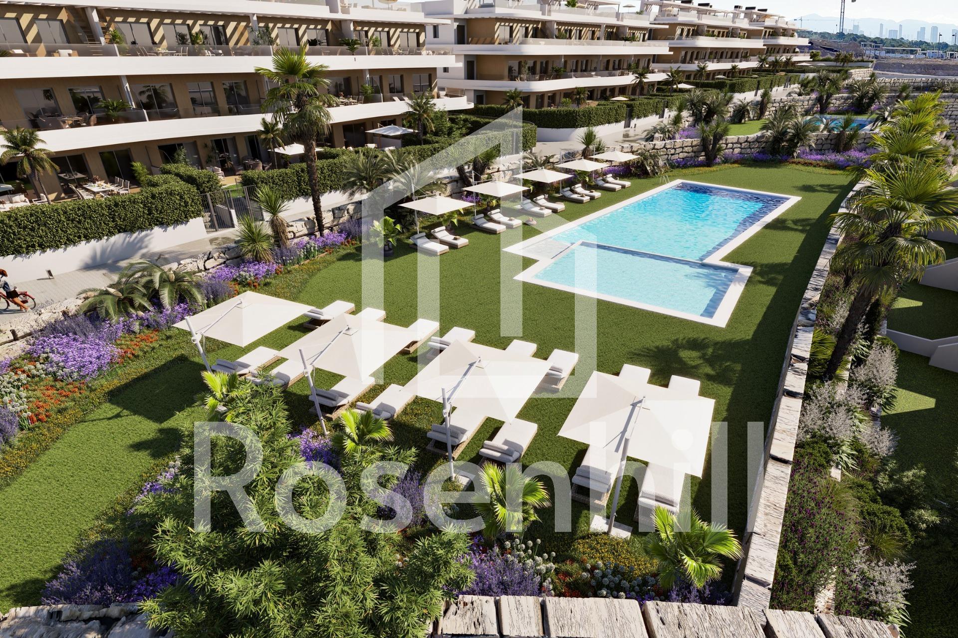 Luxury New Build Apartments and Villas with Panoramic Sea Views in Finestrat Exclusive Mediterranean Living near Benidorm Discover an exceptional new luxury residential development offering apartments, most of them with seaviews, and private villas in the prestigious area of Finestrat, just minutes from the vibrant city of Benidorm and its golden beaches. Nestled between the mountains and the Mediterranean Sea, this privileged location provides a peaceful environment with quick access to fine dining, premium shopping, international schools, golf courses and marina services. Alicante Airport is approximately 55 km away, while the sandy beaches of Benidorm and the charming old town are just 3 km and 4 km away respectively. Modern Architecture and Premium Design Designed for those seeking elegance, modern comfort and a high quality Mediterranean lifestyle, this exclusive resort features innovative architecture and spacious terraces that offer unobstructed sea views and sun exposure throughout the year. Each property is built to the highest standards with generous interiors, floor to ceiling windows and seamless indoor outdoor integration. Choose from 2 and 3 bedroom luxury apartments available in ground floor units with private gardens, middle floors with large sea view terraces, or stunning penthouses with private solariums. Exclusive 3 bedroom villas are also available, featuring single level layouts, private pools and basements, ideal for permanent living or high yield investment. Premium Finishes and Advanced Smart Home Technology Homes include fully fitted and equipped kitchens, ducted air conditioning, furnished bathrooms, shower screens and built in wardrobes. All units come with a smart alarm system, app controlled blinds and lighting, with upgrade options available for additional home automation features. Private parking and storage rooms are included. Resort Style Amenities Enjoy a sophisticated lifestyle with exceptional communal facilities including • Recreational pools and sunbathing areas • 25 meter swimming pool • Fully equipped gym and multipurpose area • Outdoor fitness and pilates space • Petanque court • Childrens play area • Extensive landscaped gardens with native plants • Solar energy system for resort consumption Sustainable and Energy Efficient Living Built with high efficiency materials, this development offers top energy performance with an A energy rating and solar power solutions to reduce environmental impact. Prime Location and Easy Access • Benidorm beaches 3 km • La Marina Shopping Center 1 km • Puig Campana Golf 3 km • Benidorm Old Town and leisure area 4 km • Alicante International Airport 55 km • Direct access to AP7 motorway Your Ideal Investment and Lifestyle Choice Experience luxury, comfort and nature in perfect harmony. Contact us today to schedule a visit or receive more information about this exclusive resort in Finestrat.