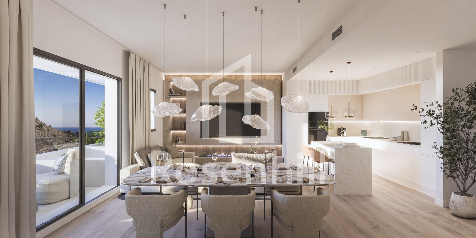 Luxury Resort in Villajoyosa – A Seaside Paradise Discover a Unique Residential Complex in Playa del Torres Located less than a 5-minute walk from the serene Playa del Torres in Villajoyosa, this exclusive new development offers 164 modern apartments and penthouses with 1 to 3 bedrooms. Designed to provide the ultimate lifestyle, the community combines luxury, relaxation, and unparalleled amenities in a tranquil Mediterranean setting. Exceptional Amenities for All Residents The heart of this development is the Roof Top, situated on the rooftop of Block 2. This thoughtfully designed space includes a stunning pool with panoramic views, Chill-out areas, a barbecue zone, a multi-use area, and a gazebo, perfect for socializing or unwinding. Indoor social lounge, ideal for gourmet dining with friends or as a coworking space. For water lovers, the complex features: Tropical-style pools with beach-style access. A heated swimming lane pool, a children’s pool, and a heated jacuzzi. Fitness enthusiasts can enjoy: Indoor and outdoor gyms, complete with a calisthenics circuit. A putting green and mini golf for leisure activities. Modern Homes with Premium Features Each apartment is equipped with: A fully fitted kitchen with high-quality appliances, including a refrigerator, microwave, oven, dishwasher, and an integrated washer/dryer. Energy-efficient aerothermal systems for hot water and air conditioning. Radiant floor heating in bathrooms. High-quality PVC windows with thermal insulation and double glazing. Private parking and storage space for added convenience. The building boasts an A energy rating, ensuring maximum efficiency and sustainability. Perfect Location in Villajoyosa Nestled in Playa del Torres, this complex offers a peaceful retreat surrounded by natural beauty. The beach’s crystal-clear waters and turquoise hues provide an idyllic backdrop for relaxation. The development is conveniently located: 2 km from Villajoyosa’s charming town center. 10 km from Benidorm, with its vibrant nightlife and shopping. 30 minutes by car to Alicante Airport. Villajoyosa, known for its colorful houses and rich history, remains an authentic Mediterranean gem. Recently recognized as the “Best Secret Destination in Europe 2024” by European Best Destinations, this town blends tradition, natural beauty, and tranquility. Your Dream Home Awaits in Playa del Torres Experience the best of modern living in a natural paradise. With its prime location, luxurious amenities, and contemporary design, this development is perfect for those seeking a home by the sea. Contact us today to schedule a visit and make this stunning property yours!