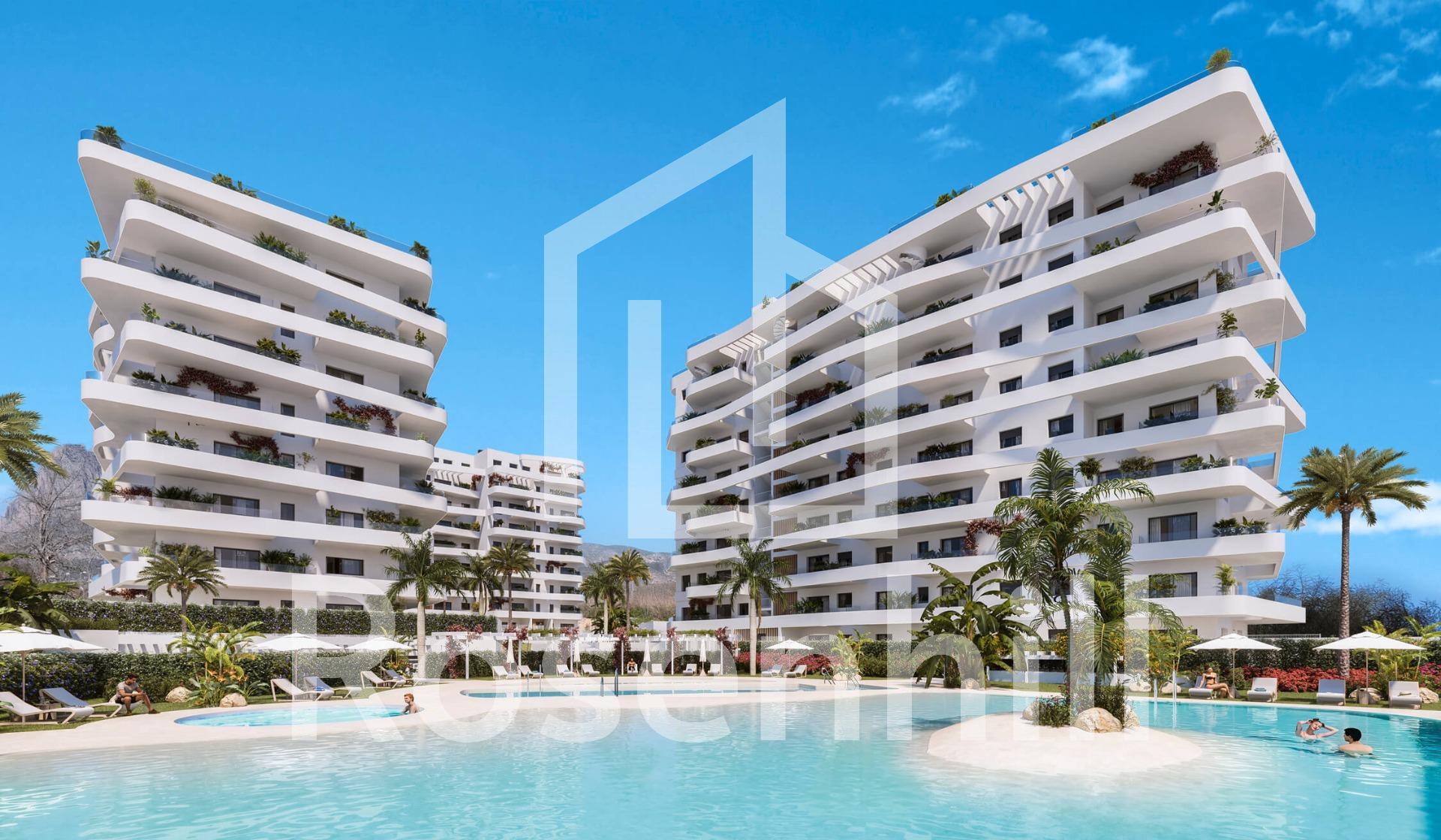 Luxury Resort in Villajoyosa – A Seaside Paradise Discover a Unique Residential Complex in Playa del Torres Located less than a 5-minute walk from the serene Playa del Torres in Villajoyosa, this exclusive new development offers 164 modern apartments and penthouses with 1 to 3 bedrooms. Designed to provide the ultimate lifestyle, the community combines luxury, relaxation, and unparalleled amenities in a tranquil Mediterranean setting. Exceptional Amenities for All Residents The heart of this development is the Roof Top, situated on the rooftop of Block 2. This thoughtfully designed space includes a stunning pool with panoramic views, Chill-out areas, a barbecue zone, a multi-use area, and a gazebo, perfect for socializing or unwinding. Indoor social lounge, ideal for gourmet dining with friends or as a coworking space. For water lovers, the complex features: Tropical-style pools with beach-style access. A heated swimming lane pool, a children’s pool, and a heated jacuzzi. Fitness enthusiasts can enjoy: Indoor and outdoor gyms, complete with a calisthenics circuit. A putting green and mini golf for leisure activities. Modern Homes with Premium Features Each apartment is equipped with: A fully fitted kitchen with high-quality appliances, including a refrigerator, microwave, oven, dishwasher, and an integrated washer/dryer. Energy-efficient aerothermal systems for hot water and air conditioning. Radiant floor heating in bathrooms. High-quality PVC windows with thermal insulation and double glazing. Private parking and storage space for added convenience. The building boasts an A energy rating, ensuring maximum efficiency and sustainability. Perfect Location in Villajoyosa Nestled in Playa del Torres, this complex offers a peaceful retreat surrounded by natural beauty. The beach’s crystal-clear waters and turquoise hues provide an idyllic backdrop for relaxation. The development is conveniently located: 2 km from Villajoyosa’s charming town center. 10 km from Benidorm, with its vibrant nightlife and shopping. 30 minutes by car to Alicante Airport. Villajoyosa, known for its colorful houses and rich history, remains an authentic Mediterranean gem. Recently recognized as the “Best Secret Destination in Europe 2024” by European Best Destinations, this town blends tradition, natural beauty, and tranquility. Your Dream Home Awaits in Playa del Torres Experience the best of modern living in a natural paradise. With its prime location, luxurious amenities, and contemporary design, this development is perfect for those seeking a home by the sea. Contact us today to schedule a visit and make this stunning property yours!