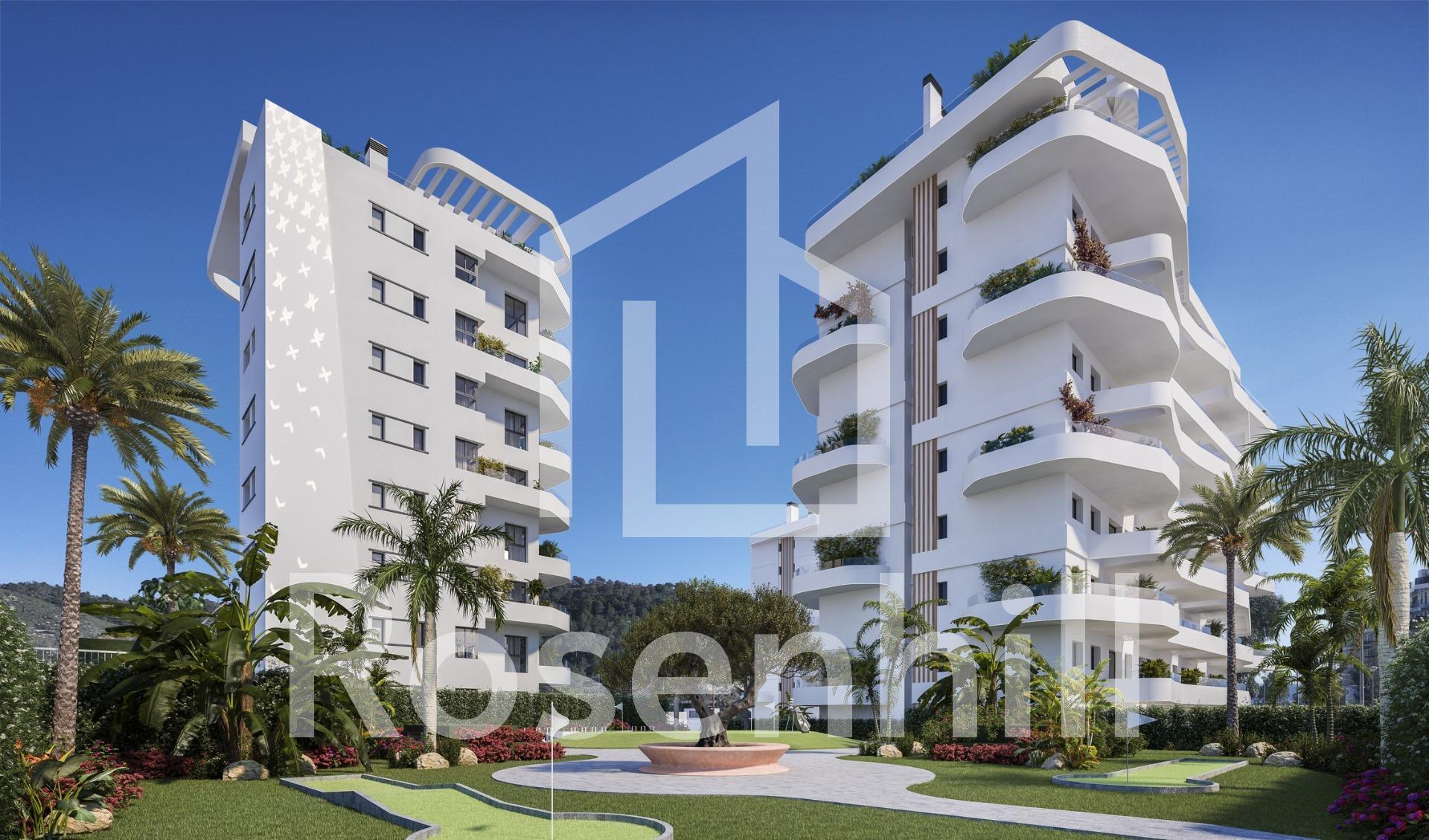 Luxury Resort in Villajoyosa – A Seaside Paradise Discover a Unique Residential Complex in Playa del Torres Located less than a 5-minute walk from the serene Playa del Torres in Villajoyosa, this exclusive new development offers 164 modern apartments and penthouses with 1 to 3 bedrooms. Designed to provide the ultimate lifestyle, the community combines luxury, relaxation, and unparalleled amenities in a tranquil Mediterranean setting. Exceptional Amenities for All Residents The heart of this development is the Roof Top, situated on the rooftop of Block 2. This thoughtfully designed space includes a stunning pool with panoramic views, Chill-out areas, a barbecue zone, a multi-use area, and a gazebo, perfect for socializing or unwinding. Indoor social lounge, ideal for gourmet dining with friends or as a coworking space. For water lovers, the complex features: Tropical-style pools with beach-style access. A heated swimming lane pool, a children’s pool, and a heated jacuzzi. Fitness enthusiasts can enjoy: Indoor and outdoor gyms, complete with a calisthenics circuit. A putting green and mini golf for leisure activities. Modern Homes with Premium Features Each apartment is equipped with: A fully fitted kitchen with high-quality appliances, including a refrigerator, microwave, oven, dishwasher, and an integrated washer/dryer. Energy-efficient aerothermal systems for hot water and air conditioning. Radiant floor heating in bathrooms. High-quality PVC windows with thermal insulation and double glazing. Private parking and storage space for added convenience. The building boasts an A energy rating, ensuring maximum efficiency and sustainability. Perfect Location in Villajoyosa Nestled in Playa del Torres, this complex offers a peaceful retreat surrounded by natural beauty. The beach’s crystal-clear waters and turquoise hues provide an idyllic backdrop for relaxation. The development is conveniently located: 2 km from Villajoyosa’s charming town center. 10 km from Benidorm, with its vibrant nightlife and shopping. 30 minutes by car to Alicante Airport. Villajoyosa, known for its colorful houses and rich history, remains an authentic Mediterranean gem. Recently recognized as the “Best Secret Destination in Europe 2024” by European Best Destinations, this town blends tradition, natural beauty, and tranquility. Your Dream Home Awaits in Playa del Torres Experience the best of modern living in a natural paradise. With its prime location, luxurious amenities, and contemporary design, this development is perfect for those seeking a home by the sea. Contact us today to schedule a visit and make this stunning property yours!