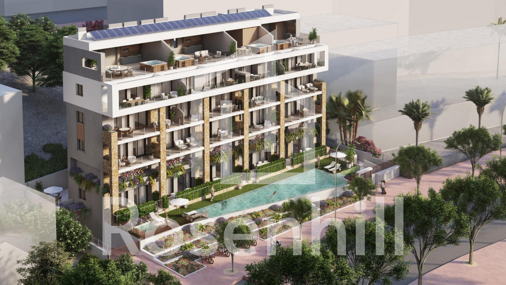 Luxury Seafront Apartments in Villajoyosa with Panoramic Mediterranean Views Exclusive Seaside Living on the Costa Blanca Experience the Mediterranean lifestyle at its finest in this new beachfront residential complex in Villajoyosa, a charming coastal town known for its colorful houses, vibrant local culture, and crystal-clear waters. Located just a few meters from Playa Mallaeta, these homes offer stunning sea views and immediate access to the promenade and nearby golden sand beaches such as Playa de Villajoyosa, Cala Puntes del Moro, and Playa Paraíso, all perfect for swimming, diving, or enjoying a sunny day by the sea. Villajoyosa is conveniently located 10 minutes from Benidorm, 30 minutes from Alicante Airport (45 km), and well connected by tram to the Alicante high speed train station, making it an ideal location for both permanent residence and holiday living. Elegant Mediterranean Design and Premium Quality This boutique development offers 1- and 2-bedroom apartments with large terraces, private gardens on ground floors, or solariums in the penthouses. Each home is designed with a modern Mediterranean style, combining natural materials, soft colors, and clean architectural lines that blend seamlessly with the coastal surroundings. High-quality finishes include: Fully fitted kitchens with integrated appliances Air conditioning (hot/cold) installed Bathrooms with vanity unit, mirror, and shower screen Personalization options for interior finishes Private parking space and storage room included in every home Resort-Style Amenities with Breathtaking Views Residents can enjoy exceptional communal areas that elevate the living experience. The complex features an infinity pool overlooking the Mediterranean, a heated jacuzzi, outdoor gym, and beautifully landscaped gardens and chill-out areas. Every detail has been designed to create a serene and luxurious seaside retreat. The Authentic Essence of Villajoyosa Villajoyosa, also known as “La Vila”, is a picturesque fishing village filled with history, charm, and flavor. Its old town of cobbled streets and colorful houses offers a truly authentic Mediterranean atmosphere, complemented by an excellent gastronomic scene and the famous local chocolate tradition. Your Perfect Coastal Home and Investment Opportunity Combining location, quality, and exclusivity, this seafront development in Villajoyosa offers an exceptional lifestyle and high investment potential. Contact us today to discover your new home by the sea on the Costa Blanca.