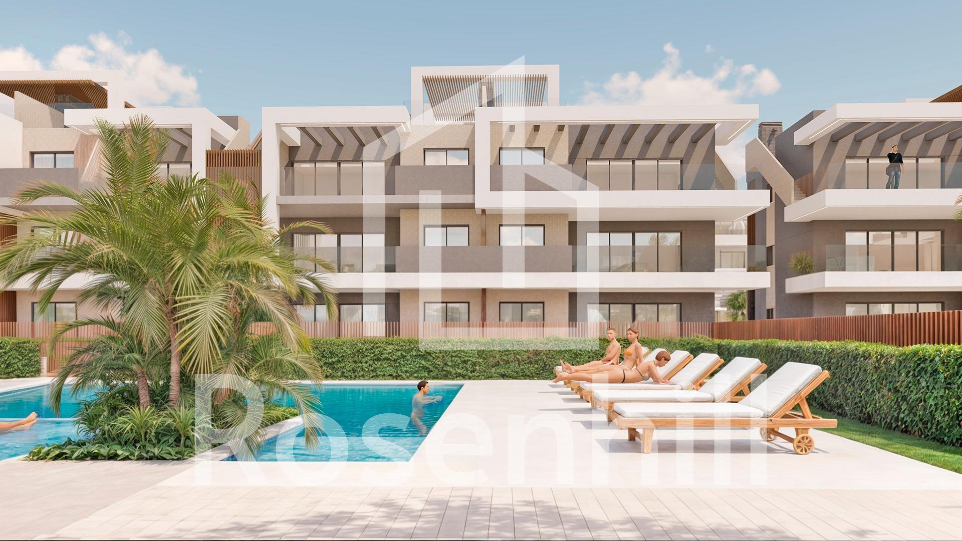Luxury Tourist Apartments Just 150m from Las Higuericas Beach – Torre de la Horadada Exclusive New Development with Rental License Included Welcome to a new residential complex in Torre de la Horadada, just 150 meters from the golden sands of Las Higuericas Beach. This modern project offers 48 fully furnished tourist apartments, all delivered with a short-term rental license, making it an ideal investment for holiday rentals or personal enjoyment. Choose from 42 units with 3 bedrooms and 2 bathrooms or 6 units with 2 bedrooms and 2 bathrooms, all thoughtfully designed to maximize comfort, style, and functionality. Layouts Designed for Coastal Living Each property is tailored to meet different lifestyle needs: Ground floor units feature spacious private gardens with views of the communal areas. First-floor apartments offer large terraces, some with partial sea views. Penthouses boast private solariums with sea views and outdoor kitchens, pergolas, jacuzzis, and artificial grass. All homes include a private underground parking space and storage room, with first-phase completion scheduled for summer 2026. Fully Equipped and Move-In Ready These homes come fully equipped for immediate occupancy, including: Complete Mediterranean-style furniture and décor Fully fitted kitchens with appliances Independent utility rooms Underfloor heating throughout Ducted air conditioning (hot/cold) Bed linens and household goods Windows feature electric shutters and Climasun thermal-acoustic glass, while energy-efficient aerothermal systems provide hot water. Resort-Style Communal Areas for Year-Round Enjoyment The development includes extensive communal amenities, such as: Outdoor swimming pool for adults and children Children’s playground Landscaped green areas Wellness area in the basement with heated indoor pool, massage jets, sauna, and a fully equipped gym Every detail has been designed to provide residents and guests with a relaxing and luxurious Mediterranean experience. Prime Location with Easy Access to Top Attractions This unbeatable location offers proximity to the best of the Costa Blanca and Costa Cálida: Las Higuericas Beach – 150 m Lo Romero Golf Course – 10 km Dos Mares Shopping Center – 11 km Port of San Pedro del Pinatar – 8 km Murcia Airport – 30 km Alicante Airport – 65 km Secure Your Coastal Investment Today If you are looking for a holiday home or a rental investment, this is your opportunity to own a premium property near the beach in one of the most sought-after areas. Contact us now to learn more or schedule your visit to Torre de la Horadada!