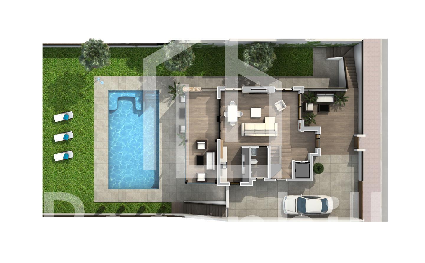 Luxury villa on the first line of the Golf course It has an elevator on all floors of the villa, terraces overlooking the golf course, sports area, sauna, and private pool. It is located in a location with medical services, Swedish school, public schools, playgrounds, 15 minutes from the beaches of Guardamar and 5 minutes from the old town of Rojales.