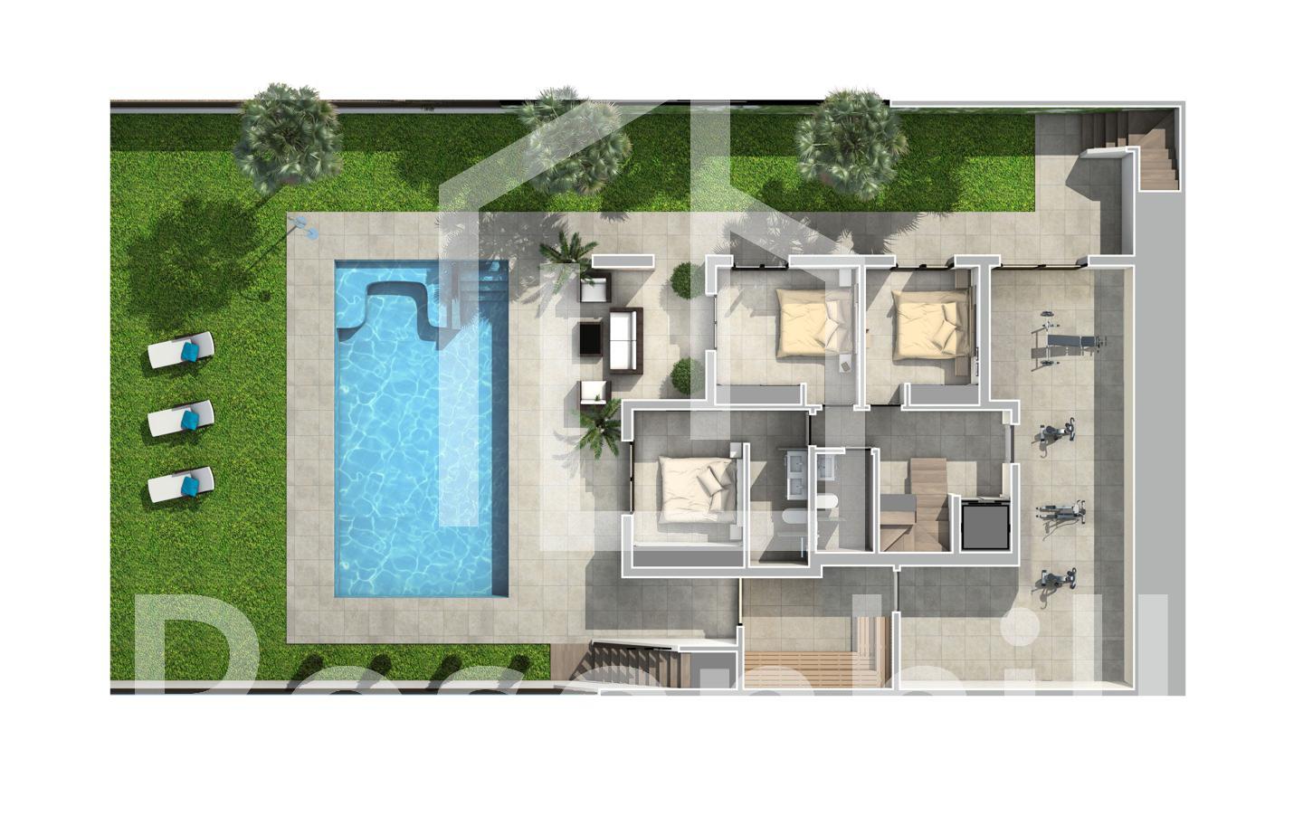 Luxury villa on the first line of the Golf course It has an elevator on all floors of the villa, terraces overlooking the golf course, sports area, sauna, and private pool. It is located in a location with medical services, Swedish school, public schools, playgrounds, 15 minutes from the beaches of Guardamar and 5 minutes from the old town of Rojales.