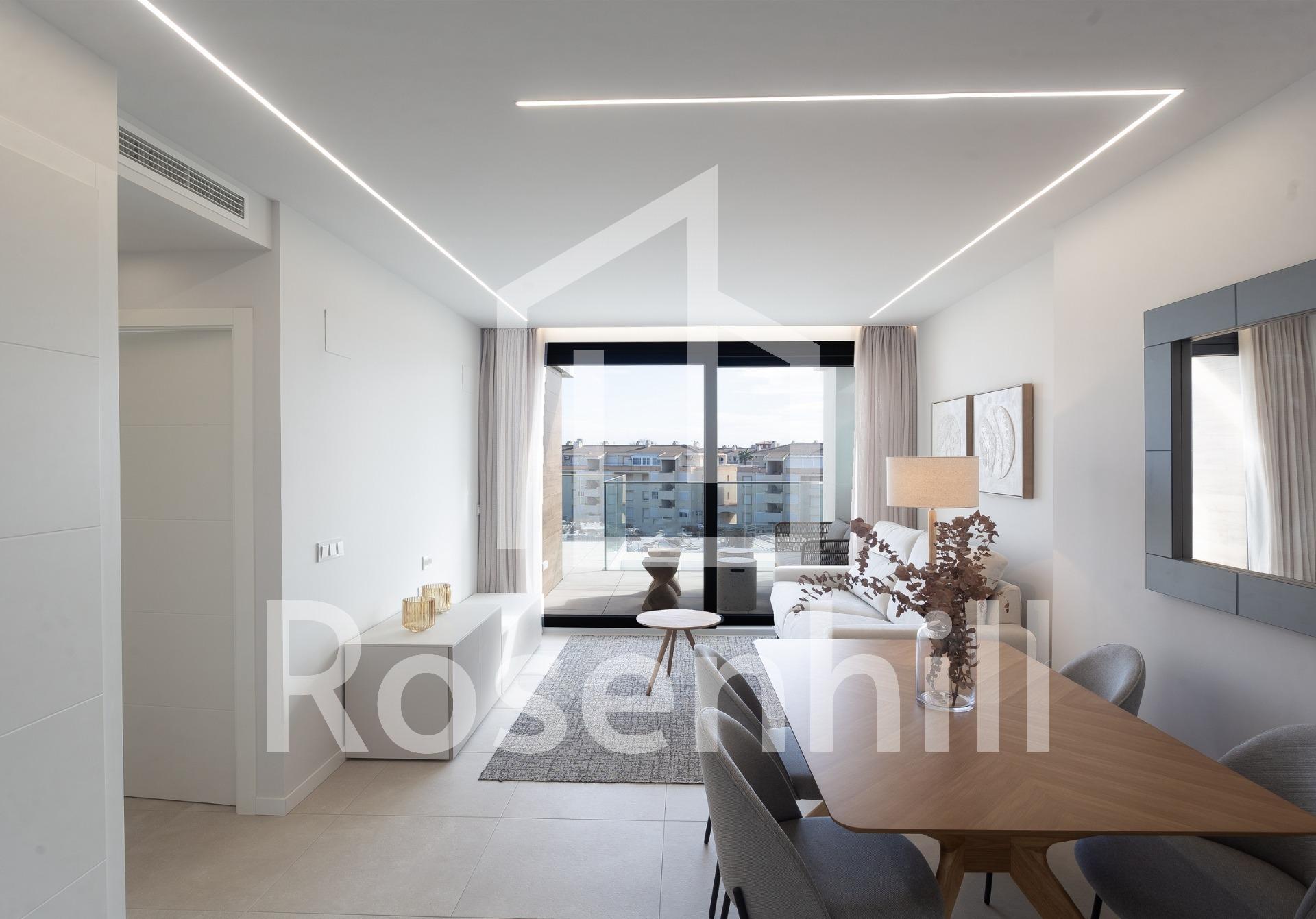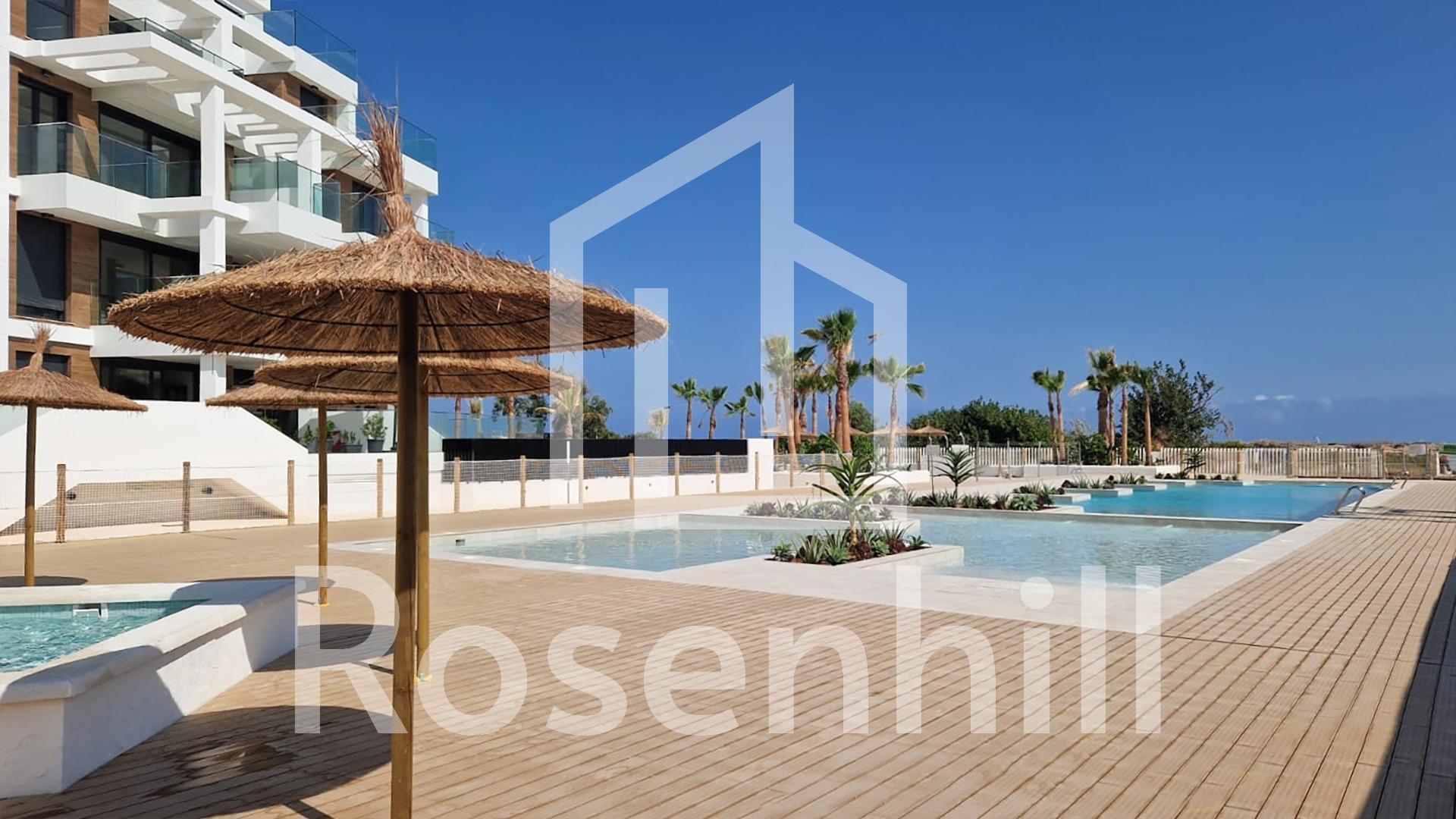 MEDITERRANEAN HOUSING A FEW METERS FROM THE SEA Exclusive complex of Mediterranean construction a few meters from the sea. On the beachfront, in front of L´Estanyo beach (7 km from the town center). Apartments and penthouses with two and three bedrooms, all with sea views. Magnificent common areas with a large garden area and two swimming pools, one for children. In an unbeatable location, in the area known as L´Estanyo that gives its name to its beach, with calm waters, an extensive area of golden sand surrounded by all facilities and services, as well as leisure and restaurant venues.