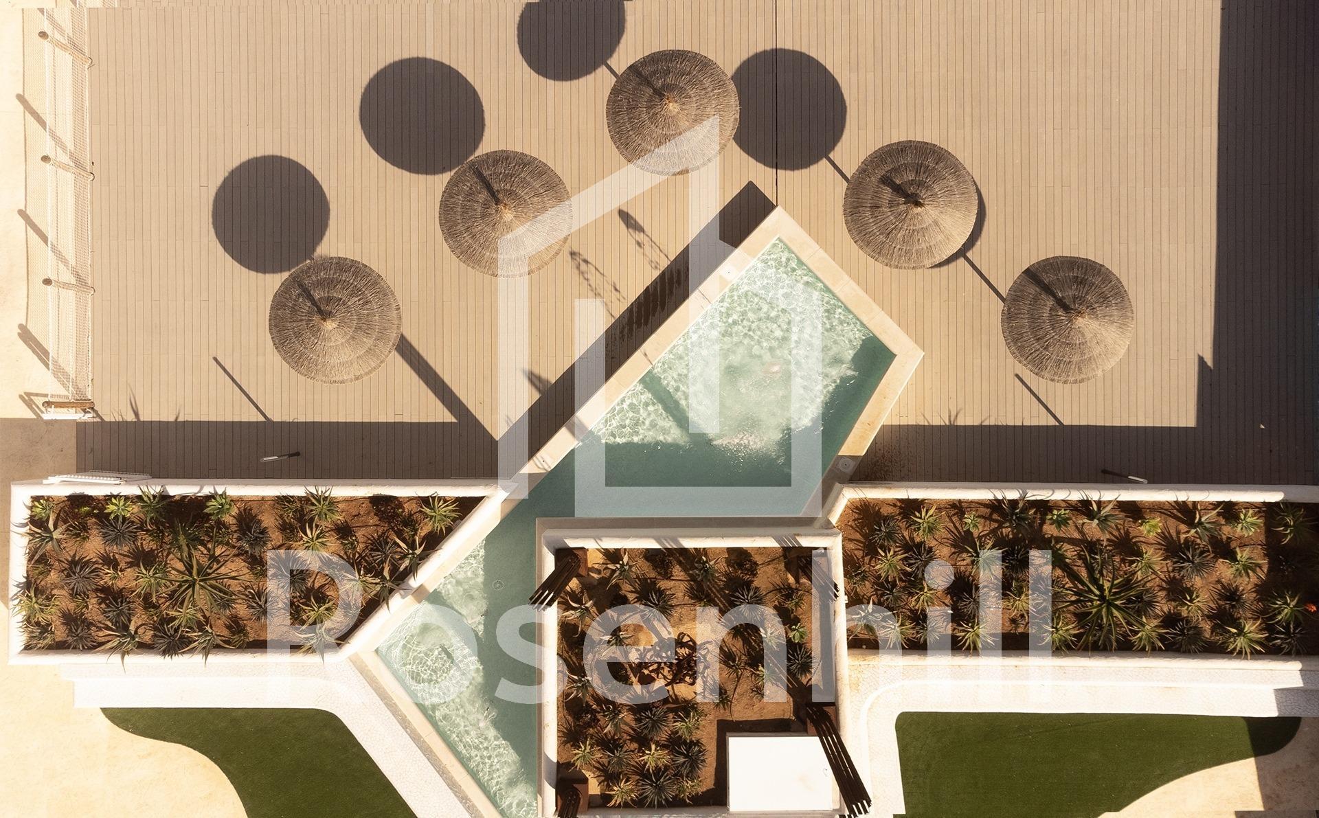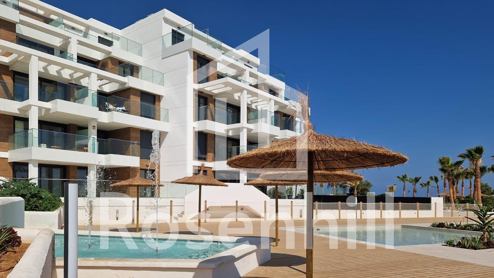 MEDITERRANEAN HOUSING A FEW METERS FROM THE SEA Exclusive complex of Mediterranean construction a few meters from the sea. On the beachfront, in front of L´Estanyo beach (7 km from the town center). Apartments and penthouses with two and three bedrooms, all with sea views. Magnificent common areas with a large garden area and two swimming pools, one for children. In an unbeatable location, in the area known as L´Estanyo that gives its name to its beach, with calm waters, an extensive area of golden sand surrounded by all facilities and services, as well as leisure and restaurant venues.