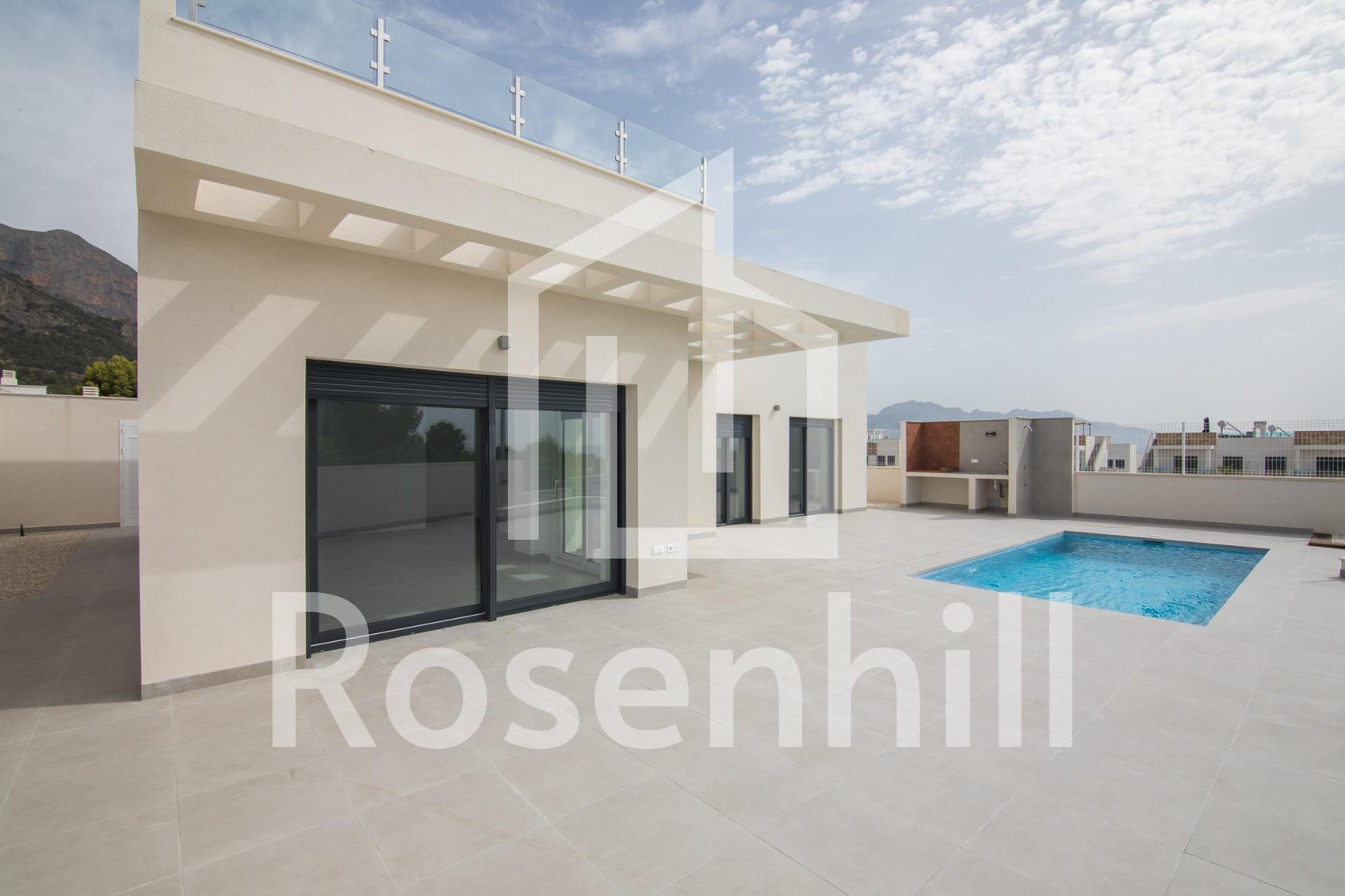 MEDITERRANEAN IN PURE STATE, INSIDE AND OUTSIDE YOUR HOME Halfway between the Sleeping Lion Peak and the Bay of Altea, Polop de la Marina is the municipality that houses this newly built villa. Located in a quiet residential area, surrounded by an incomparable environment, this villa is the perfect place to take a break after a day enjoying the Mediterranean in its purest form. Due to its location, just a few minutes from the best coves and white sand beaches (El Albir, Altea, Calpe and Villajoyosa) and close to excellent golf courses, sports centers and theme parks, this villa will become your ideal refuge to explore the culture, nature and gastronomy of the Costa Blanca. Its architectural design and wide distribution on one floor, allows that, through huge windows, all rooms have direct access to the private pool and barbecue area. In addition, the spectacular 60 m2 solarium with direct access from the garden will captivate you with its sunsets and views of the Mediterranean. With 400 m2 of plot and 100 m2 of surface the villa is distributed in living room – fully equipped kitchen, 3 double bedrooms and 2 bathrooms, both with underfloor heating system. The pre-installation of air conditioning and the best finishes on the market will make you enjoy all the comforts you deserve in a genuinely Mediterranean environment.
