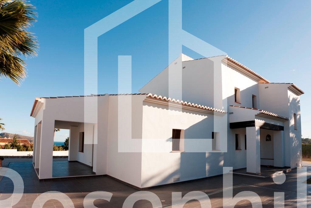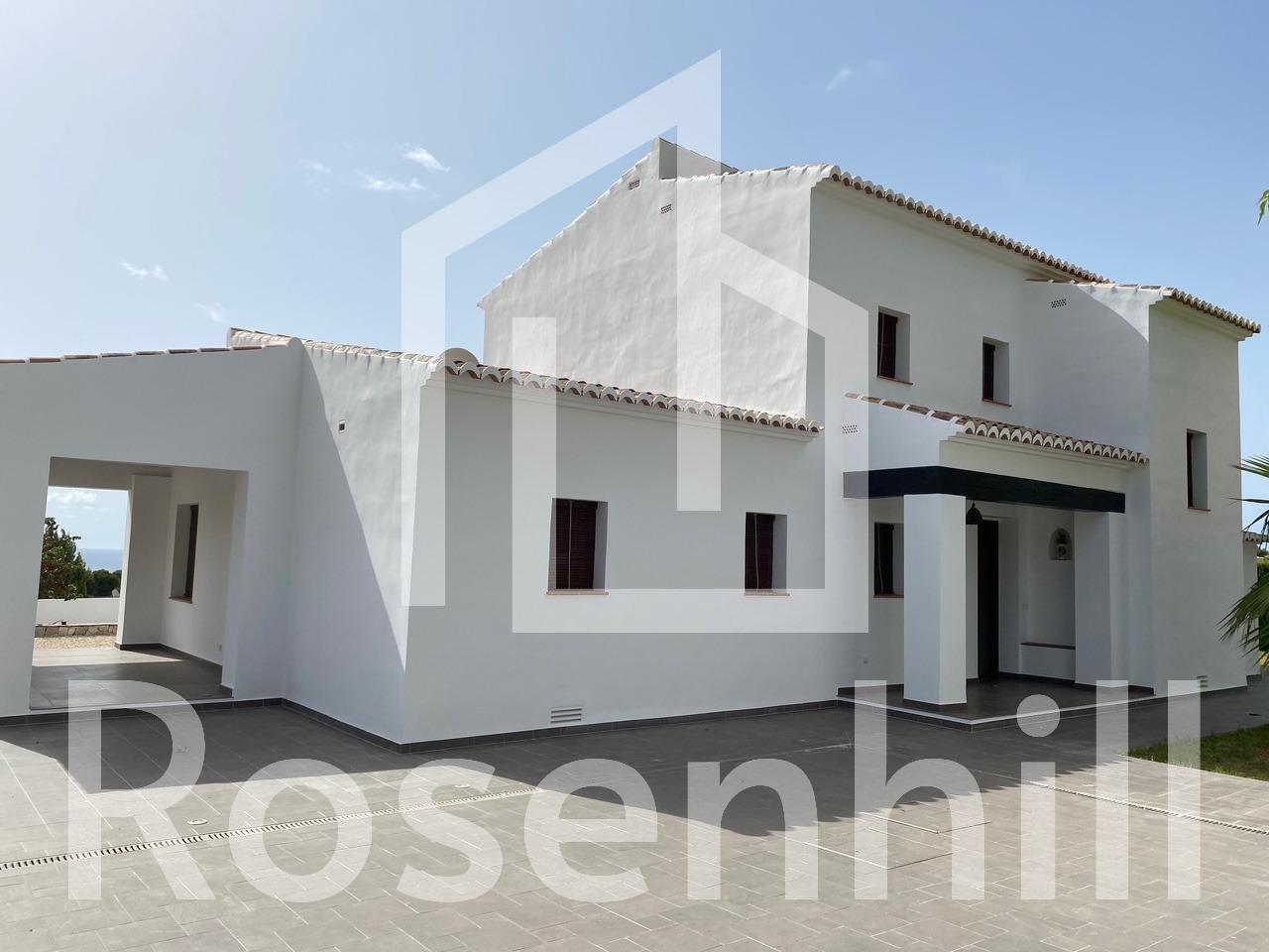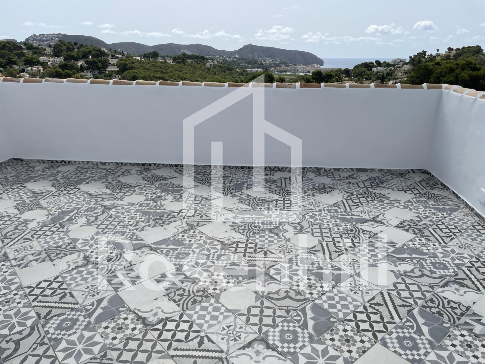 Mediterranean Style Villa with Sea Views for Sale in Moraira, Costa Blanca Elegant Villa with Panoramic Sea Views This beautiful Mediterranean-style villa for sale in Moraira (Costa Blanca, Alicante) offers breathtaking open views of Cape Moraira, the sea and the surrounding coastline. Set on a hilltop, the property enjoys total privacy and tranquility while remaining just 2 km from the vibrant center of Moraira, its golden beaches, supermarkets, restaurants and cafés. Built on a nearly flat plot of 897 m2, the villa provides exceptional comfort, beautiful outdoor spaces and stunning views from all main rooms. Spacious Layout Over Two Floors The villa is distributed over two levels designed to maximize natural light and sea views. On the ground floor, there is a bright living-dining room with a fireplace, a space ready for the installation of a modern kitchen and laundry area (pre-installed plumbing and electricity), and a complete bathroom with a shower. This floor also features a connected yet independent guest apartment with its own entrance, consisting of a living-dining area that could serve as a master suite, a bedroom, a bathroom and an additional space pre-fitted for a dressing room or en-suite bath. The apartment’s entrance showcases a beautifully restored solid wood door, adding authentic Mediterranean charm. On the upper floor, accessed by internal stairs, you will find two comfortable bedrooms, a bathroom and a large solarium terrace with spectacular sea views—perfect for relaxing or enjoying the sunset. Outdoor Living and Mediterranean Charm The villa’s exterior is designed for enjoying the Mediterranean lifestyle to the fullest, featuring spacious terraces, a uniquely shaped private pool with an outdoor shower and an easy-to-maintain garden with automatic irrigation. There is ample space for outdoor dining, sunbathing and entertaining family and friends. High Quality Features and Finishes This property offers modern comfort combined with Mediterranean character, including Aluminum carpentry with wood effect finish and double glazing Motorized blinds and mosquito nets in bedrooms Built-in wardrobes with sliding doors Central heating by radiators Adjustable interior lighting Motorized sliding vehicle gate and pedestrian access Private parking within the plot Prime Location Near Key Amenities Moraira town center and beaches: 2 km La Sella Golf Course: 15 km Port of Moraira: 2 km Shopping centers: 5 km Alicante International Airport: 90 km Experience Mediterranean Living at Its Best This exceptional villa combines privacy, elegance and stunning sea views in one of Costa Blanca’s most desirable locations. Contact us today to arrange a viewing or to request more information about this beautiful home in Moraira.