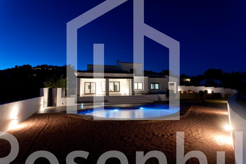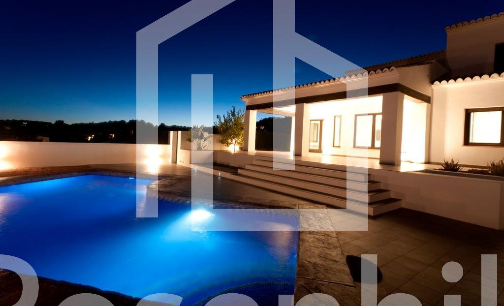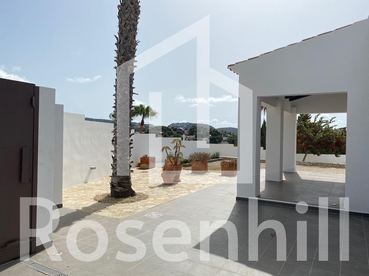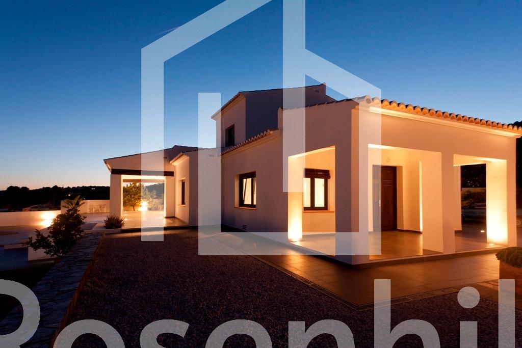 Mediterranean Style Villa with Sea Views for Sale in Moraira, Costa Blanca Elegant Villa with Panoramic Sea Views This beautiful Mediterranean-style villa for sale in Moraira (Costa Blanca, Alicante) offers breathtaking open views of Cape Moraira, the sea and the surrounding coastline. Set on a hilltop, the property enjoys total privacy and tranquility while remaining just 2 km from the vibrant center of Moraira, its golden beaches, supermarkets, restaurants and cafés. Built on a nearly flat plot of 897 m2, the villa provides exceptional comfort, beautiful outdoor spaces and stunning views from all main rooms. Spacious Layout Over Two Floors The villa is distributed over two levels designed to maximize natural light and sea views. On the ground floor, there is a bright living-dining room with a fireplace, a space ready for the installation of a modern kitchen and laundry area (pre-installed plumbing and electricity), and a complete bathroom with a shower. This floor also features a connected yet independent guest apartment with its own entrance, consisting of a living-dining area that could serve as a master suite, a bedroom, a bathroom and an additional space pre-fitted for a dressing room or en-suite bath. The apartment’s entrance showcases a beautifully restored solid wood door, adding authentic Mediterranean charm. On the upper floor, accessed by internal stairs, you will find two comfortable bedrooms, a bathroom and a large solarium terrace with spectacular sea views—perfect for relaxing or enjoying the sunset. Outdoor Living and Mediterranean Charm The villa’s exterior is designed for enjoying the Mediterranean lifestyle to the fullest, featuring spacious terraces, a uniquely shaped private pool with an outdoor shower and an easy-to-maintain garden with automatic irrigation. There is ample space for outdoor dining, sunbathing and entertaining family and friends. High Quality Features and Finishes This property offers modern comfort combined with Mediterranean character, including Aluminum carpentry with wood effect finish and double glazing Motorized blinds and mosquito nets in bedrooms Built-in wardrobes with sliding doors Central heating by radiators Adjustable interior lighting Motorized sliding vehicle gate and pedestrian access Private parking within the plot Prime Location Near Key Amenities Moraira town center and beaches: 2 km La Sella Golf Course: 15 km Port of Moraira: 2 km Shopping centers: 5 km Alicante International Airport: 90 km Experience Mediterranean Living at Its Best This exceptional villa combines privacy, elegance and stunning sea views in one of Costa Blanca’s most desirable locations. Contact us today to arrange a viewing or to request more information about this beautiful home in Moraira.