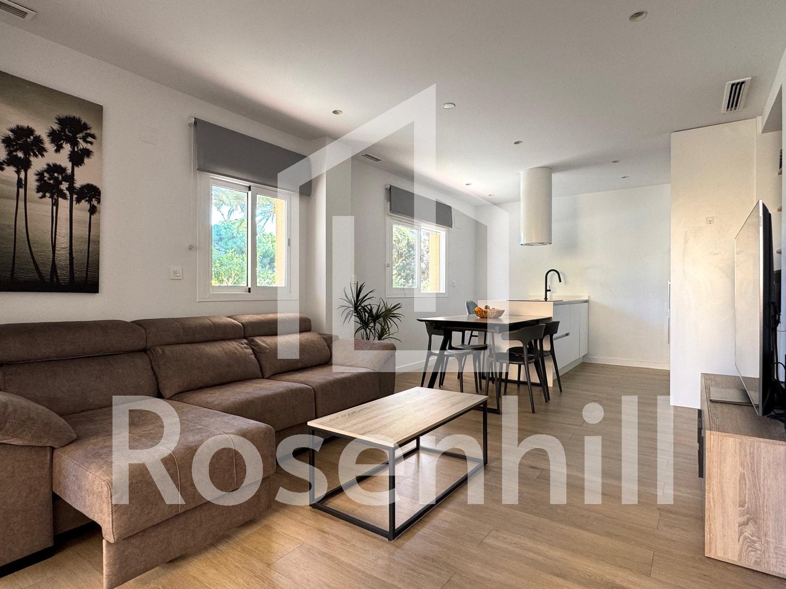 The property offers three spacious bedrooms and two modern bathrooms, making it an ideal home for families, couples, or anyone looking for a comfortable and well-located residence. The apartment has been fully renovated and is equipped with air conditioning (hot and cold), ensuring year-round comfort.