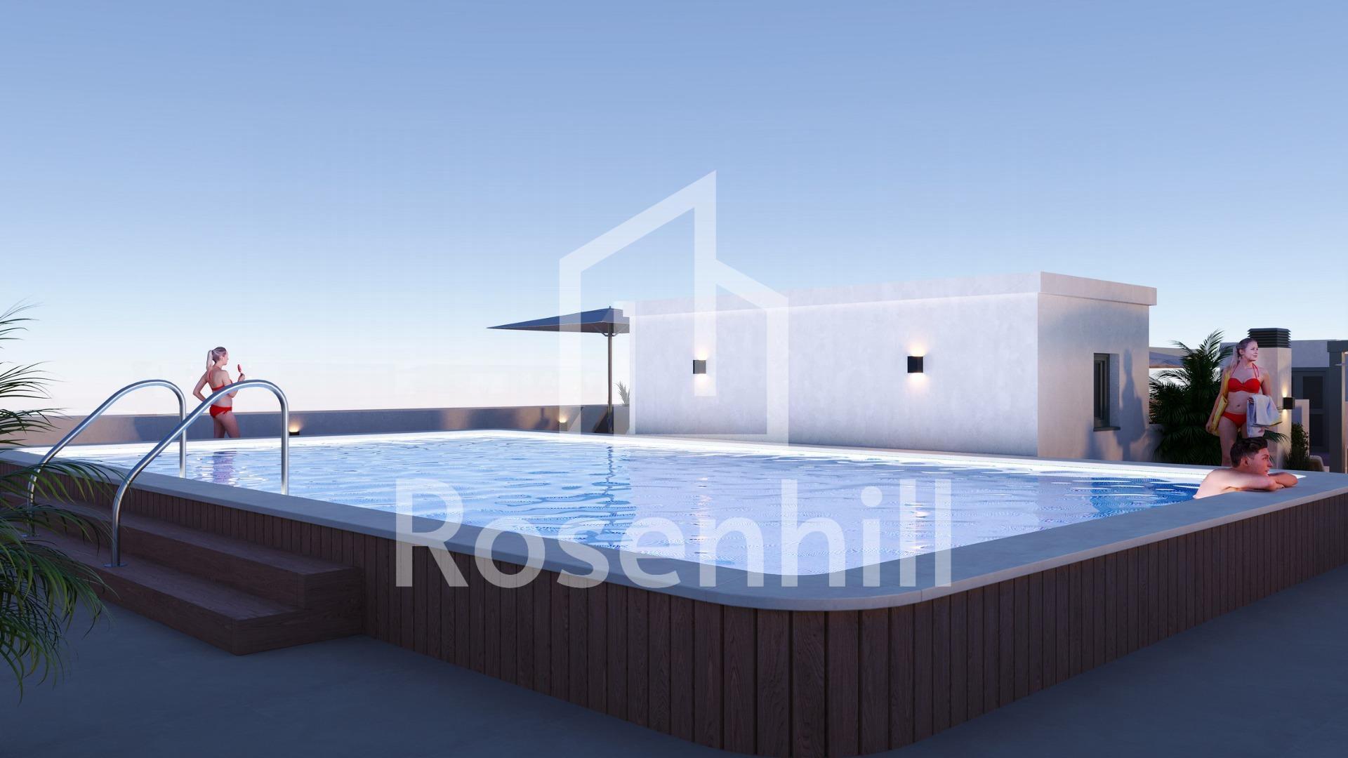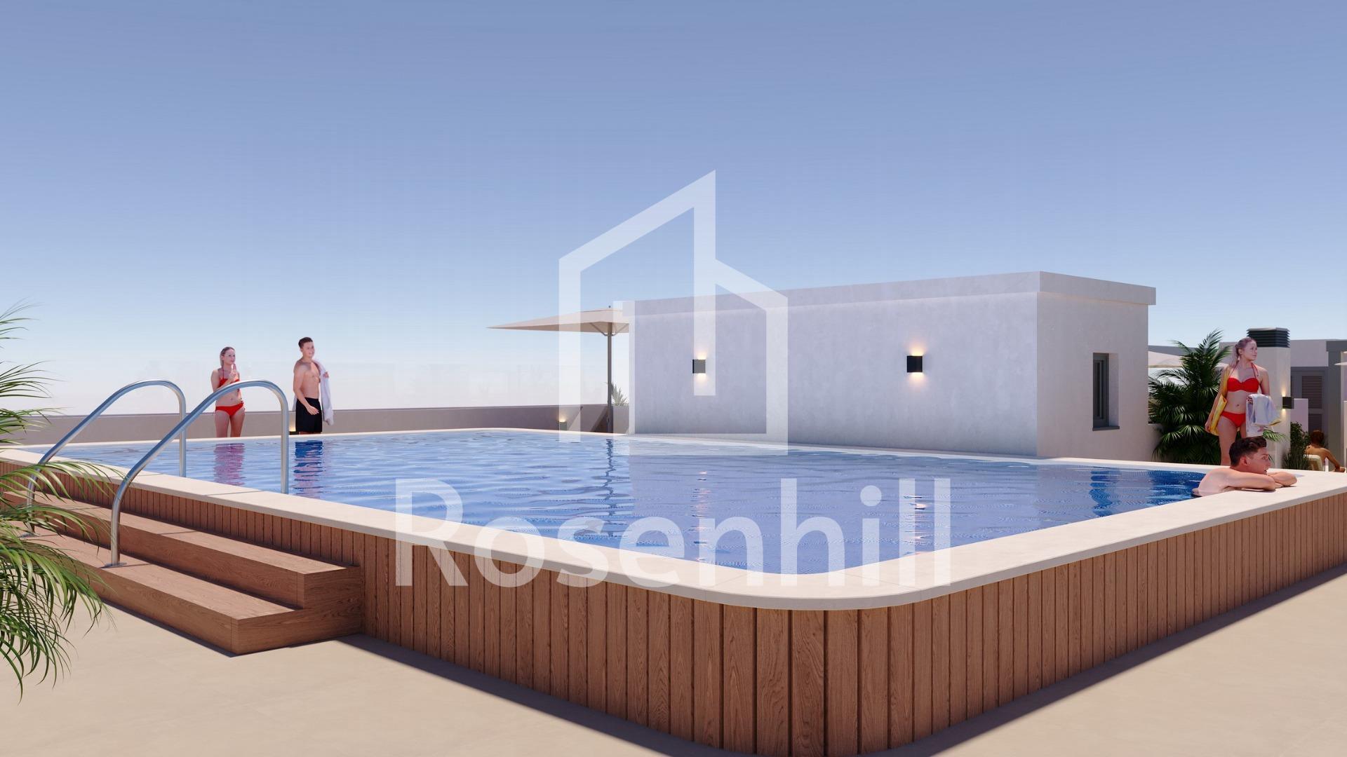 Modern New Build Apartments in the Center of San Miguel de Salinas Contemporary Living in a Healthy Mediterranean Environment Located in the charming town of San Miguel de Salinas, just 10 km from the Mediterranean Sea, this new residential development offers the perfect balance between modern comfort and natural surroundings. The area is well known for its nearby salt lakes and exceptional microclimate, considered one of the healthiest in Europe. This peaceful yet vibrant town allows residents to enjoy the authentic Mediterranean lifestyle while being within walking distance of shops, restaurants, supermarkets and all essential services. San Miguel de Salinas sits slightly inland on the Costa Blanca South, offering open views, fresh air and easy access to beaches, golf courses and shopping areas. Stylish Apartments Designed for Comfort and Efficiency The project consists of two modern buildings separated by a landscaped communal garden area. A total of 56 contemporary apartments are available with 1, 2 or 3 bedrooms, each featuring a private terrace. Every home has been designed with comfort, aesthetics and energy efficiency in mind, using high quality materials and modern insulation systems. Each apartment includes: Armored entrance door Bathrooms with vanity units Pre installation of ducted air conditioning Energy certificate rating A The layout and orientation of the homes ensure natural light throughout the day, creating bright and welcoming interiors ideal for both permanent living and holiday use. Exceptional Communal Areas for Relaxation and Social Life The ground floor communal space is designed as the social heart of the development, surrounded by landscaped gardens, seating areas, bicycle parking and a children’s playground. It is an ideal meeting point for residents of all ages. On the rooftop, an impressive 350 m2 leisure area awaits. This space includes a 70 m2 swimming pool with a separate children’s splash area, pergolas, sun loungers and shaded areas, allowing residents to relax while enjoying panoramic views. The rooftop is easily accessible by one of the three lifts and includes sanitary facilities for added comfort. Excellent Location Close to Key Points of Interest Mediterranean beaches 10 km Zenia Boulevard Shopping Center 9 km Villamartin Golf 6 km Las Colinas Golf 8 km Torrevieja Marina 12 km Alicante Airport 60 km Murcia Corvera Airport 55 km A Smart Investment in Costa Blanca South This residential complex combines modern architecture, quality finishes and a prime central location, making it an excellent choice for living, holiday enjoyment or rental investment. Contact us today for more information or to arrange a visit to these modern apartments in San Miguel de Salinas.