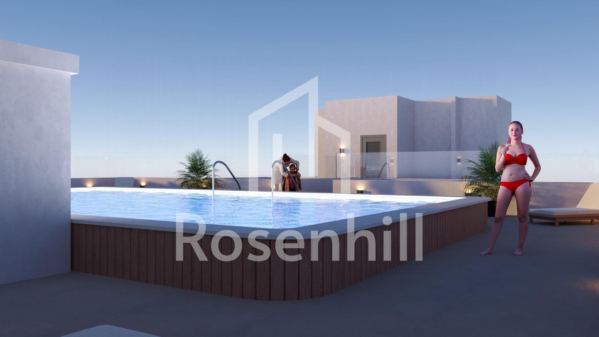 Modern New Build Apartments in the Center of San Miguel de Salinas Contemporary Living in a Healthy Mediterranean Environment Located in the charming town of San Miguel de Salinas, just 10 km from the Mediterranean Sea, this new residential development offers the perfect balance between modern comfort and natural surroundings. The area is well known for its nearby salt lakes and exceptional microclimate, considered one of the healthiest in Europe. This peaceful yet vibrant town allows residents to enjoy the authentic Mediterranean lifestyle while being within walking distance of shops, restaurants, supermarkets and all essential services. San Miguel de Salinas sits slightly inland on the Costa Blanca South, offering open views, fresh air and easy access to beaches, golf courses and shopping areas. Stylish Apartments Designed for Comfort and Efficiency The project consists of two modern buildings separated by a landscaped communal garden area. A total of 56 contemporary apartments are available with 1, 2 or 3 bedrooms, each featuring a private terrace. Every home has been designed with comfort, aesthetics and energy efficiency in mind, using high quality materials and modern insulation systems. Each apartment includes: Armored entrance door Bathrooms with vanity units Pre installation of ducted air conditioning Energy certificate rating A The layout and orientation of the homes ensure natural light throughout the day, creating bright and welcoming interiors ideal for both permanent living and holiday use. Exceptional Communal Areas for Relaxation and Social Life The ground floor communal space is designed as the social heart of the development, surrounded by landscaped gardens, seating areas, bicycle parking and a children’s playground. It is an ideal meeting point for residents of all ages. On the rooftop, an impressive 350 m2 leisure area awaits. This space includes a 70 m2 swimming pool with a separate children’s splash area, pergolas, sun loungers and shaded areas, allowing residents to relax while enjoying panoramic views. The rooftop is easily accessible by one of the three lifts and includes sanitary facilities for added comfort. Excellent Location Close to Key Points of Interest Mediterranean beaches 10 km Zenia Boulevard Shopping Center 9 km Villamartin Golf 6 km Las Colinas Golf 8 km Torrevieja Marina 12 km Alicante Airport 60 km Murcia Corvera Airport 55 km A Smart Investment in Costa Blanca South This residential complex combines modern architecture, quality finishes and a prime central location, making it an excellent choice for living, holiday enjoyment or rental investment. Contact us today for more information or to arrange a visit to these modern apartments in San Miguel de Salinas.