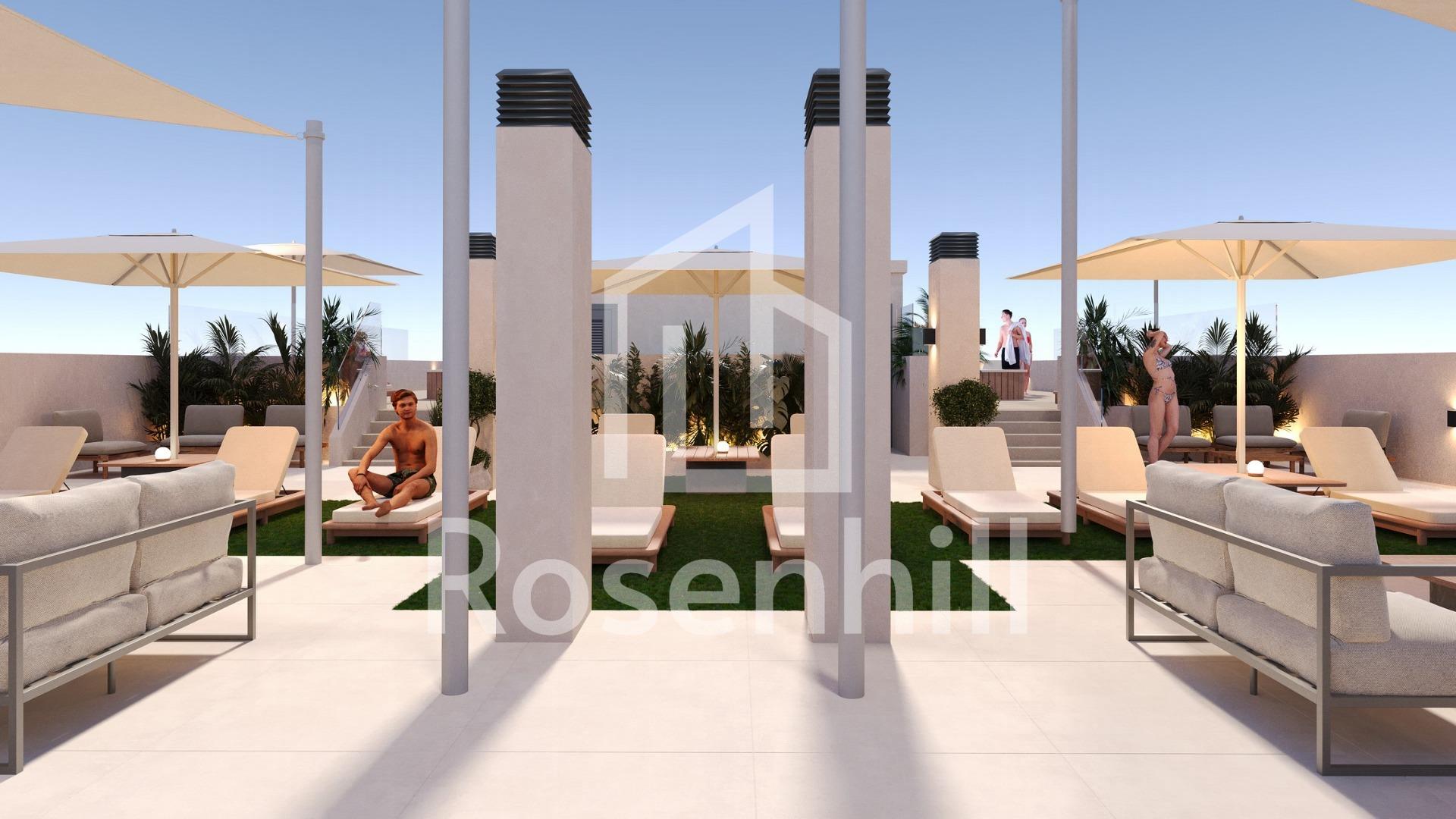 Modern New Build Apartments in the Center of San Miguel de Salinas Contemporary Living in a Healthy Mediterranean Environment Located in the charming town of San Miguel de Salinas, just 10 km from the Mediterranean Sea, this new residential development offers the perfect balance between modern comfort and natural surroundings. The area is well known for its nearby salt lakes and exceptional microclimate, considered one of the healthiest in Europe. This peaceful yet vibrant town allows residents to enjoy the authentic Mediterranean lifestyle while being within walking distance of shops, restaurants, supermarkets and all essential services. San Miguel de Salinas sits slightly inland on the Costa Blanca South, offering open views, fresh air and easy access to beaches, golf courses and shopping areas. Stylish Apartments Designed for Comfort and Efficiency The project consists of two modern buildings separated by a landscaped communal garden area. A total of 56 contemporary apartments are available with 1, 2 or 3 bedrooms, each featuring a private terrace. Every home has been designed with comfort, aesthetics and energy efficiency in mind, using high quality materials and modern insulation systems. Each apartment includes: Armored entrance door Bathrooms with vanity units Pre installation of ducted air conditioning Energy certificate rating A The layout and orientation of the homes ensure natural light throughout the day, creating bright and welcoming interiors ideal for both permanent living and holiday use. Exceptional Communal Areas for Relaxation and Social Life The ground floor communal space is designed as the social heart of the development, surrounded by landscaped gardens, seating areas, bicycle parking and a children’s playground. It is an ideal meeting point for residents of all ages. On the rooftop, an impressive 350 m2 leisure area awaits. This space includes a 70 m2 swimming pool with a separate children’s splash area, pergolas, sun loungers and shaded areas, allowing residents to relax while enjoying panoramic views. The rooftop is easily accessible by one of the three lifts and includes sanitary facilities for added comfort. Excellent Location Close to Key Points of Interest Mediterranean beaches 10 km Zenia Boulevard Shopping Center 9 km Villamartin Golf 6 km Las Colinas Golf 8 km Torrevieja Marina 12 km Alicante Airport 60 km Murcia Corvera Airport 55 km A Smart Investment in Costa Blanca South This residential complex combines modern architecture, quality finishes and a prime central location, making it an excellent choice for living, holiday enjoyment or rental investment. Contact us today for more information or to arrange a visit to these modern apartments in San Miguel de Salinas.