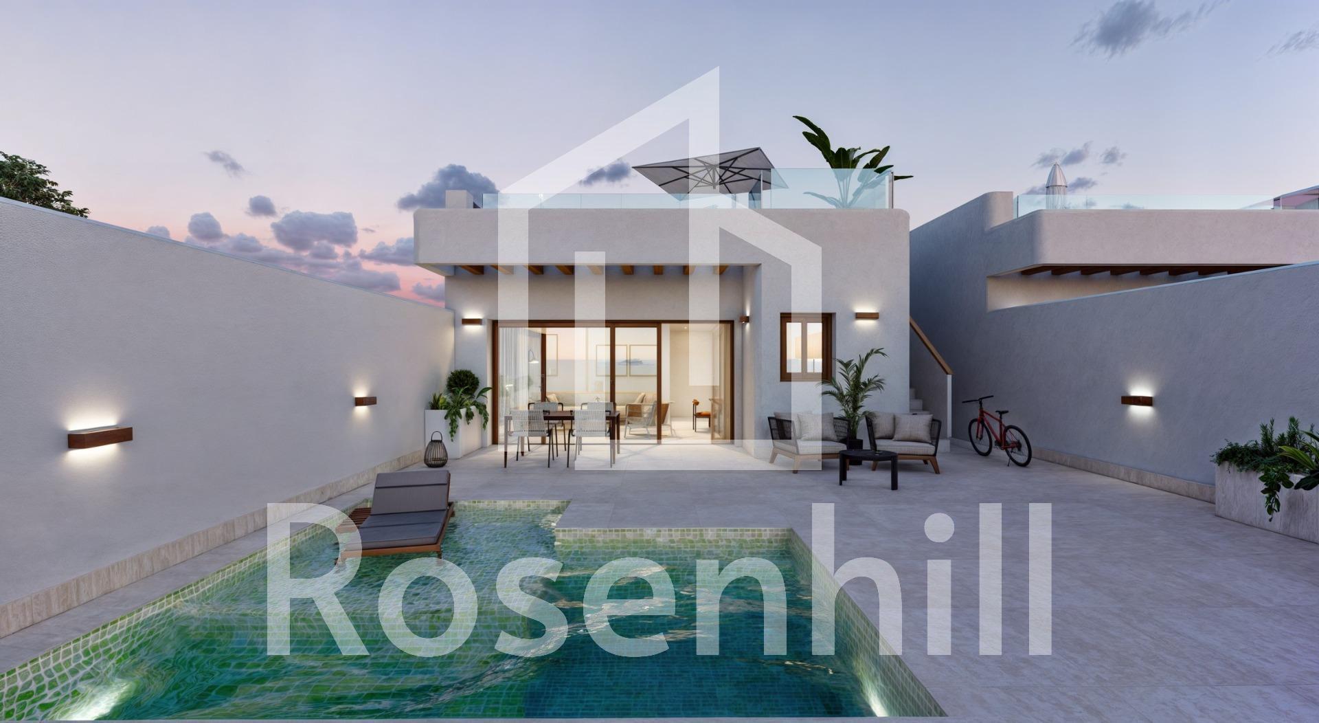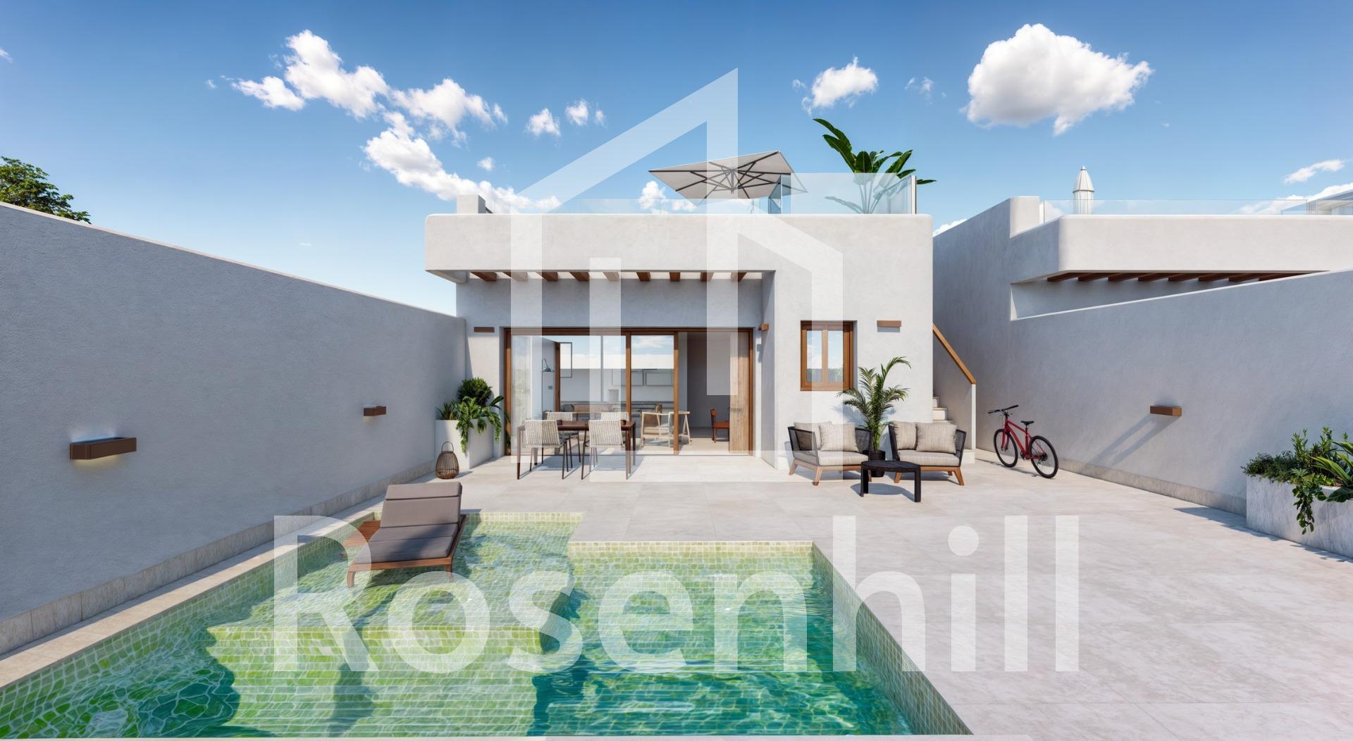 Modern New Build Villas in Torre-Pacheco, Murcia Discover the perfect blend of modern design, comfort, and location with these stunning new build villas in Torre-Pacheco, Murcia. Whether you’re seeking a permanent residence, holiday home, or investment property, these stylish detached villas offer exceptional value and convenience in one of Spain’s most sought-after regions. Stylish Villas with Premium Features These modern single-level villas feature 2 or 3 bedrooms and 2 bathrooms, designed with an open-plan kitchen and a spacious living/dining area. Each home is equipped with: Private Pool: Complete with an outdoor shower, filtration system, and LED lighting. Solarium with Summer Kitchen: Includes a sink and pre-installation for a washing machine and mini fridge, accessible via an exterior staircase. High-Quality Appliances: Balay brand ceramic hob, oven, column microwave, refrigerator, extractor hood, and integrated dishwasher. Additional highlights include premium porcelain sanitary ware in bathrooms, fully equipped wardrobes with white lacquered doors, and energy-efficient interior and exterior LED lighting. Prime Location with Excellent Connectivity Situated in the charming village of Torre-Pacheco, these villas are surrounded by essential amenities like supermarkets, banks, bars, and restaurants. The location offers an ideal balance of tranquility and accessibility: Beaches of Mar Menor: Just a 15-minute drive (approx. 12 km). Murcia International Airport: Only 20 minutes away (approx. 18 km). Golf Courses: Torre-Pacheco is renowned for its award-winning golf courses, several of which are just a short drive from the villas. Shopping & Entertainment: Cartagena Port and its vibrant shopping scene are within 30 minutes (approx. 26 km), while the city of Murcia, known for its culture and dining, is around 35 minutes away (approx. 37 km). Elegant Living in a Healthy Environment Torre-Pacheco and the surrounding Murcia region are celebrated for their exceptional quality of life, offering a healthy Mediterranean climate and abundant outdoor activities. The villas modern interiors and premium finishes make them both stylish and functional, creating a welcoming space for relaxation and entertaining. Make Your Move Today These new build villas in Torre-Pacheco combine luxury, convenience, and value in an unbeatable location. Don’t miss the opportunity to own a property in one of Spain’s healthiest and most desirable areas. Contact us now to schedule a viewing or request more information!