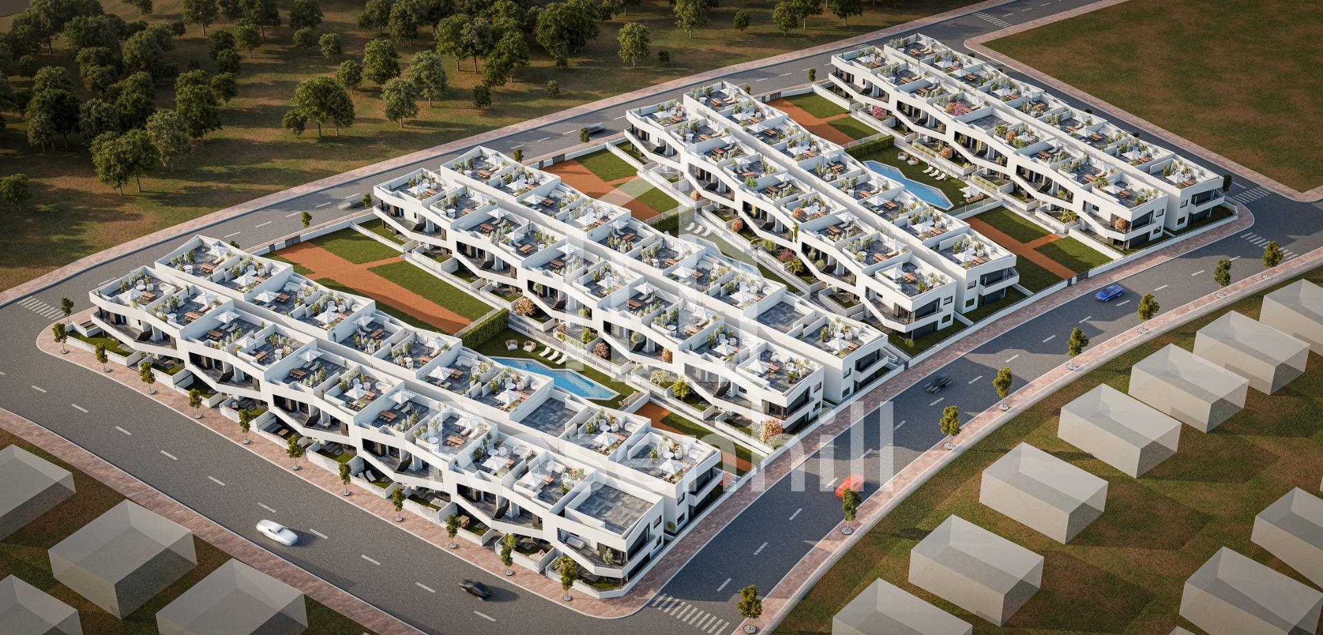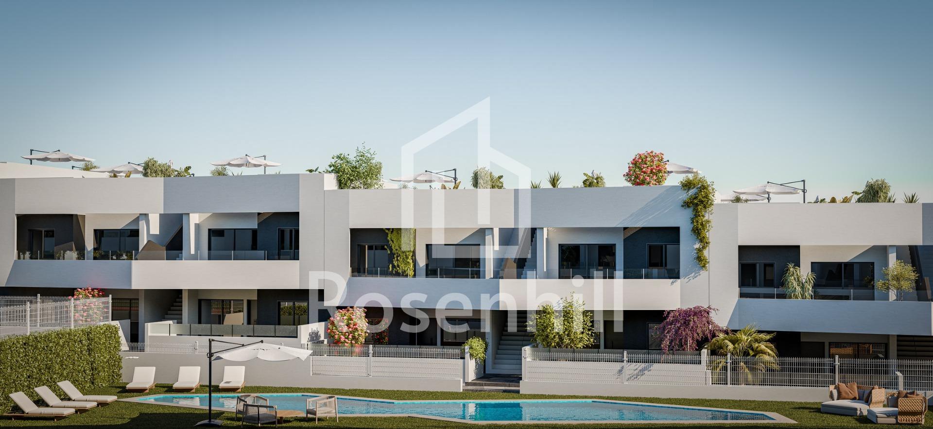 Modern, newly built bungalows in San Miguel de Salinas with 3 communal swimming pools Mediterranean lifestyle in a natural setting Discover this modern development of newly built bungalows on the outskirts of San Miguel de Salinas, a town in the south of the province of Alicante, within walking distance of all amenities. This charming town combines proximity to the sea with the tranquillity of nature, making it an ideal place for both permanent residence and holidays. Housing Options for All Lifestyles The development offers bungalow-style apartments with 2 or 3 bedrooms, available in two layouts: Ground floor with private garden and storage room Upper floor with private sun terrace Each home has been designed with a modern and functional approach, providing comfort, natural light and outdoor spaces to enjoy the Mediterranean climate all year round. Communal Areas for Family Enjoyment This residential complex is fully gated and boasts excellent communal facilities: 3 large communal swimming pools for adults and children Over 3,400 m² of landscaped green spaces These facilities make the development an ideal space for families, couples and retirees seeking a high quality of life in a safe and relaxed environment. Modern Features and Energy Efficiency The homes feature high-quality materials and meticulous finishes: Fully fitted kitchen External joinery with thermal breaks and double glazing Reinforced front door Bathroom furniture included Pre-installation for split-system air conditioning in the living room and bedrooms Excellent Location Near Golf, Beaches and Amenities San Miguel de Salinas is strategically located near tourist and natural areas: Golf courses such as Vistabella, Las Colinas and Campoamor less than 10 km away Beaches of Orihuela Costa 11 km away Lagoons of Torrevieja and La Mata just 8 km away La Zenia Boulevard shopping centre 9 km away Alicante-Elche Airport is 58 km away (35 minutes by car) Murcia International Airport is 63 km away (1 hour by car) Your New Home on the Costa Blanca These properties represent an excellent opportunity for those seeking quality, comfort and a prime location. Contact us now for more information or to book your viewing and take the first step towards your life on the Costa Blanca.