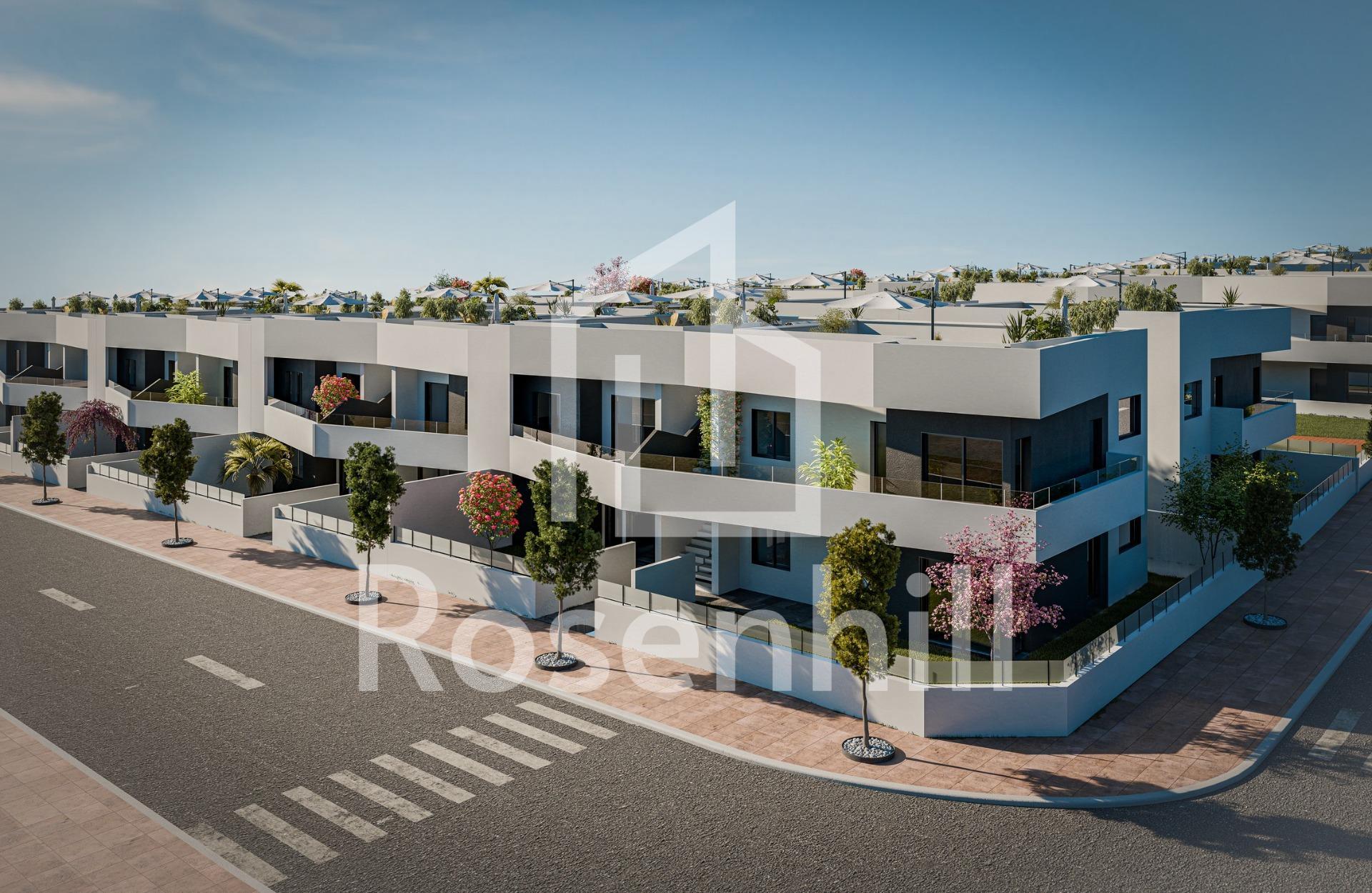 Modern, newly built bungalows in San Miguel de Salinas with 3 communal swimming pools Mediterranean lifestyle in a natural setting Discover this modern development of newly built bungalows on the outskirts of San Miguel de Salinas, a town in the south of the province of Alicante, within walking distance of all amenities. This charming town combines proximity to the sea with the tranquillity of nature, making it an ideal place for both permanent residence and holidays. Housing Options for All Lifestyles The development offers bungalow-style apartments with 2 or 3 bedrooms, available in two layouts: Ground floor with private garden and storage room Upper floor with private sun terrace Each home has been designed with a modern and functional approach, providing comfort, natural light and outdoor spaces to enjoy the Mediterranean climate all year round. Communal Areas for Family Enjoyment This residential complex is fully gated and boasts excellent communal facilities: 3 large communal swimming pools for adults and children Over 3,400 m² of landscaped green spaces These facilities make the development an ideal space for families, couples and retirees seeking a high quality of life in a safe and relaxed environment. Modern Features and Energy Efficiency The homes feature high-quality materials and meticulous finishes: Fully fitted kitchen External joinery with thermal breaks and double glazing Reinforced front door Bathroom furniture included Pre-installation for split-system air conditioning in the living room and bedrooms Excellent Location Near Golf, Beaches and Amenities San Miguel de Salinas is strategically located near tourist and natural areas: Golf courses such as Vistabella, Las Colinas and Campoamor less than 10 km away Beaches of Orihuela Costa 11 km away Lagoons of Torrevieja and La Mata just 8 km away La Zenia Boulevard shopping centre 9 km away Alicante-Elche Airport is 58 km away (35 minutes by car) Murcia International Airport is 63 km away (1 hour by car) Your New Home on the Costa Blanca These properties represent an excellent opportunity for those seeking quality, comfort and a prime location. Contact us now for more information or to book your viewing and take the first step towards your life on the Costa Blanca.
