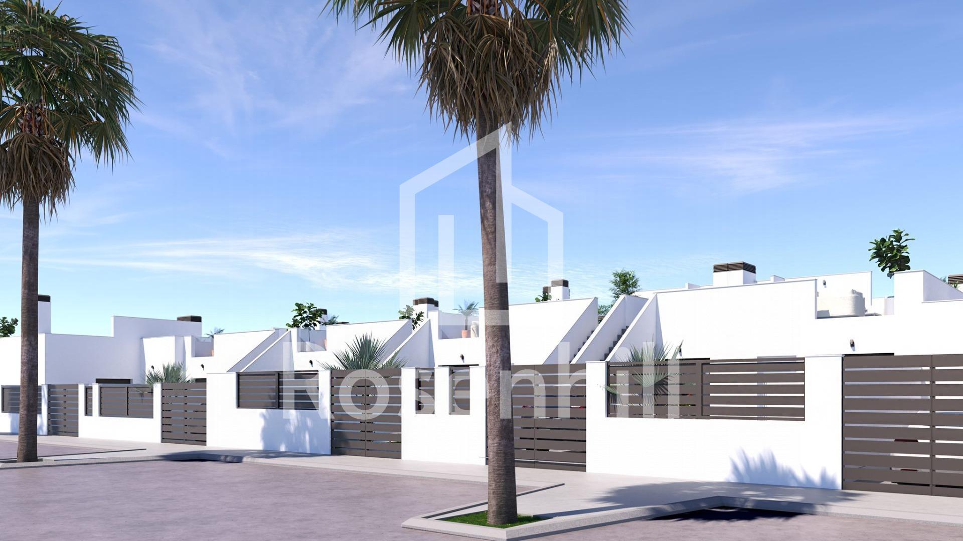 Modern, newly built semi-detached and terraced homes with private pools at El Alba Resort-Torre Pacheco Contemporary homes in a growing Mediterranean holiday community This new development comprises 16 exclusive semi-detached and terraced homes, situated at El Alba Mediterranean Resort in Torre Pacheco. Designed as single-storey homes, these modern properties offer a perfect blend of comfort, functionality and Mediterranean outdoor living. El Alba Resort is an up-and-coming residential area surrounded by open countryside and golf courses, within easy reach of the town of Roldán, where you will find supermarkets, restaurants, banks and everyday amenities. The complex already features a social club with a swimming pool and restaurant, and a retail area is currently under development, adding further convenience and value to the location. Single-storey home with private garden and sun terrace Each property features 2 bedrooms and 2 bathrooms, one of which is en-suite, with an open-plan kitchen connected to a bright living room. The layout is carefully designed to maximise natural light and create a seamless connection between indoor and outdoor spaces. All homes include: Fitted kitchen with appliances Bathrooms with vanity units, mirrors, lighting and shower screens Fitted wardrobes with drawers in the bedrooms Pre-installation for ducted air conditioning Indoor and outdoor LED lighting Three photovoltaic solar panels with a capacity of 1.5 kW per property The outdoor areas are designed to be enjoyed all year round, featuring a private garden with a swimming pool, a terrace and a large private sun deck with a summer kitchen, ideal for al fresco dining and relaxing in the sun. Quality features designed for comfort and efficiency These homes are built with stylish and functional interiors, focused on energy efficiency and modern living. The plot features a private parking space, ensuring convenience and security. The combination of solar panels, high-quality insulation and smart design provides an energy-efficient home, ideal for permanent living, holiday use or as a rental investment. Excellent location near golf courses, beaches and airports Roldán town centre 2 km away Mar Menor beaches 15 km away Mediterranean beaches 20 km away La Torre Golf Resort 5 km away Terrazas de la Torre Golf 6 km away Murcia Corvera Airport 18 km away Cartagena 30 km away This strategic location offers easy access to golf courses, beaches, amenities and transport links, whilst enjoying a peaceful residential setting. A smart investment on the Costa Cálida These townhouses and semi-detached homes at El Alba Mediterranean Resort offer an excellent opportunity to purchase a modern property with a private pool in the rapidly growing area of Torre Pacheco. Contact us today for further information or to arrange a viewing of these exclusive new-build homes.