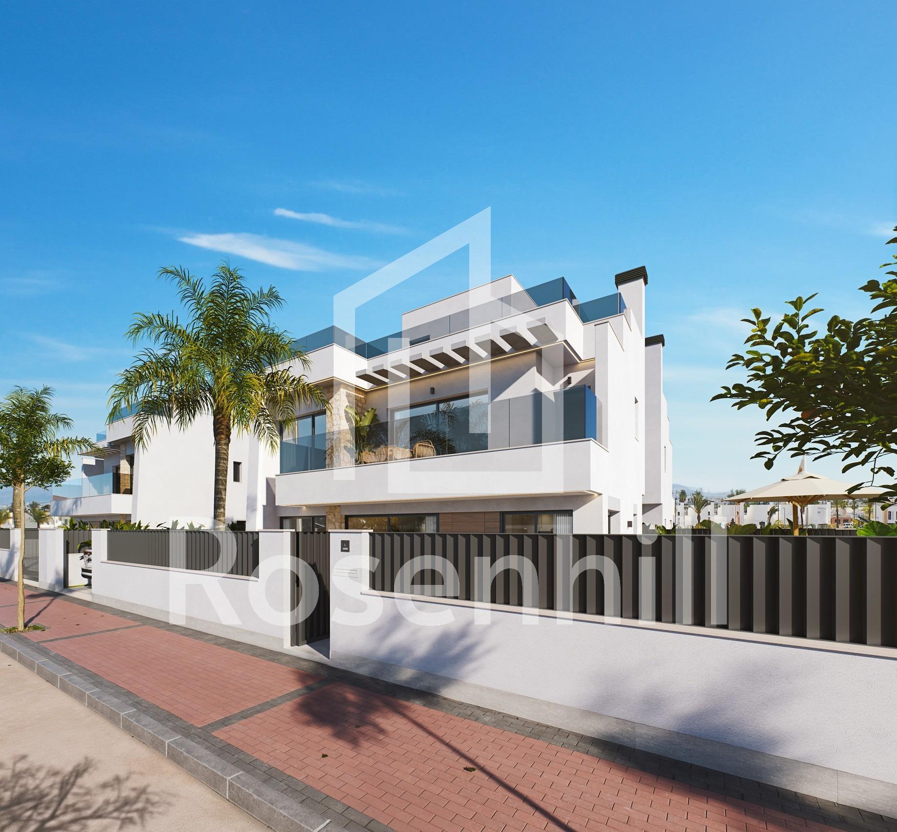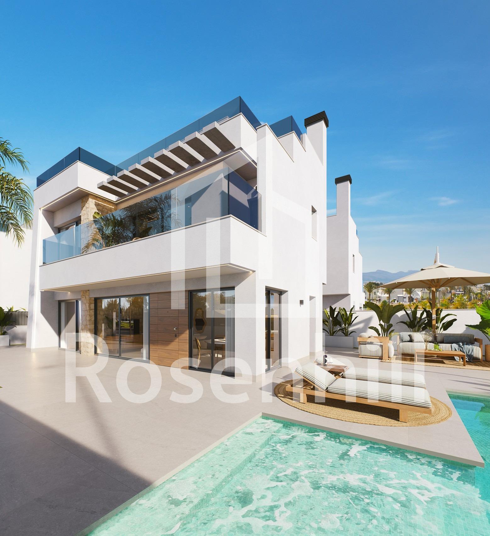 Modern Semi-Detached Villas at Santa Rosalía Lake and Life Resort – A New Standard of Mediterranean Luxury Contemporary Design Inspired by the Mediterranean Discover these exclusive new semi-detached villas located in the prestigious Santa Rosalía Lake and Life Resort, a unique residential destination on the Costa Cálida. Inspired by Mediterranean architecture, these villas combine clean lines, natural light, and modern comfort to create a harmonious and elegant living environment. Each villa is designed to provide a perfect balance between luxury and relaxation, making it ideal as a permanent residence, holiday home, or investment opportunity. Spacious Layout and High-End Finishes Each villa offers 220 m² of living space distributed across a basement, two main floors, and a rooftop solarium, set on generous 295 m² plots. The homes feature 4 bedrooms and 4 bathrooms (3 en suite), providing ample space for family and guests. The private pool with jacuzzi area, large terraces, and rooftop solarium with summer kitchen and toilet invite you to enjoy the region’s exceptional climate all year round. Premium specifications include: Fully furnished kitchen with Bosch appliances Bathrooms with furniture, mirrors, shower screens, and towel heaters Armoured entrance door and motorized access gate for vehicles LED spotlights throughout the interior and exterior Ducted air conditioning (installed on both floors) Private pool with jacuzzi area 2 photovoltaic solar panels for energy efficiency Summer kitchen in the garden Underground level with English patio for natural light and ventilation Resort-Style Living at Santa Rosalía Santa Rosalía Lake and Life Resort is a private, gated community with 24-hour security, designed around an impressive 126,000 m² of green areas. Residents enjoy walking and cycling paths, sports facilities, paddle and tennis courts, mini-golf, gardens, dog parks, and leisure zones. The clubhouse and the resort’s centerpiece-a stunning 17,000 m² crystal-clear lagoon surrounded by white sandy beaches and palm trees-offer a true Caribbean-inspired lifestyle. The lagoon even features two islands, one with its own bar, and several beach chiringuitos for relaxed dining. Prime Location on the Costa Cálida The development enjoys a central location within the resort, close to the lagoon and beach club. It’s less than 4 km from Los Alcázares Beach, 15 minutes from Cartagena, and only 22 km from Murcia International Airport. Golf enthusiasts will find several top-rated courses within a short drive, while local marinas, restaurants, and shopping areas complete the vibrant lifestyle offering. Your Exclusive Mediterranean Retreat Awaits Experience the perfect combination of luxury, comfort, and wellbeing in the heart of the Costa Cálida. Contact us today to schedule a visit and discover your dream villa at Santa Rosalía Lake and Life Resort.