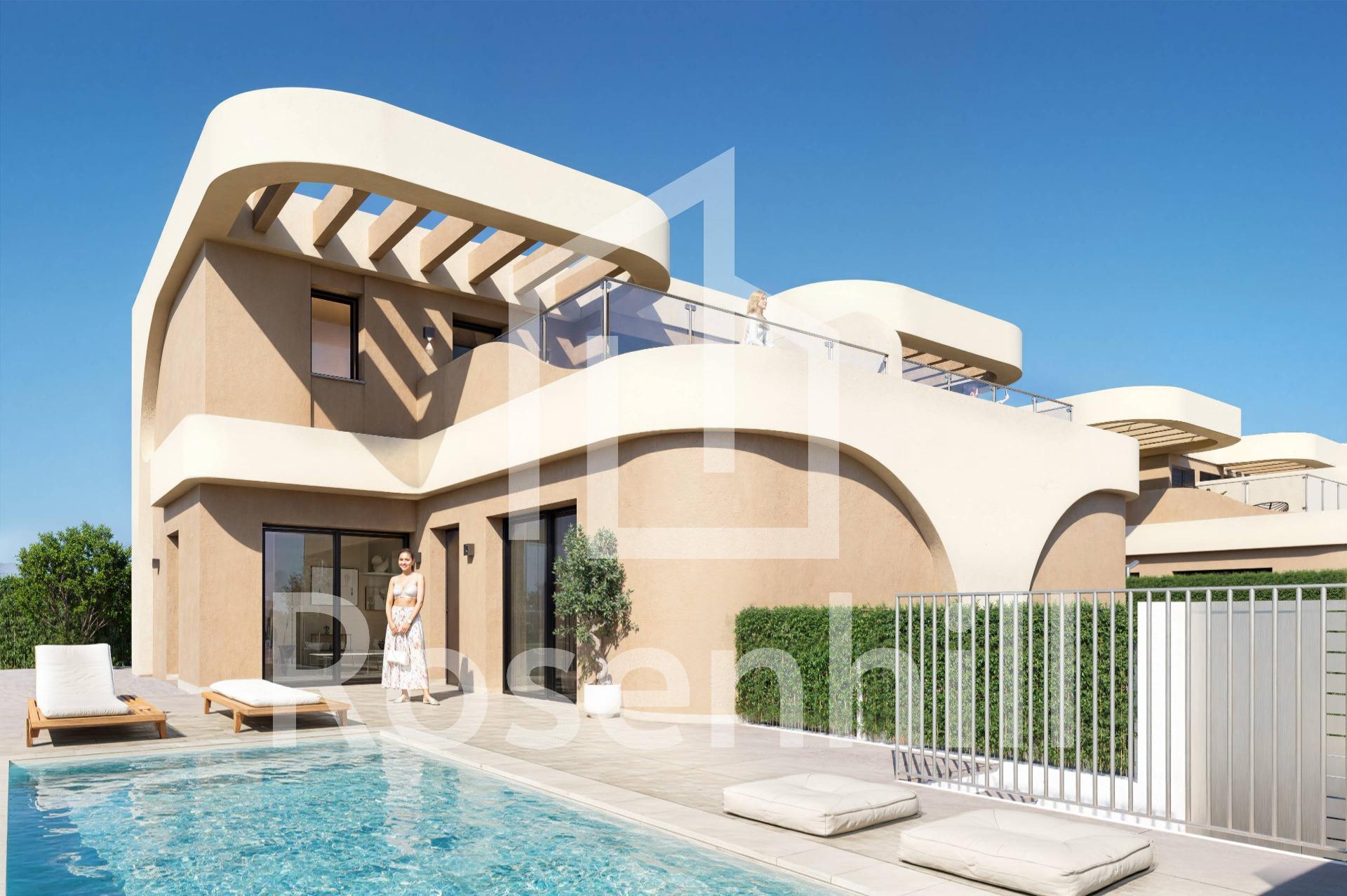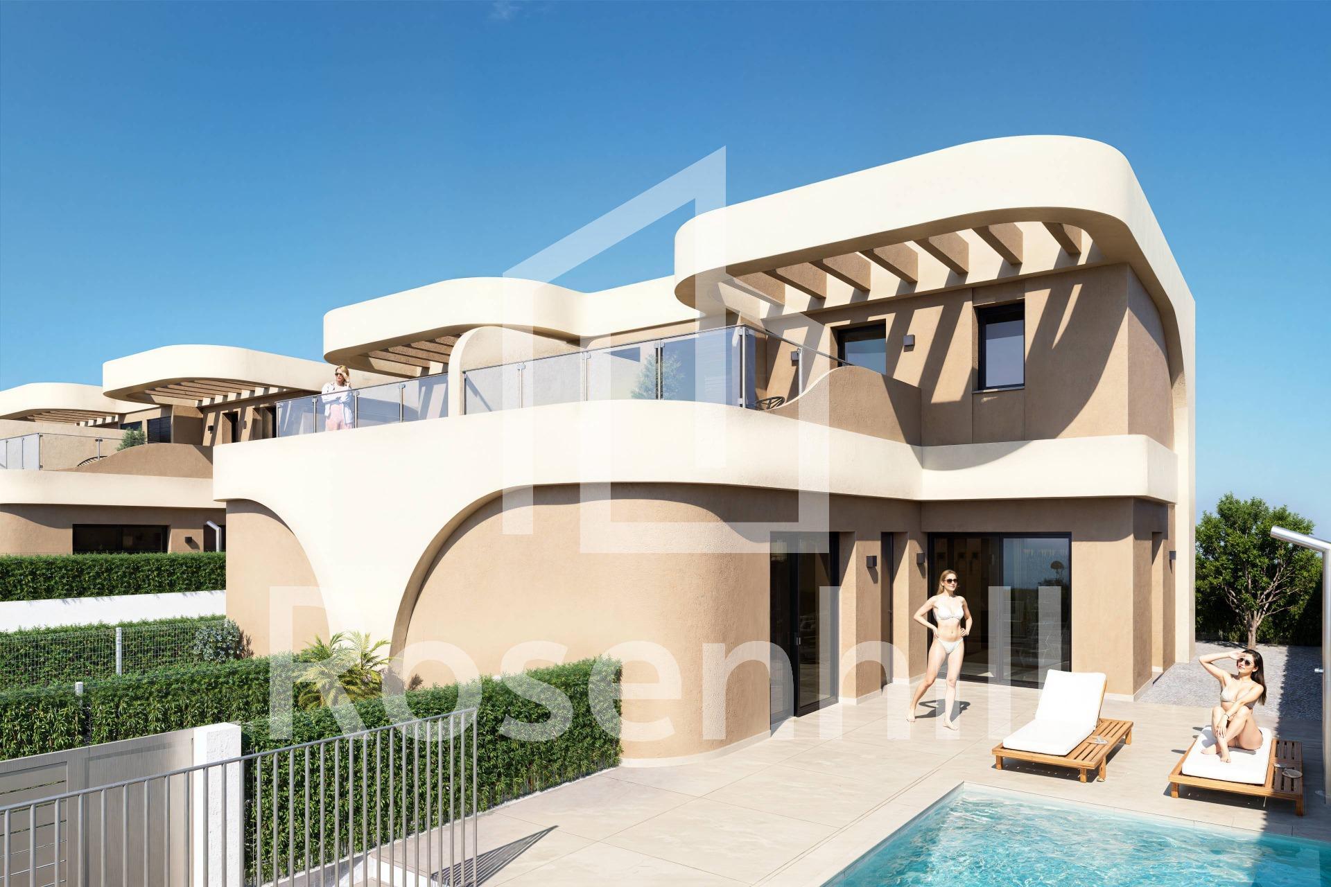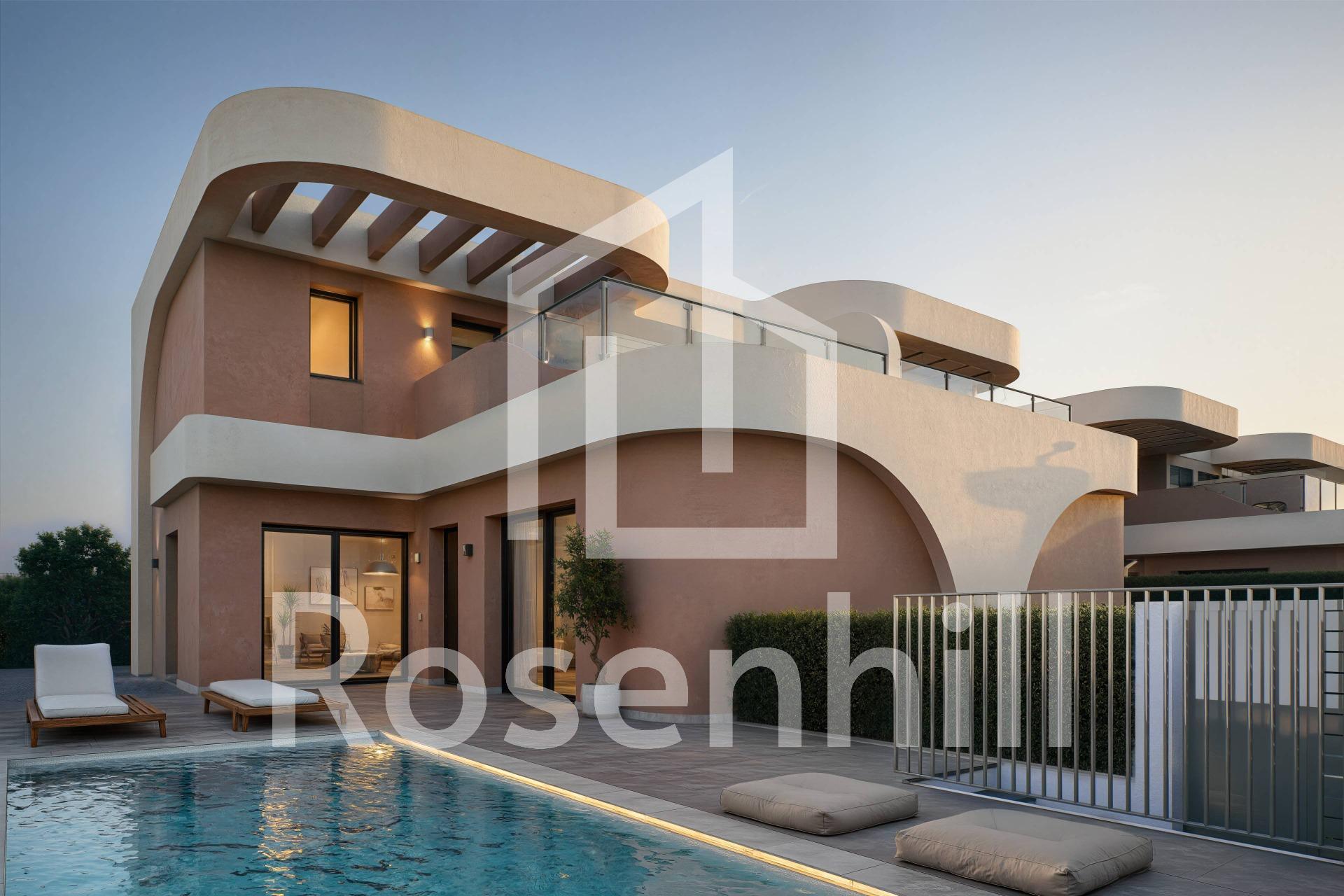 Modern Semi Detached Villas in Daya Nueva with Contemporary Design and Excellent Connectivity Peaceful Living in Daya Nueva These new semi detached villas are located in the charming town of Daya Nueva in the south of Alicante. Known for its peaceful rural atmosphere, Daya Nueva offers a comfortable lifestyle surrounded by orchards and open landscapes, while being just a short drive from the vibrant coastal areas of the Costa Blanca. The town provides essential services, restaurants and local shops, and sits only 10 km from the beaches of La Marina del Pinet and Guardamar del Segura. The Alicante International Airport is approximately 25 km away, making it highly accessible for international homeowners. Golf lovers will appreciate being within 12 km of La Marquesa Golf and 15 km from Vistabella Golf. Elegant Architecture and Quality Construction This exclusive development has been designed with great attention to detail, incorporating a bright, fresh and modern architectural style. The curved lines of the facade create a unique contemporary look, while high quality finishes ensure lasting comfort. Functional Layout Across Two Floors Each villa is distributed over two levels in the new residential area of Daya Nueva, within walking distance to the town center. The ground floor includes a living and dining area with an open plan kitchen, direct access to the garden, a bedroom with ensuite bathroom and walk in wardrobe, a guest toilet and a private parking space on the plot. A private pool can be added at an additional cost. The upper floor features two more bedrooms, a full bathroom and a 19 m2 open terrace with pleasant open views. Comfort and Modern Features Homes come equipped with fitted bathrooms including furniture, mirror and shower screens. Additional features include ducted air conditioning pre installation, furnished kitchens, electric shutters in bedrooms, indoor and outdoor LED lighting and three photovoltaic solar panels. Ideal Location for Coastal and Rural Living The villas are set in a quiet new residential area with easy access to the A 70 motorway. The beaches, golf courses, marinas and nearby towns are all within a short distance, making this an ideal location for both holidays and year round living. Contact us today to schedule a visit and secure your new home in Daya Nueva.