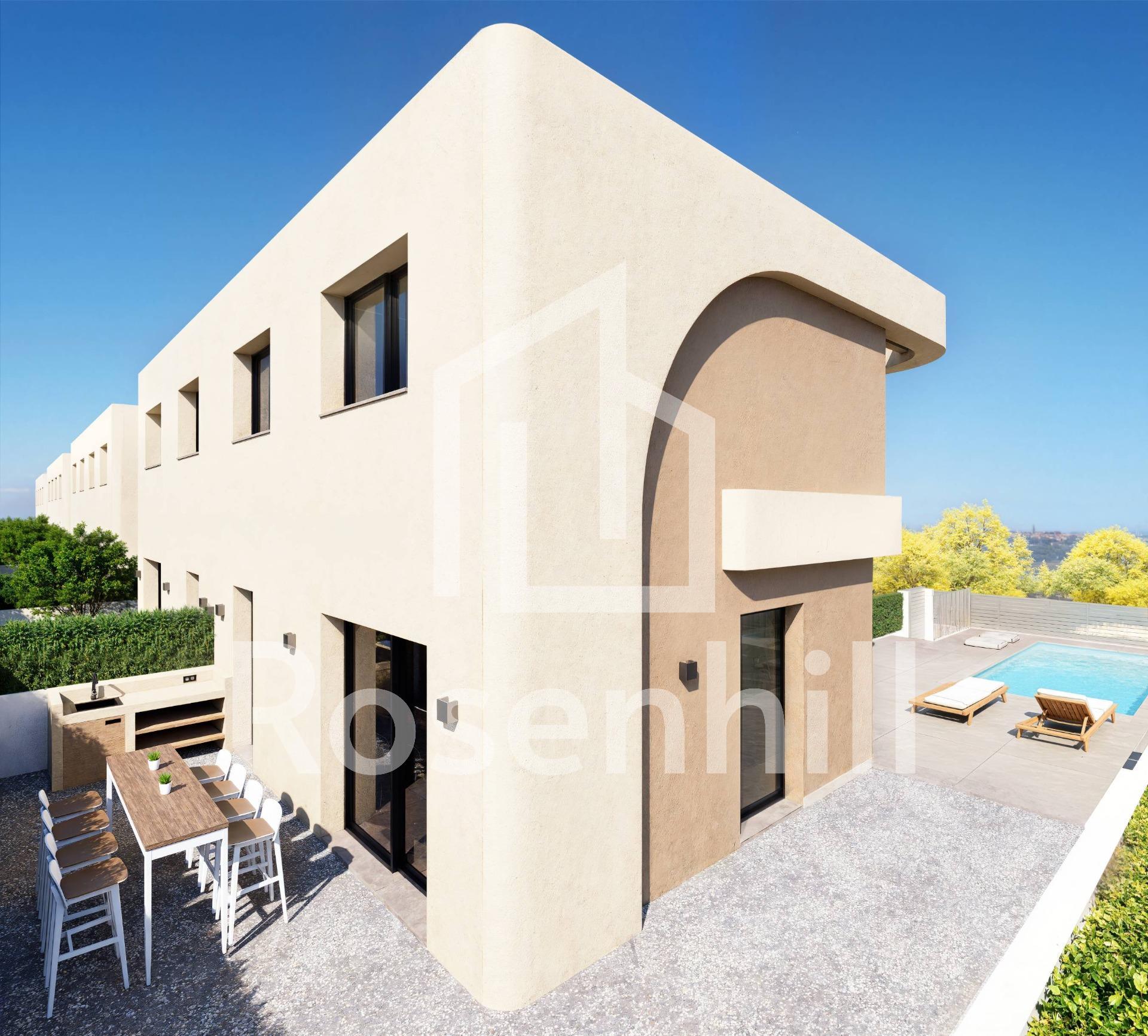 Modern Semi Detached Villas in Daya Nueva with Contemporary Design and Excellent Connectivity Peaceful Living in Daya Nueva These new semi detached villas are located in the charming town of Daya Nueva in the south of Alicante. Known for its peaceful rural atmosphere, Daya Nueva offers a comfortable lifestyle surrounded by orchards and open landscapes, while being just a short drive from the vibrant coastal areas of the Costa Blanca. The town provides essential services, restaurants and local shops, and sits only 10 km from the beaches of La Marina del Pinet and Guardamar del Segura. The Alicante International Airport is approximately 25 km away, making it highly accessible for international homeowners. Golf lovers will appreciate being within 12 km of La Marquesa Golf and 15 km from Vistabella Golf. Elegant Architecture and Quality Construction This exclusive development has been designed with great attention to detail, incorporating a bright, fresh and modern architectural style. The curved lines of the facade create a unique contemporary look, while high quality finishes ensure lasting comfort. Functional Layout Across Two Floors Each villa is distributed over two levels in the new residential area of Daya Nueva, within walking distance to the town center. The ground floor includes a living and dining area with an open plan kitchen, direct access to the garden, a bedroom with ensuite bathroom and walk in wardrobe, a guest toilet and a private parking space on the plot. A private pool can be added at an additional cost. The upper floor features two more bedrooms, a full bathroom and a 19 m2 open terrace with pleasant open views. Comfort and Modern Features Homes come equipped with fitted bathrooms including furniture, mirror and shower screens. Additional features include ducted air conditioning pre installation, furnished kitchens, electric shutters in bedrooms, indoor and outdoor LED lighting and three photovoltaic solar panels. Ideal Location for Coastal and Rural Living The villas are set in a quiet new residential area with easy access to the A 70 motorway. The beaches, golf courses, marinas and nearby towns are all within a short distance, making this an ideal location for both holidays and year round living. Contact us today to schedule a visit and secure your new home in Daya Nueva.