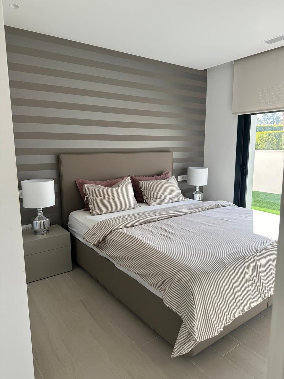 The property features three stylish bedrooms and two elegant bathrooms, offering a perfect blend of luxury and comfort.