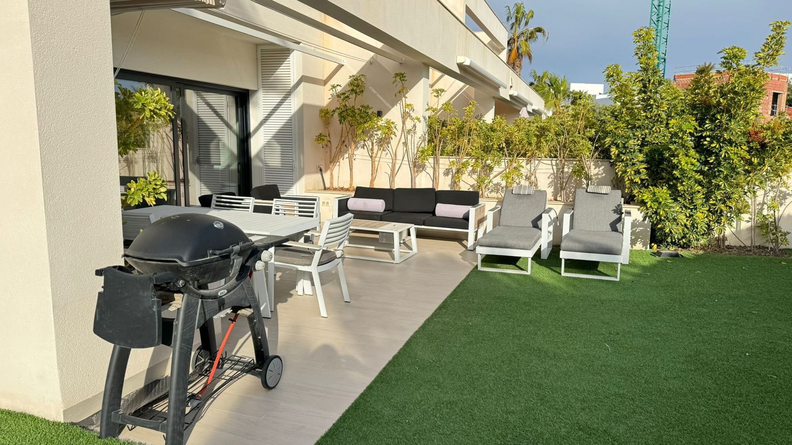 A private terrace with an outdoor dining area provides the ideal setting for relaxing or entertaining, while the villa also includes a garage and a convenient storage room.